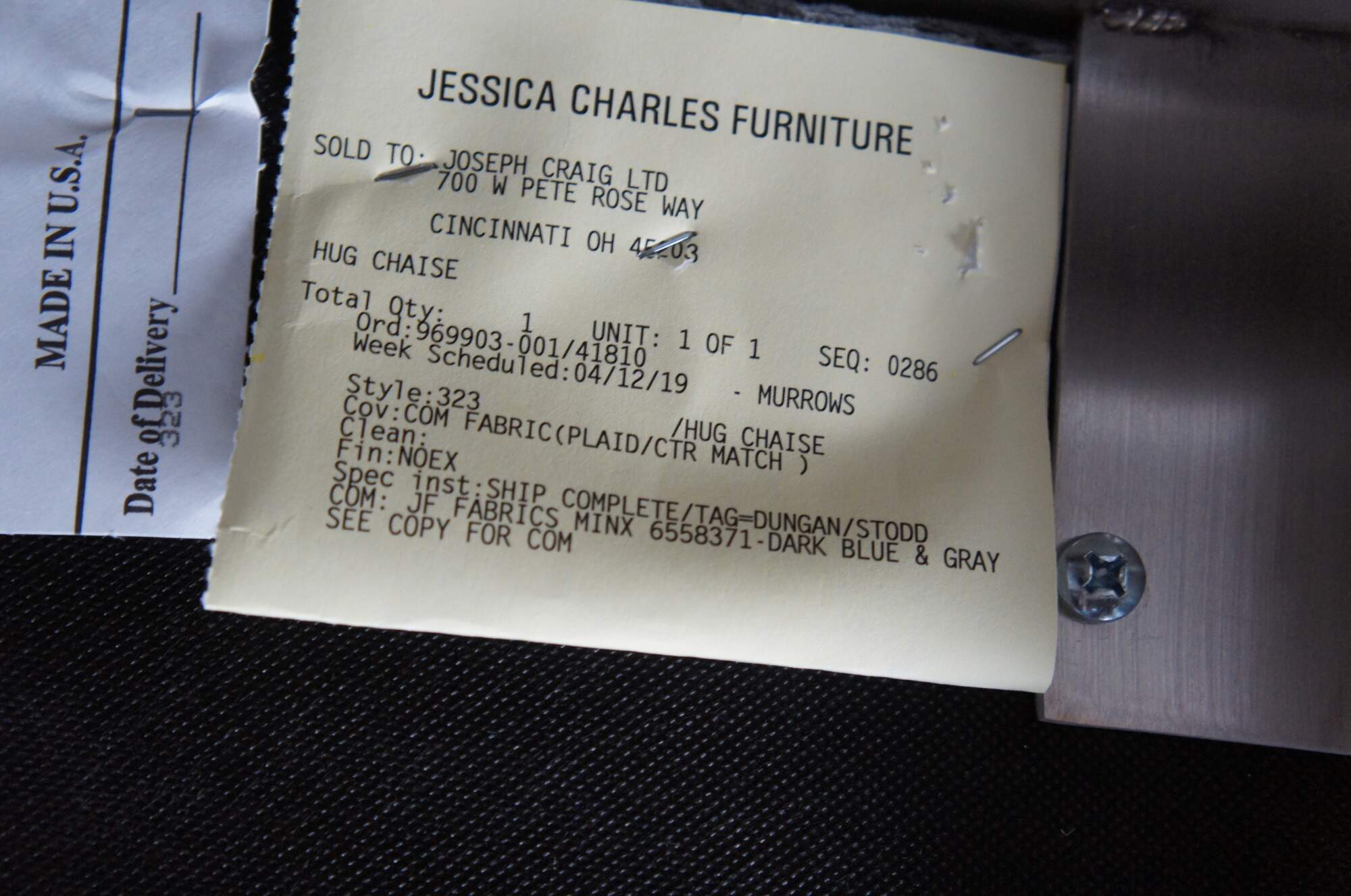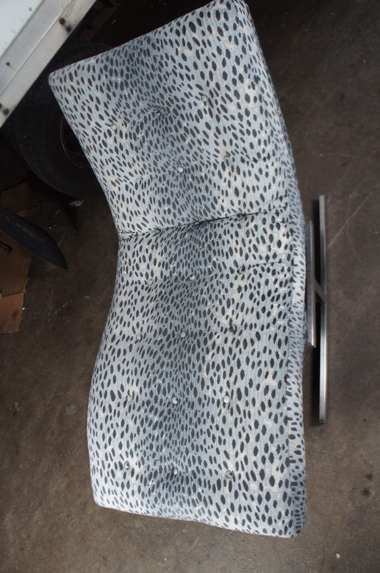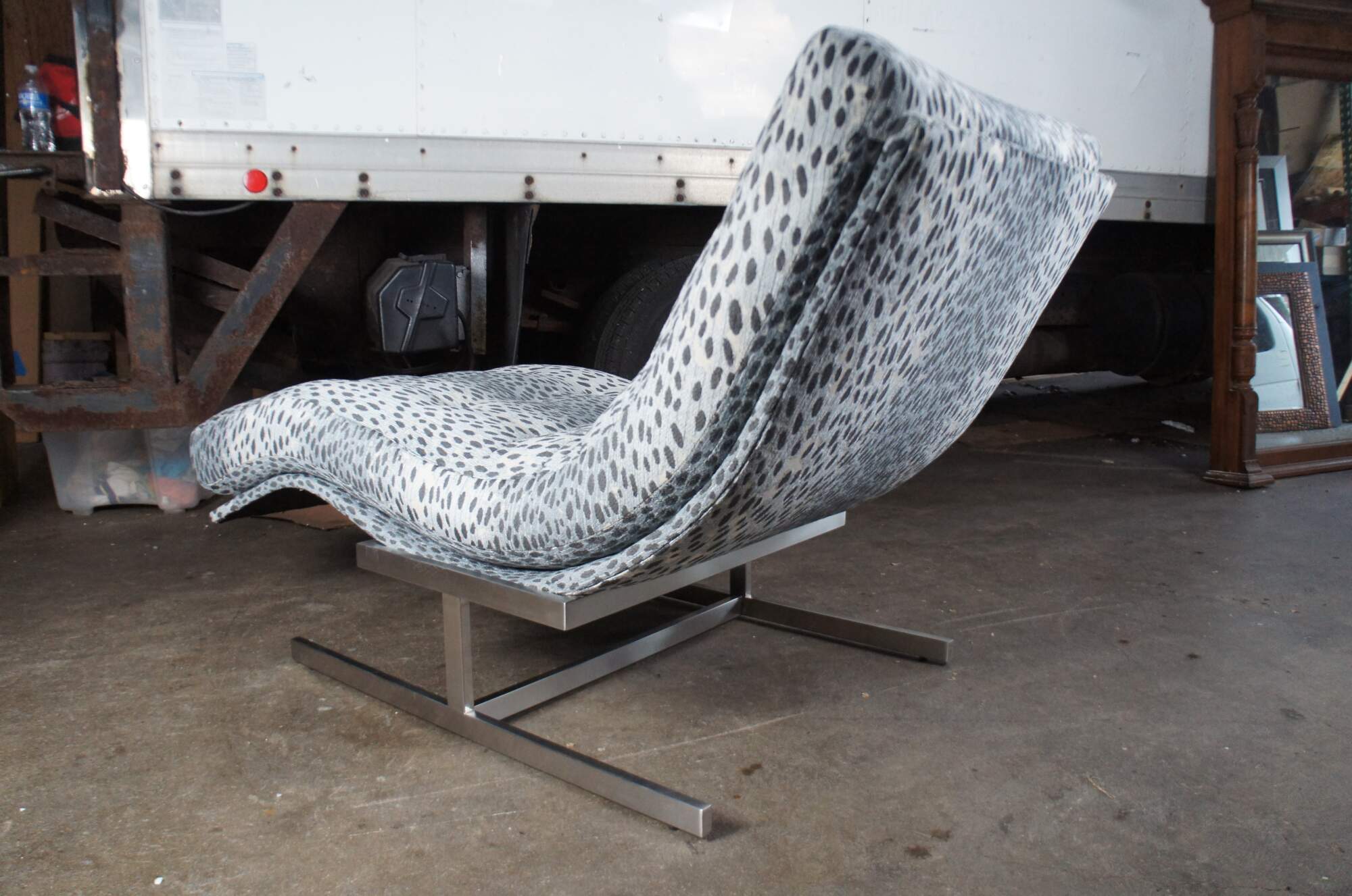 Jessica Charles 323 Hug Chaise, circa 2019. Features a sculptural modernist body with leopard sprint upholstery over a stainless steel base.