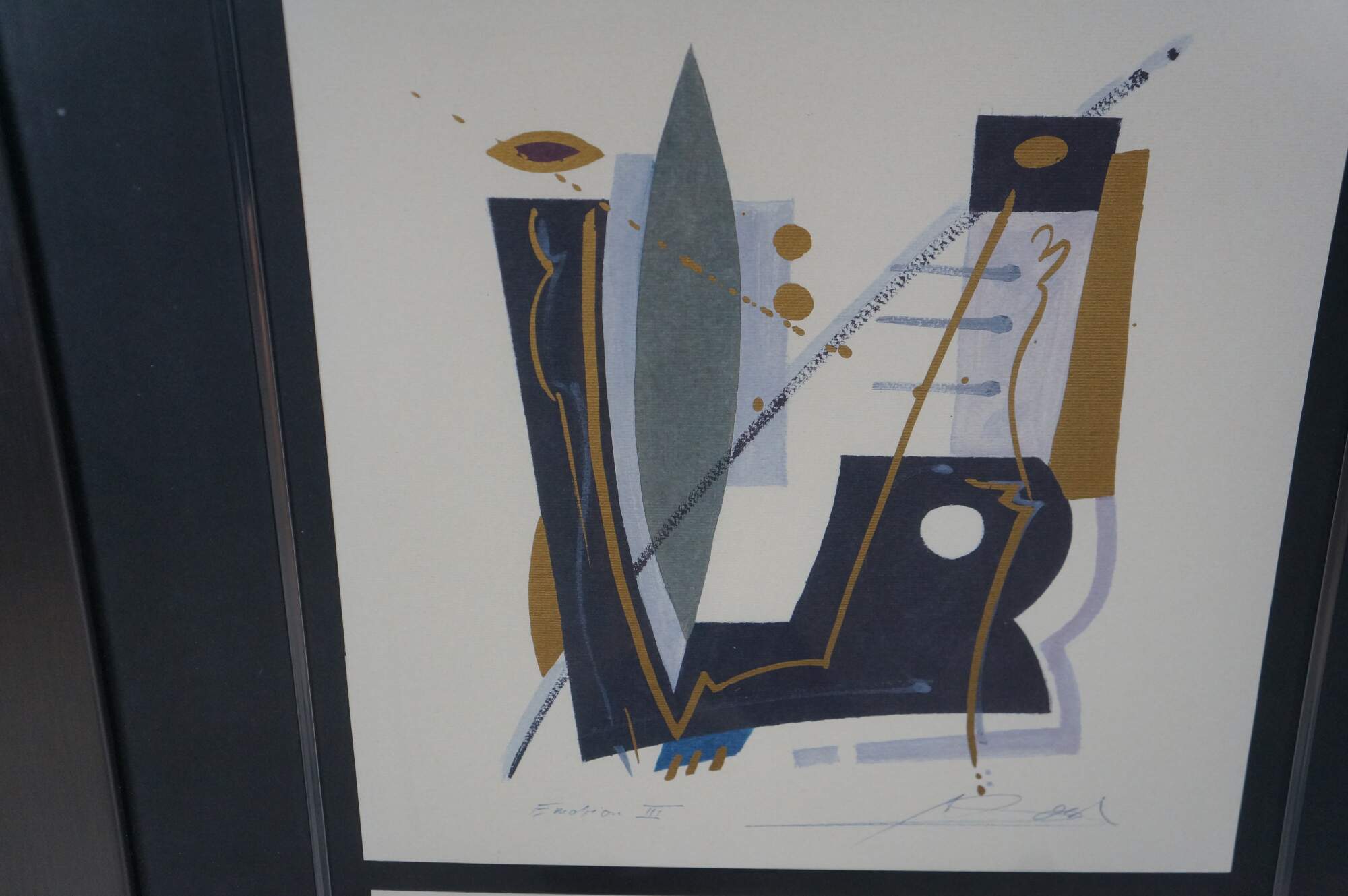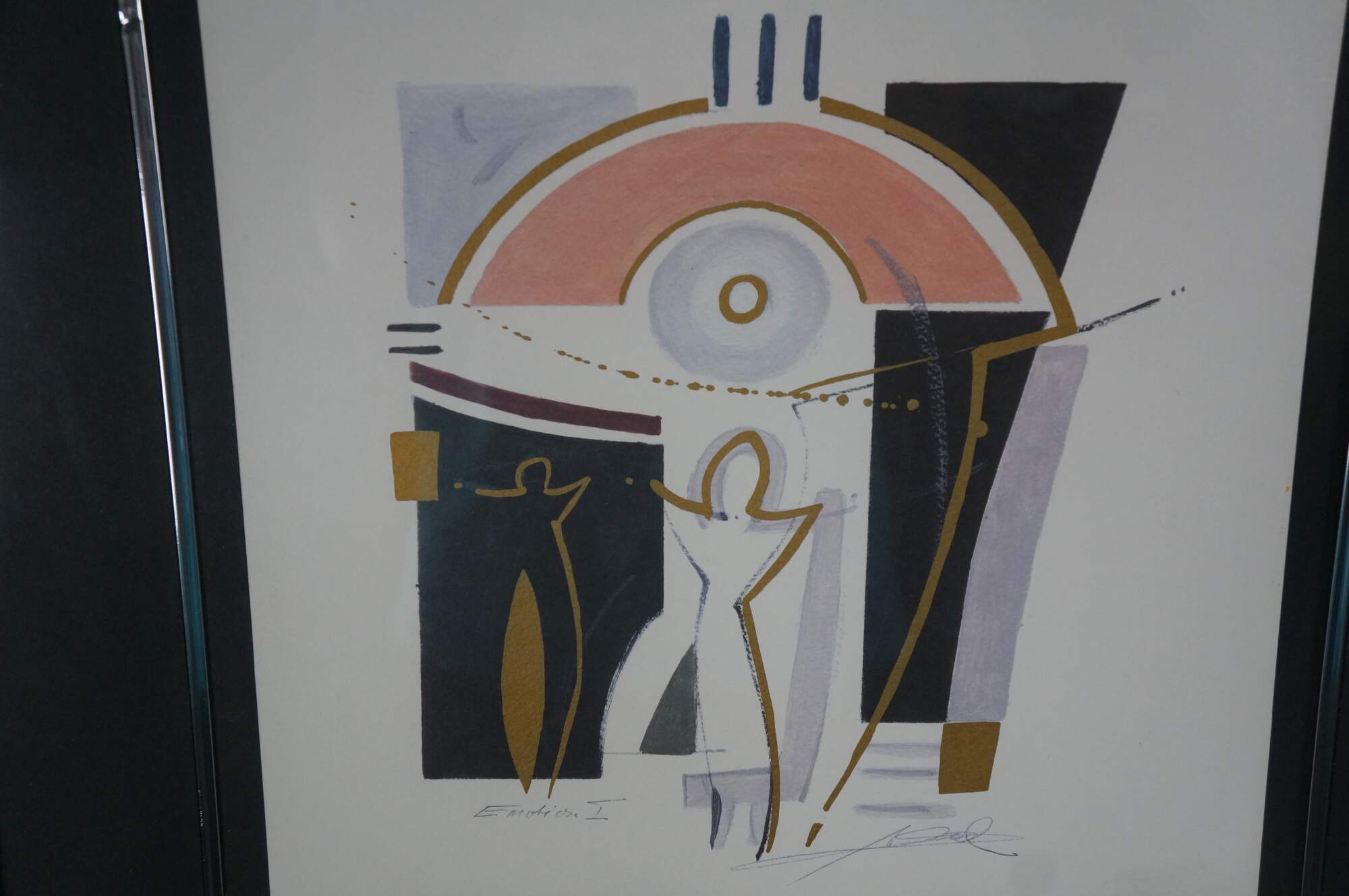 Emotions I-IV by Alfred Gockel, hand signed abstract lithographs. Framed in silver under plexiglass.