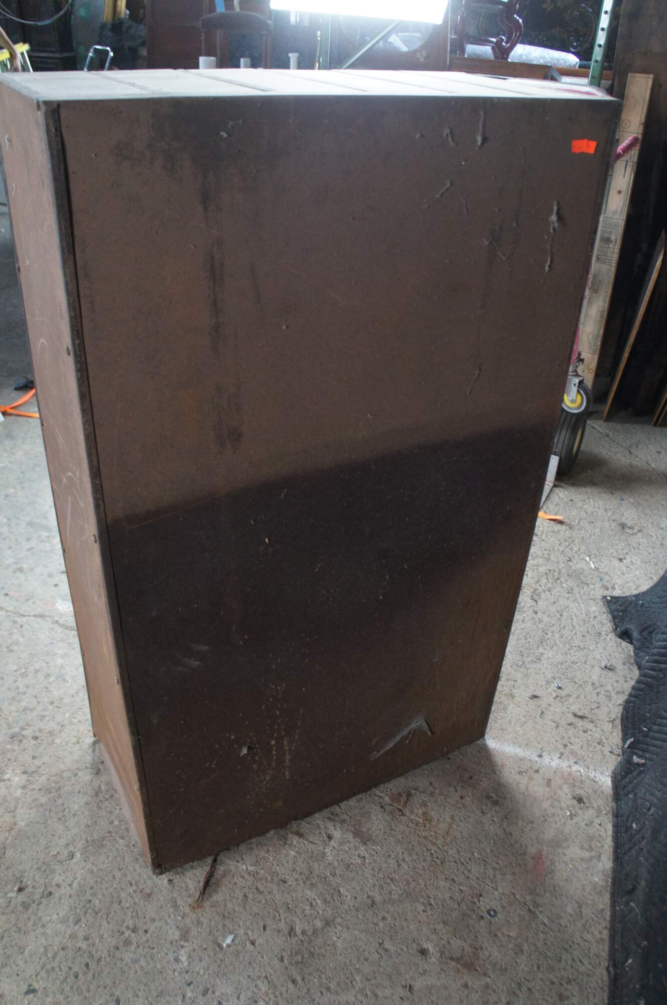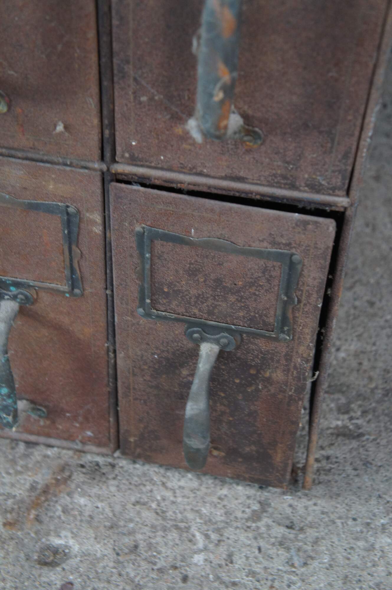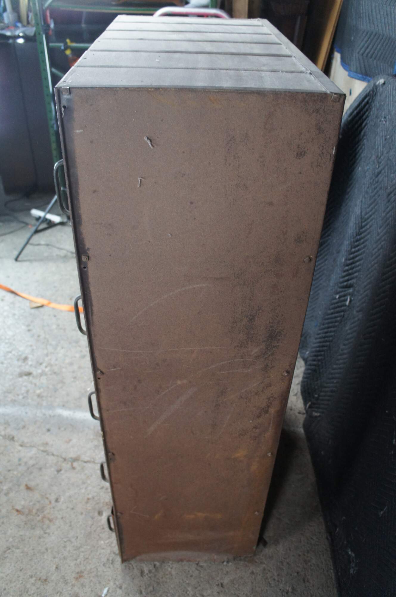 Rare antique fireproof card / index / courthouse file catalogue cabinet from NCR headquarters in Dayton Ohio. This cabinet was part of the original corporate offices and were salvaged from the top floor before demolition. It features 30 apothecary style pull out drawers and a roll down tambor door (not currently functional).