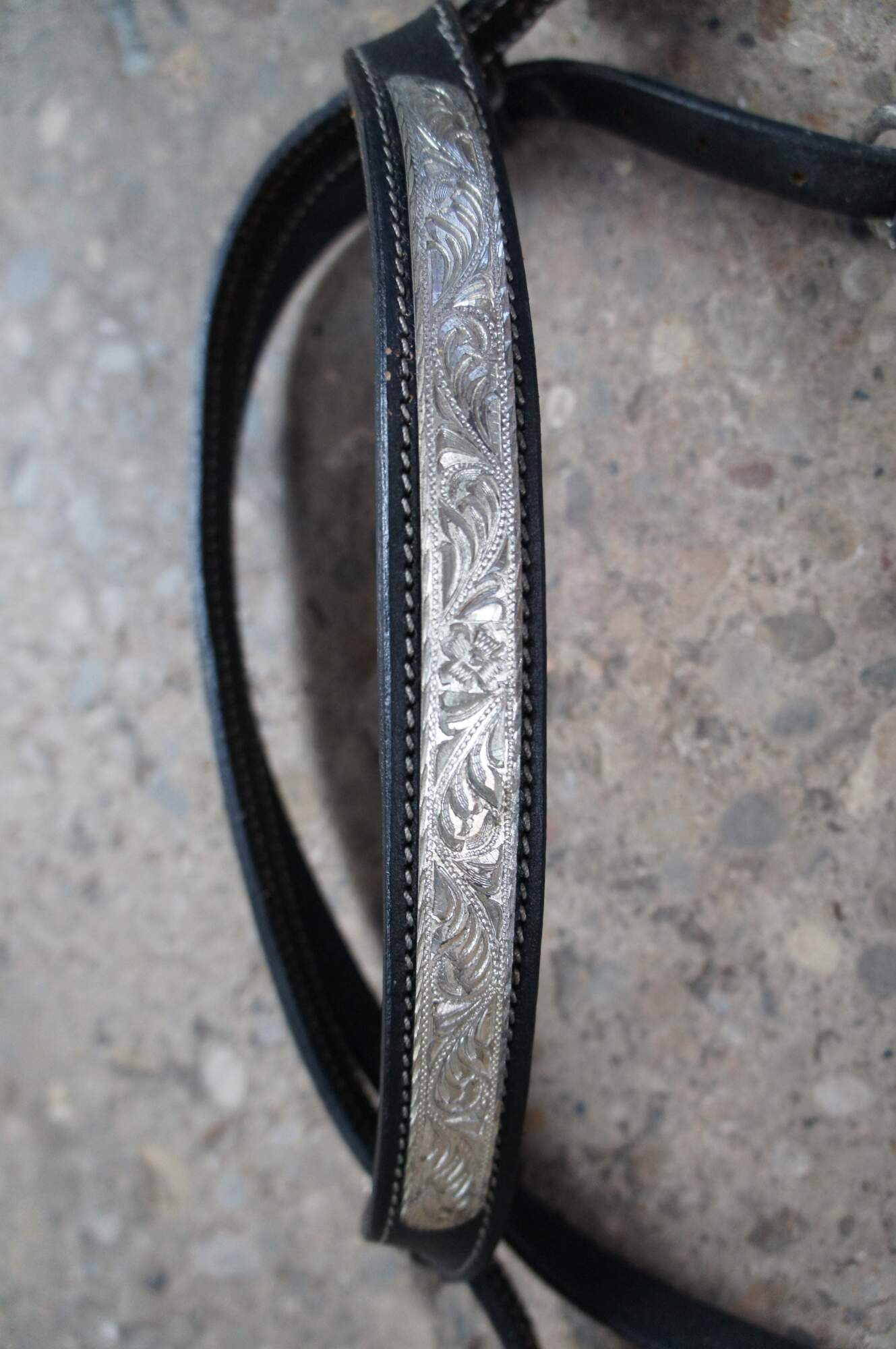 Vintage black and red tooled leather horse saddle. Originally used at Due Process Horse Stables in NJ.