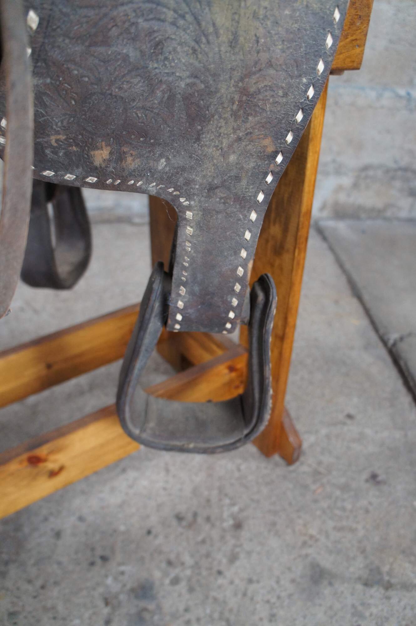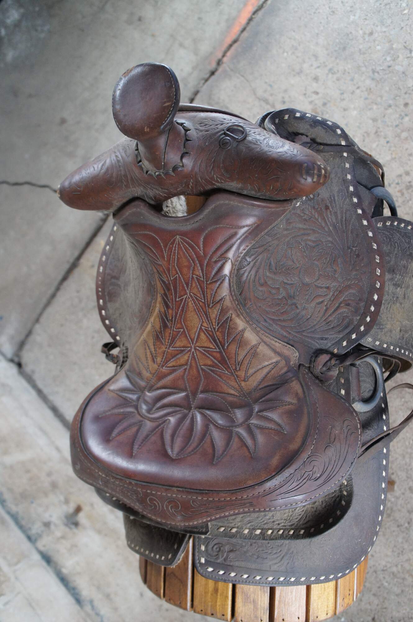 Vintage tooled leather horse saddle. Originally used at Due Process Horse Stables in NJ.