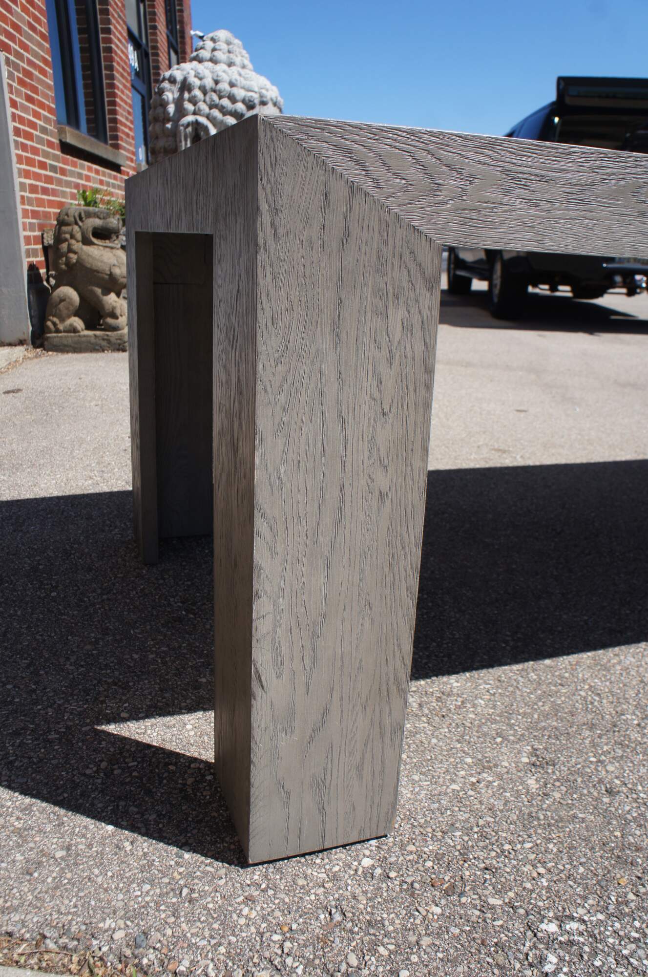 Designed by the Van Thiels, a family-owned company known for their meticulous finish work. Mixes bold proportions and clean, mitered lines in a style both rustic and refined. Inspired by 1970s postmodern design, it features American white oak hand-finished to highlight its warmth and naturally rich grain.