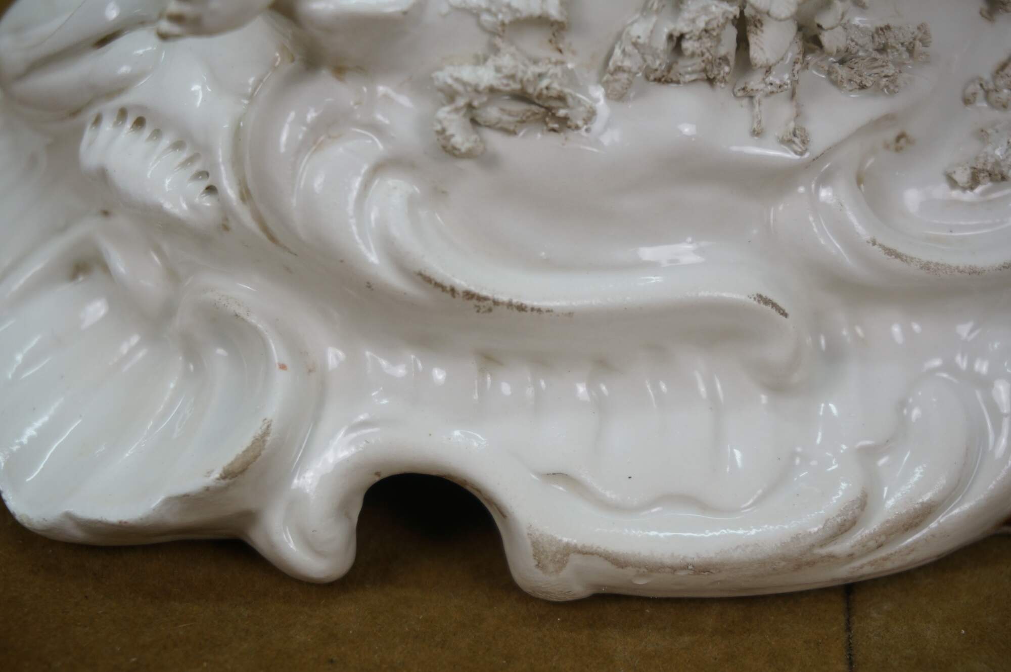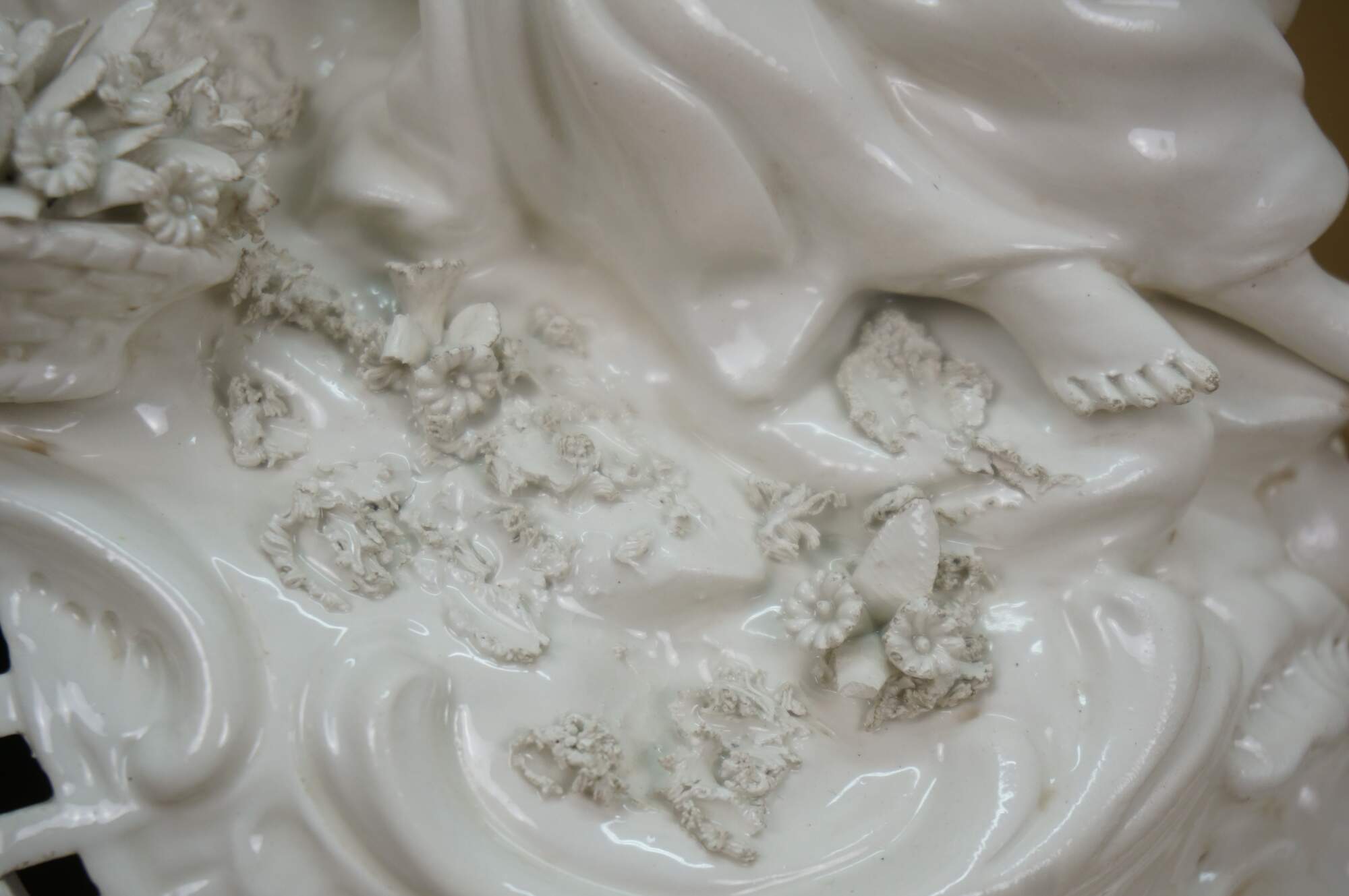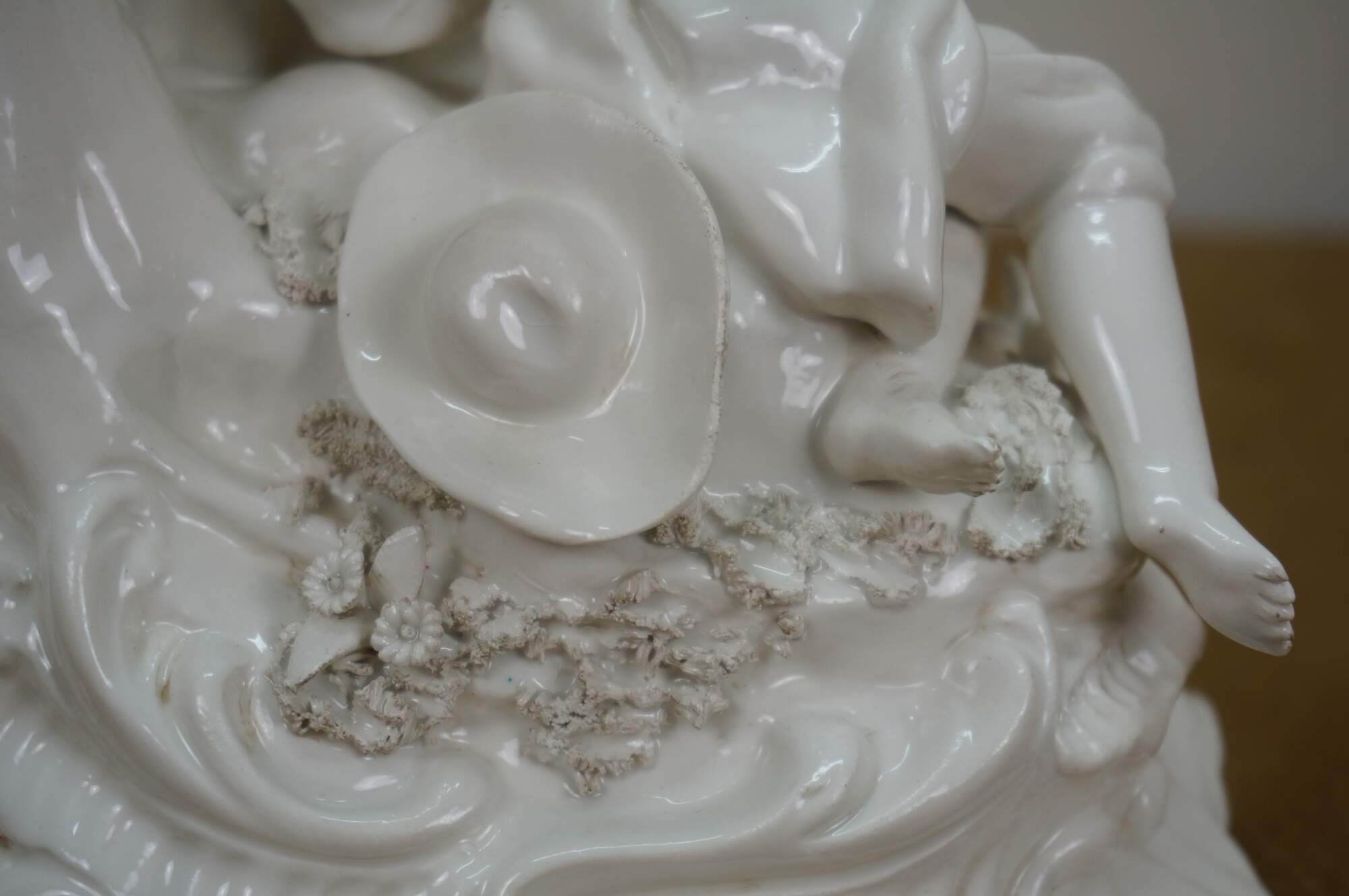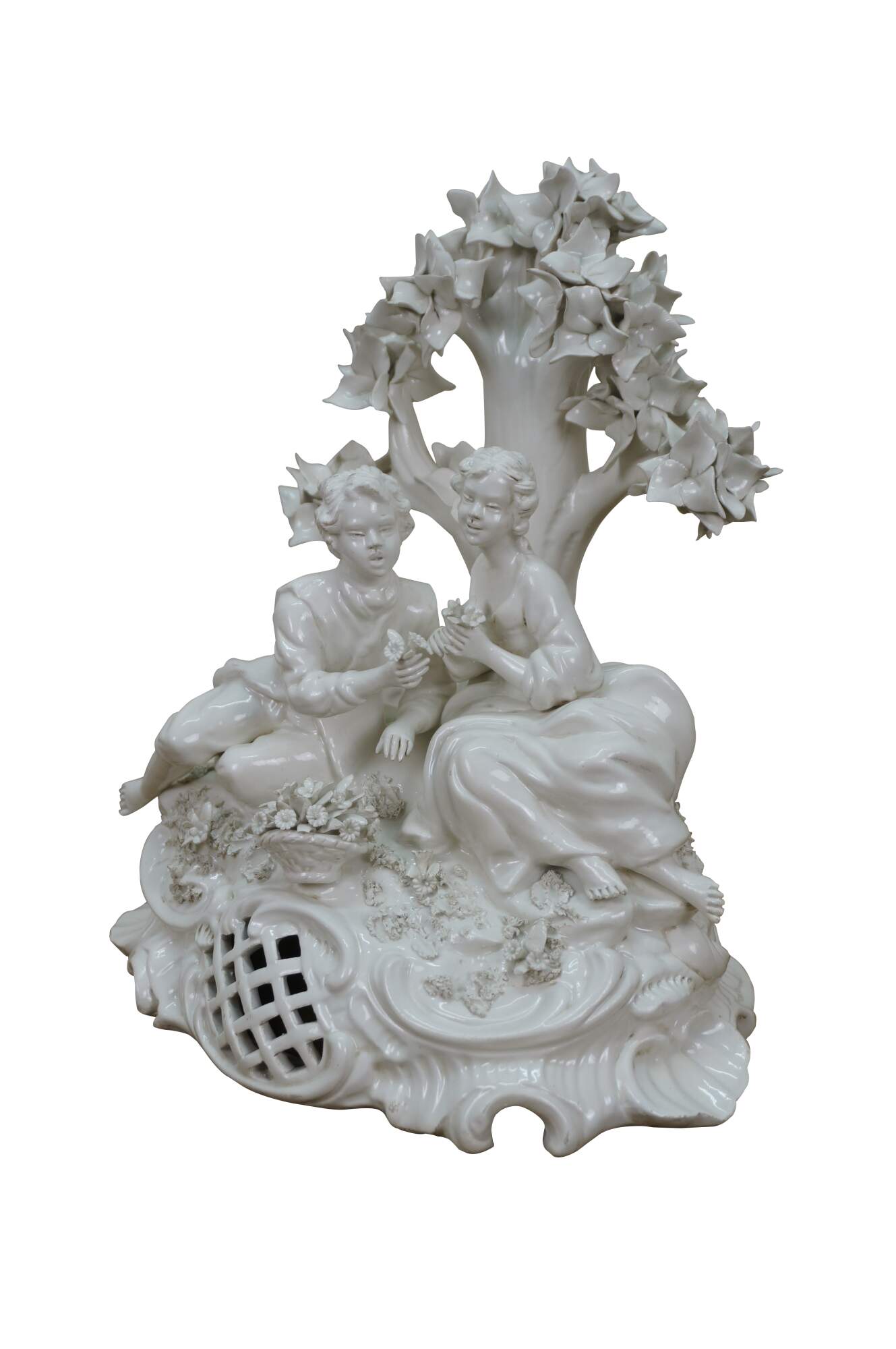 Vintage Italian Capodimonte Blanc de Chine Victorian courting couple art nouveau style figurine featuring two lovers under a tree, picking flowers for their basket / bouquet.