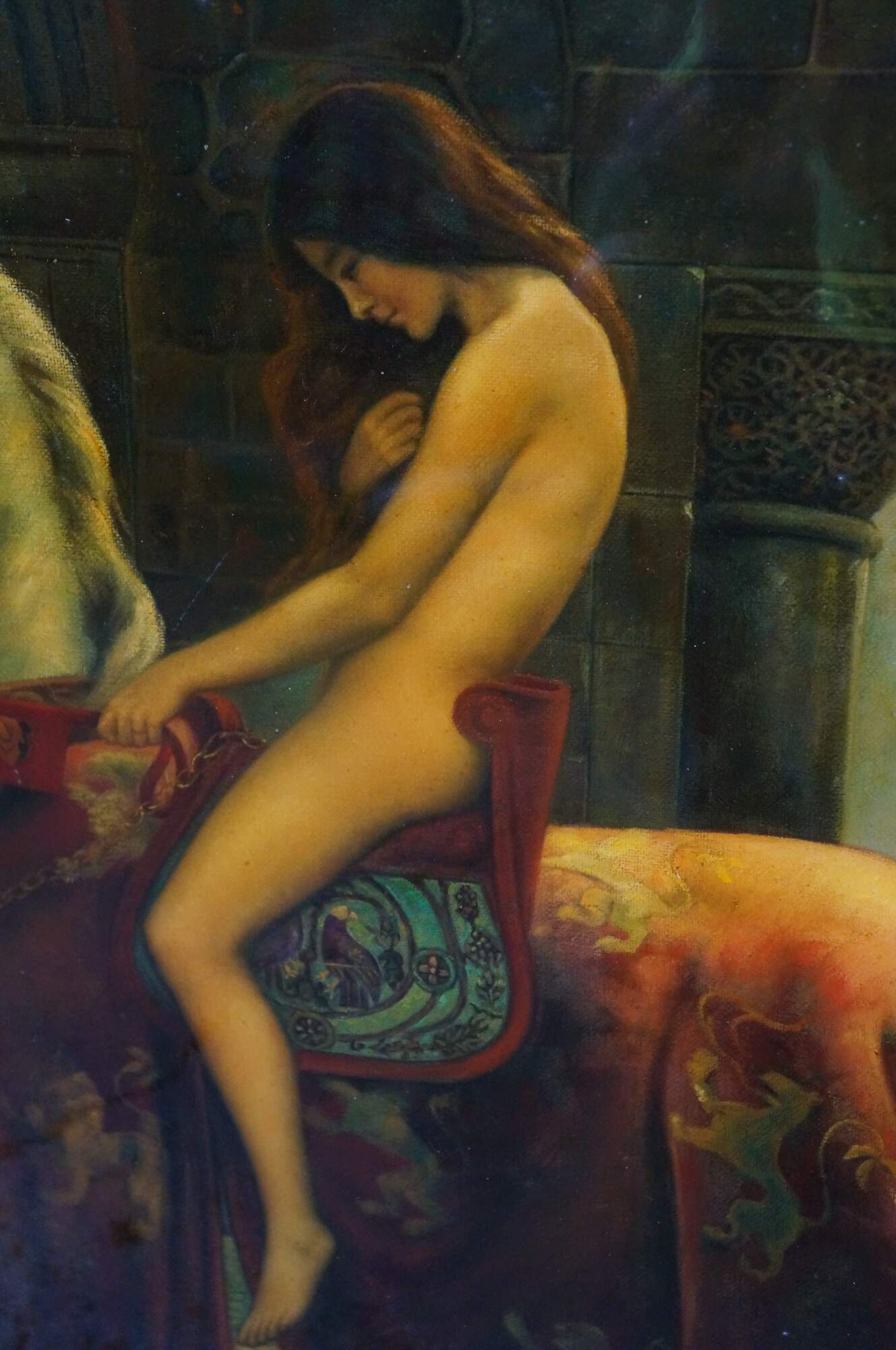 Lady Godiva reproduction Painting after John Collier, circa late 20th Century. Oil on board, framed