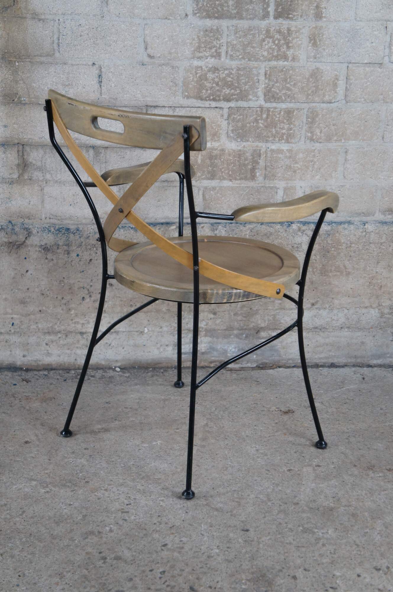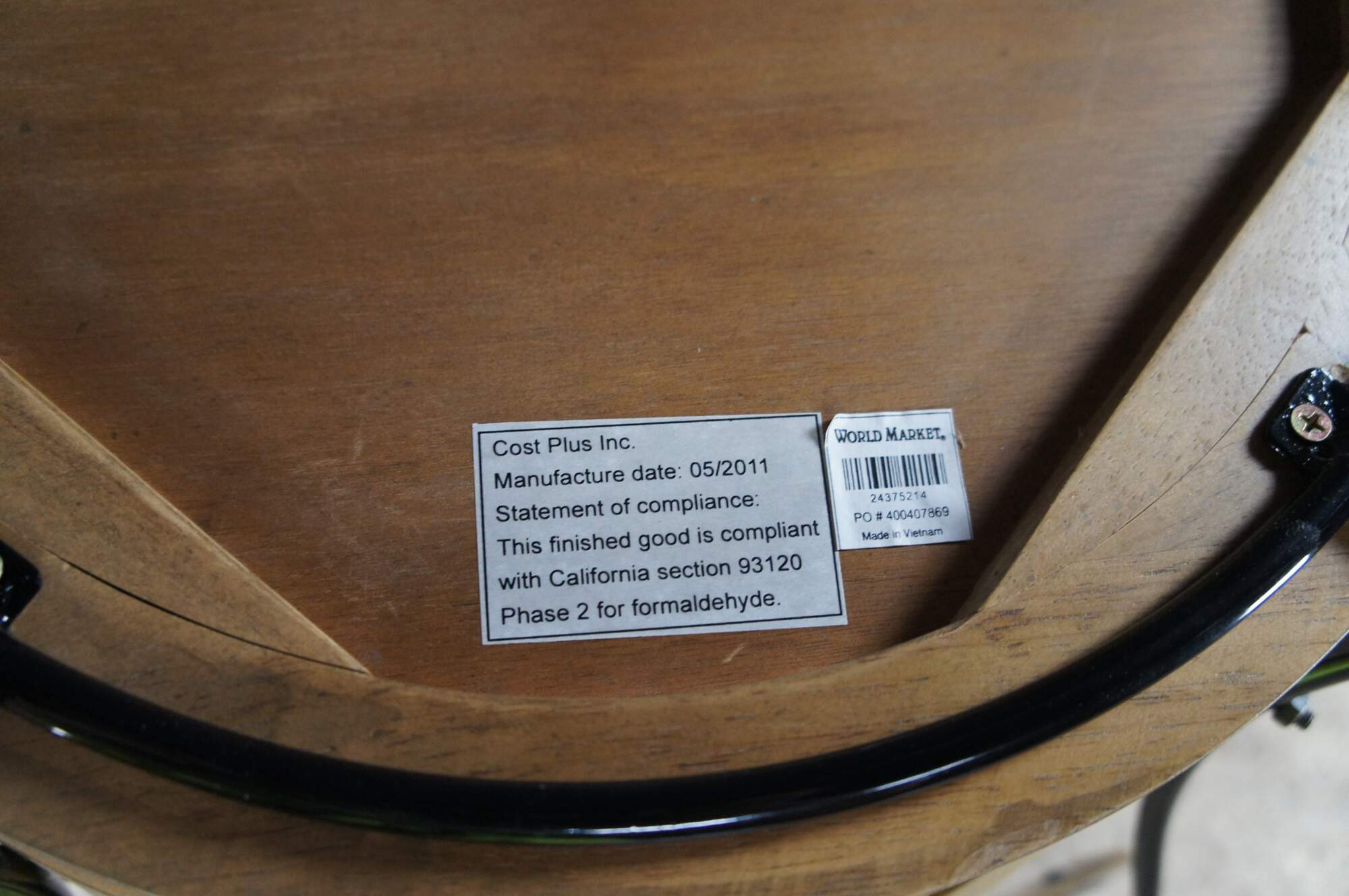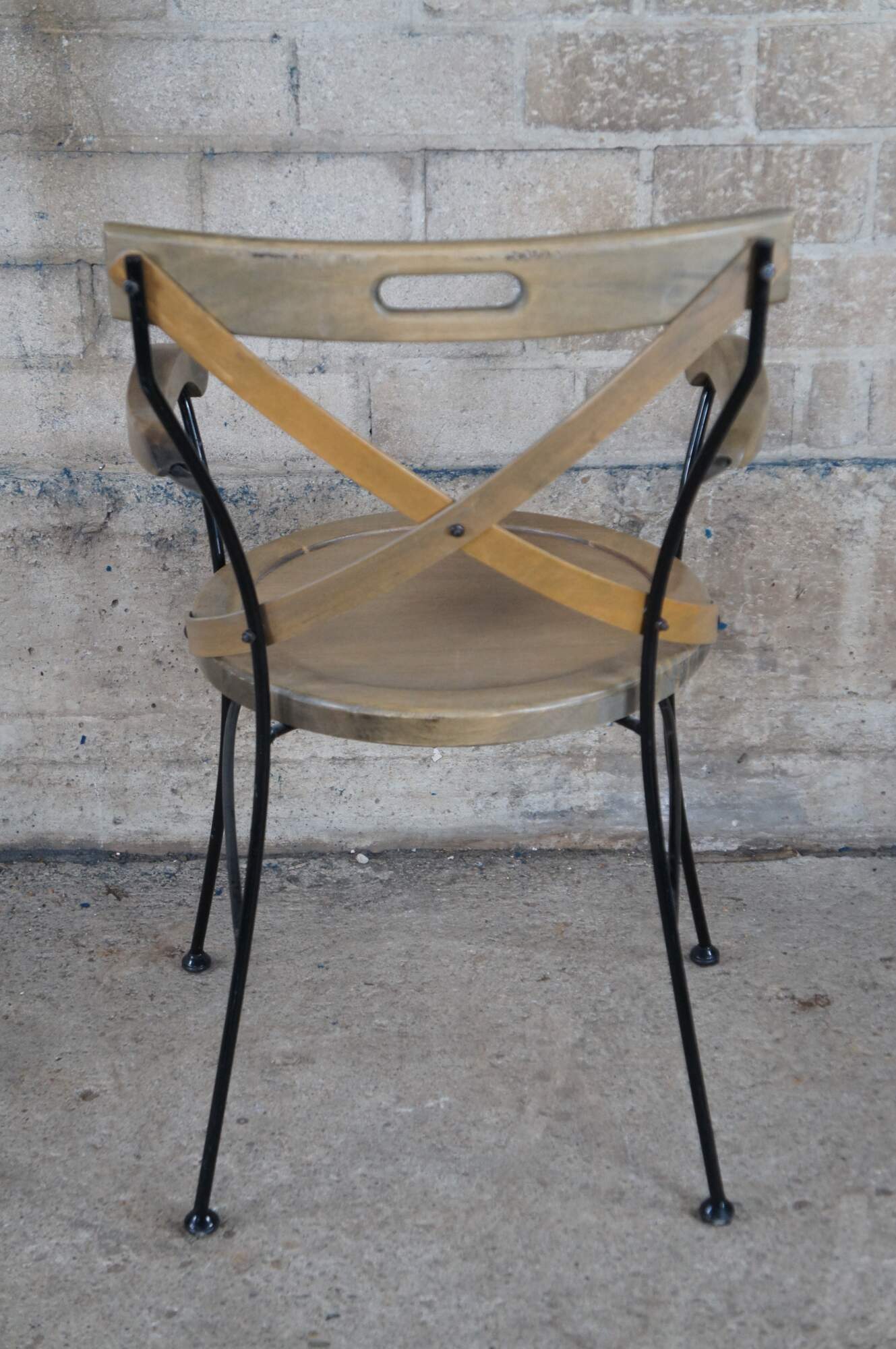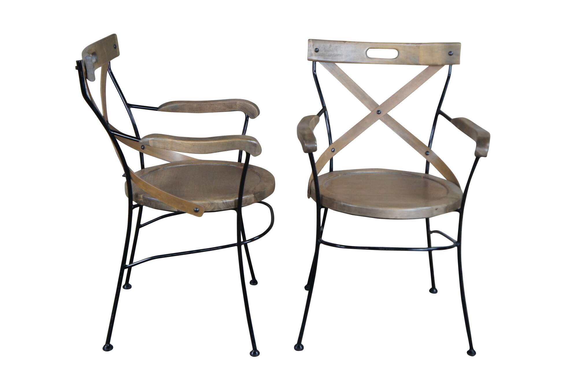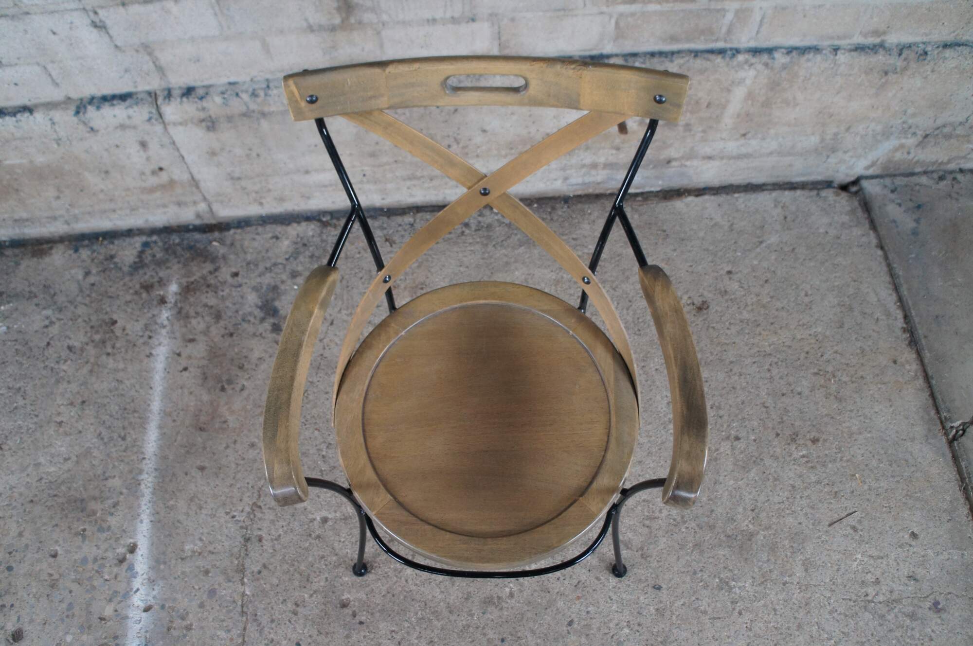 Set of five World Market Cost Plus Anthropologie style campaign dining arm chairs. Made of Birch featuring X back with metal frame. Made in Vietnam.