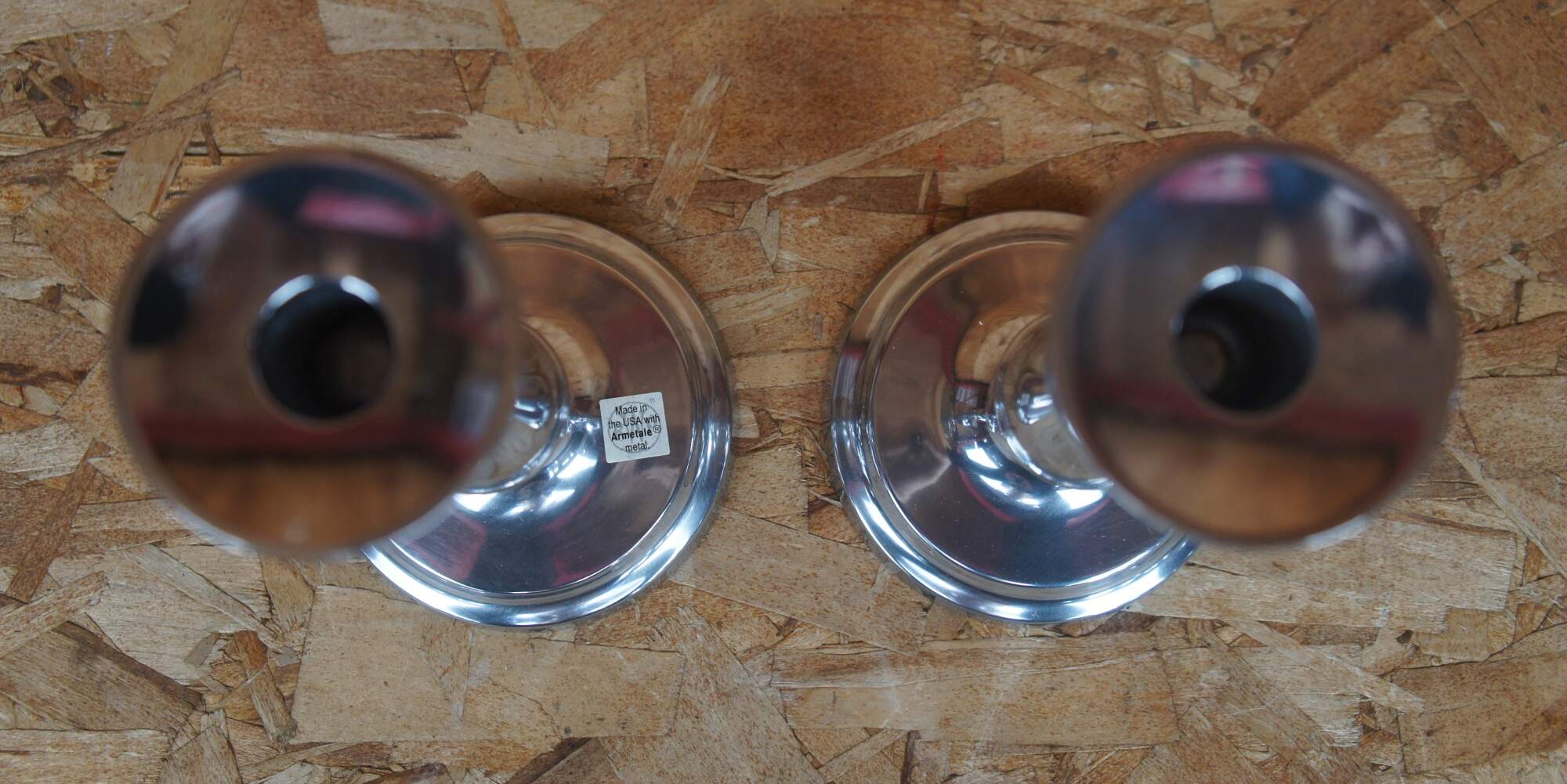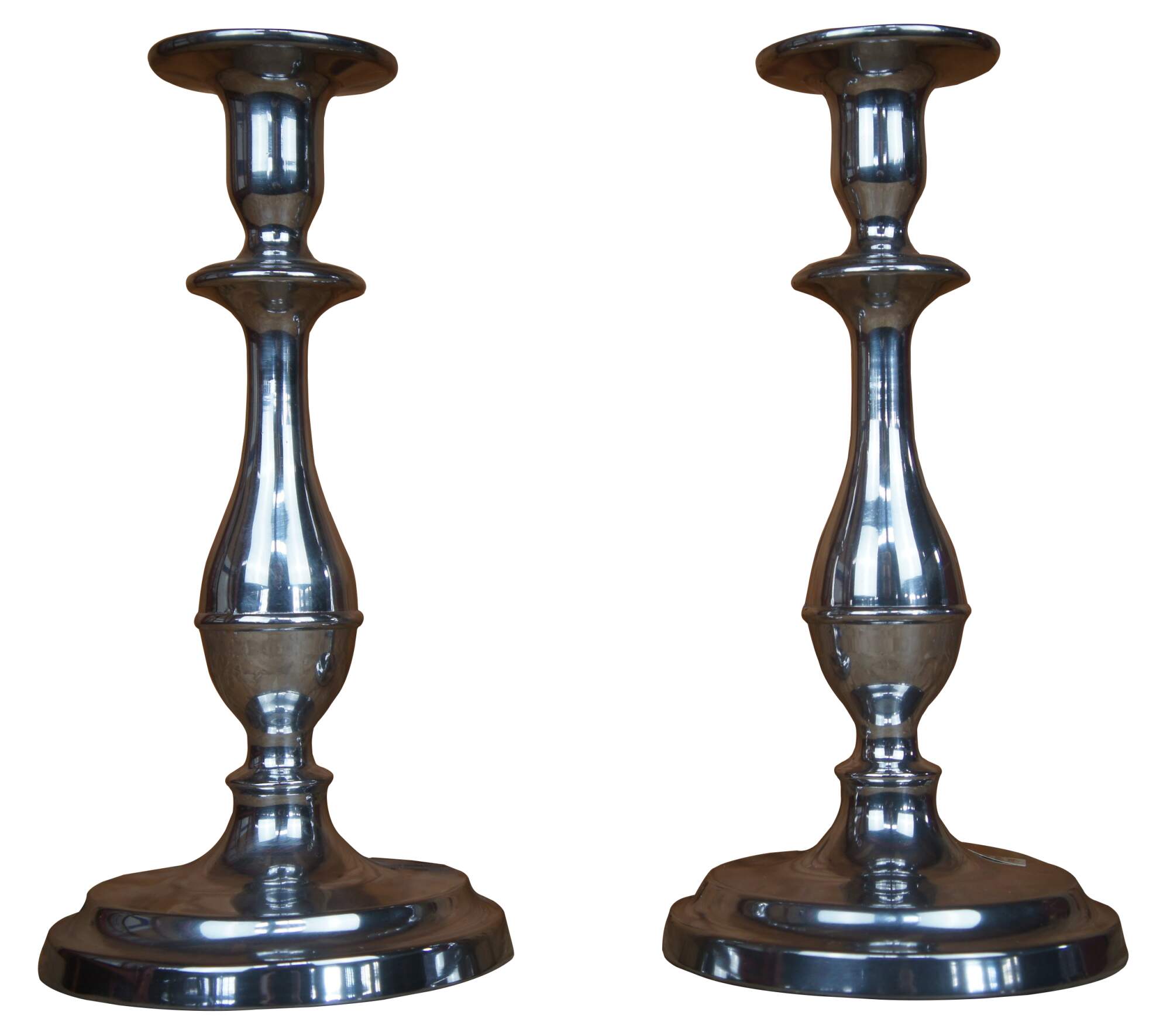 2 candlesticks by Royal Wilton Pewter in their plough tavern design featuring satin finish. These are new in original packaging.