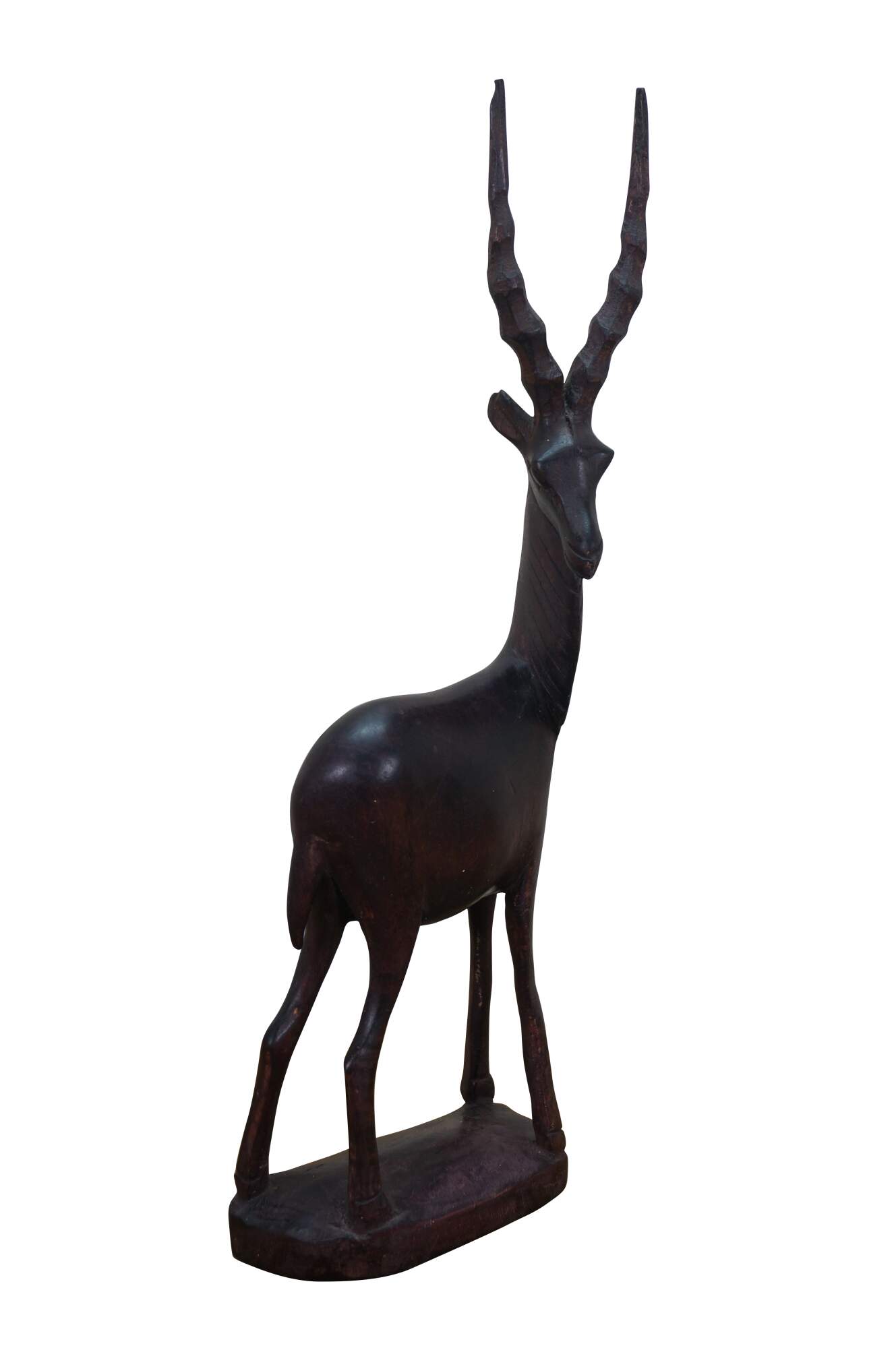 Hand-carved large wood Kenya Africa impala / antelope figurine/sculpture. Souvenir of Walt Disney World, circa 1970s.
