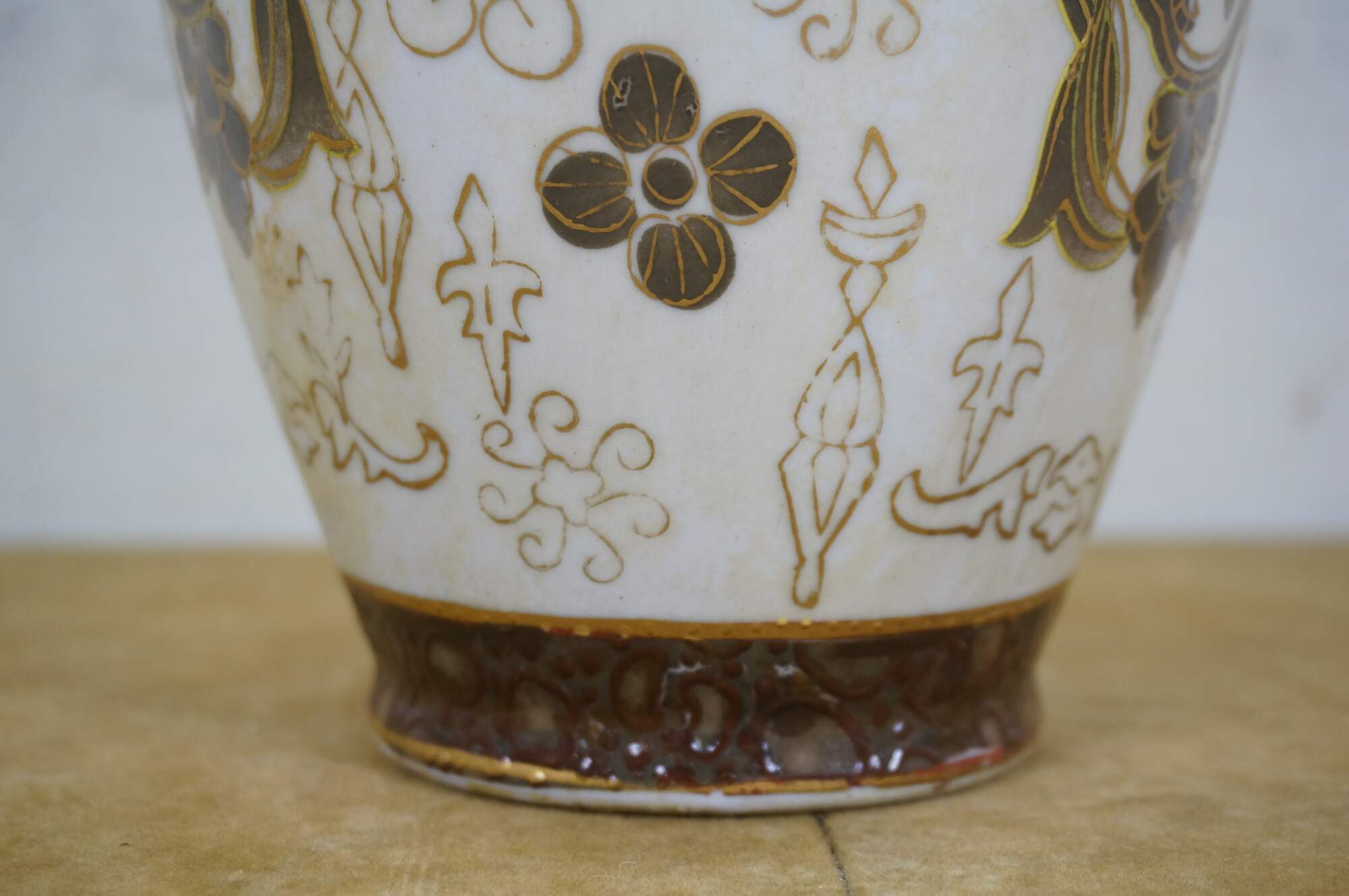 Late 20th century Chinese white porcelain flower vase, stamped with a floral and ribbon motif in brown and gold.