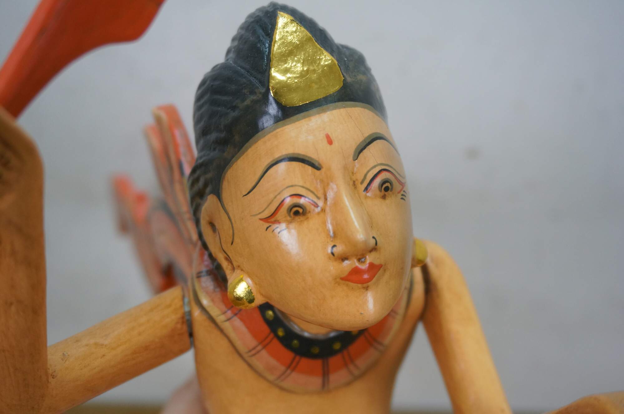 The Flying Winged Spirit Guardians (also sometimes called Cradle Guardians) myth goes all the way back ancient Majapahit Mythology, the roots of Balinese culture and art.These Guardian figures are still produced by Balinese artisans today for they have deep cultural & spiritual significance. Typically these carvings have been used in temples or homes since ancient times to ward off evil spirits. They are always hung in a high spot, or if a statue placed on a beam or shelf looking down towards a door or window. Many types may be found from flying angels (known as Dewi which means Goddess in Balinese), animals or strange hybrids, such as head of a horse head & tail of a fish, or Gajamina head of an elephant & tail of a fish. It is believed that a Flying Guardian placed in ones home or sacred space will drive away evil spirits and protect the premises from harm.