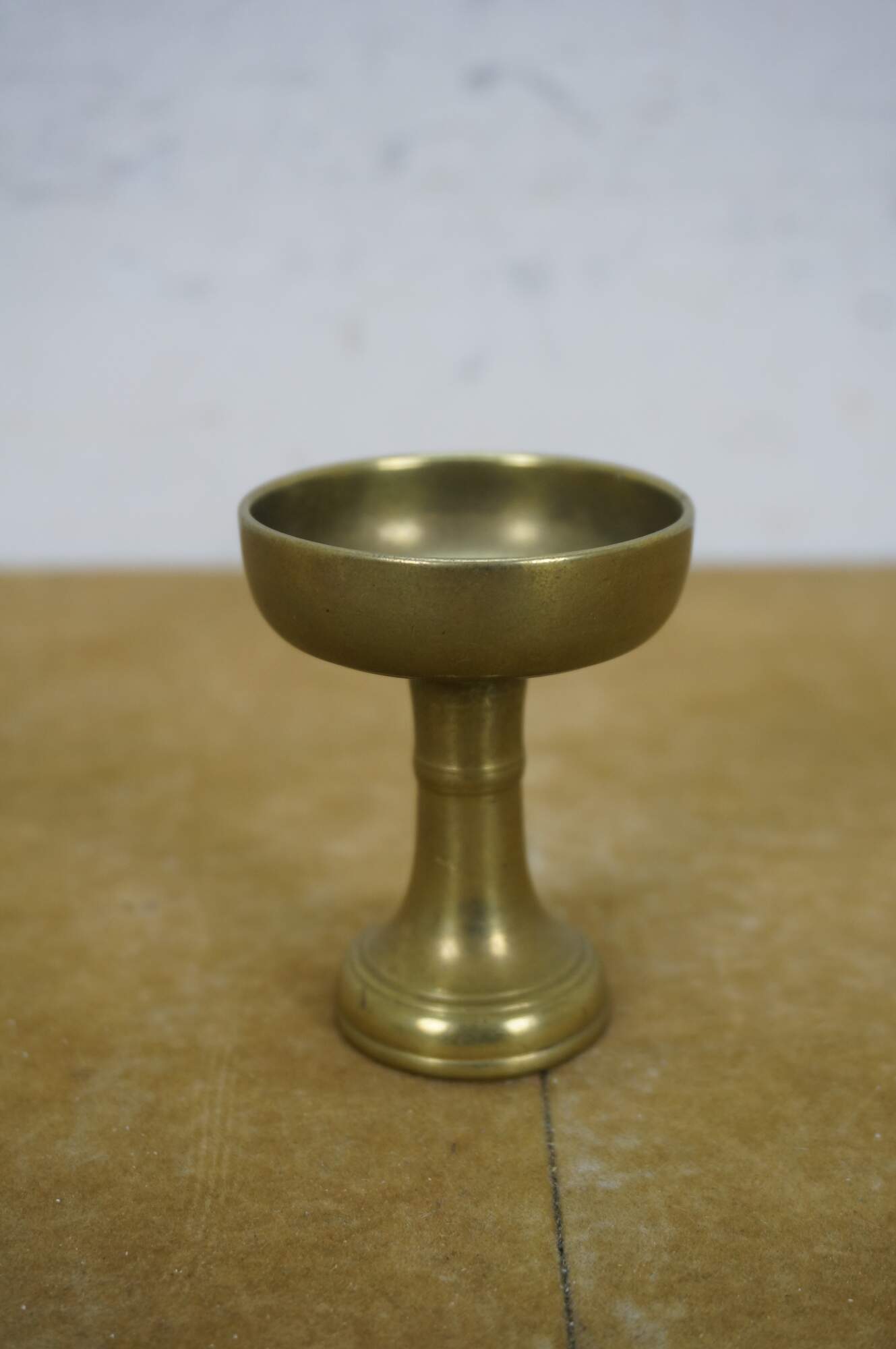 Small 20th century vintage brass rice offering cup / pedestal bowl for use on Buddhist altars.