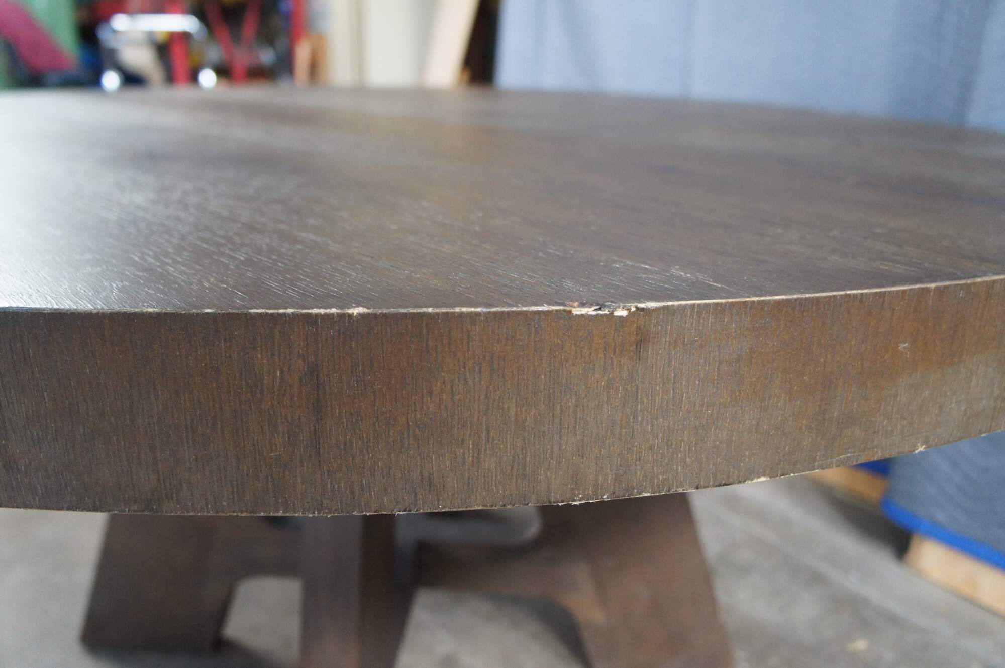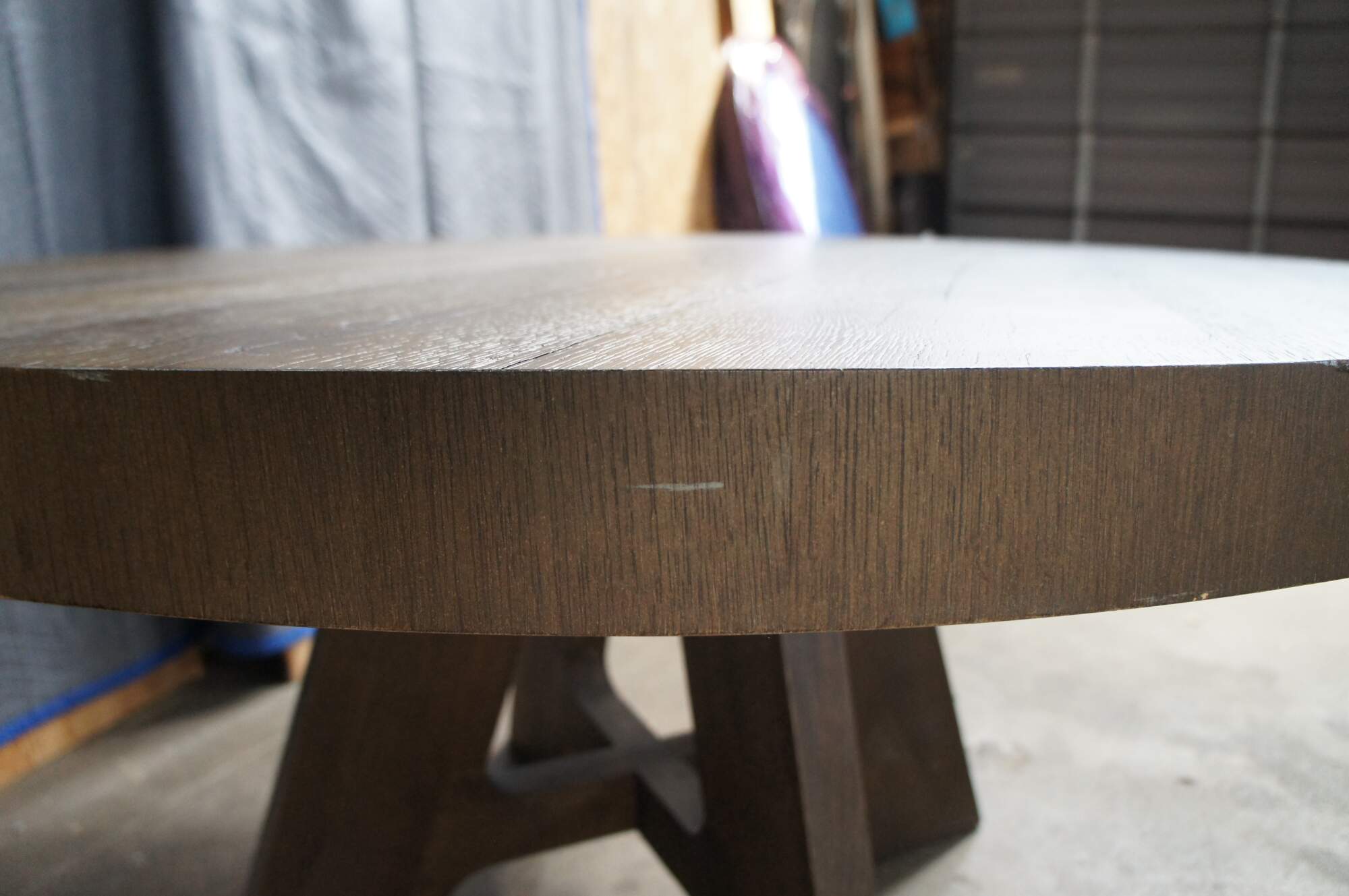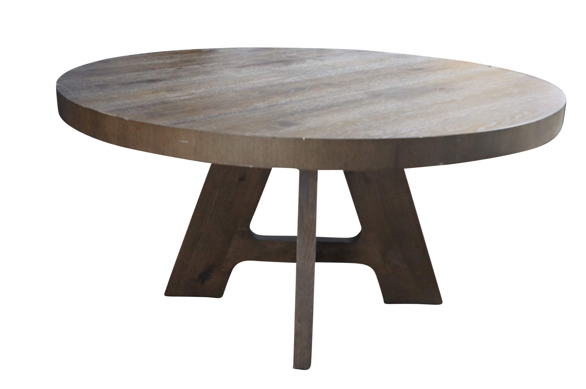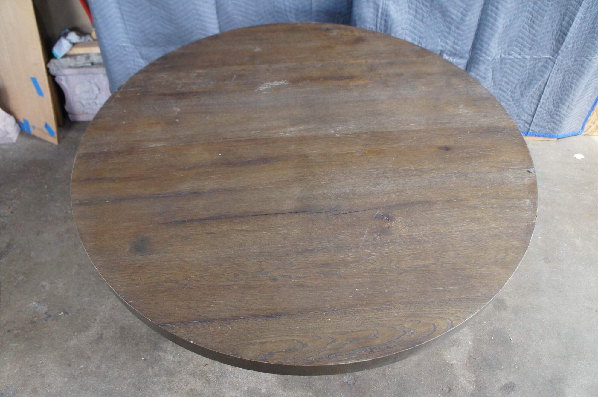 RH Davos Oak Round Dining Table, Finish: Aged Dark Brown Oak.