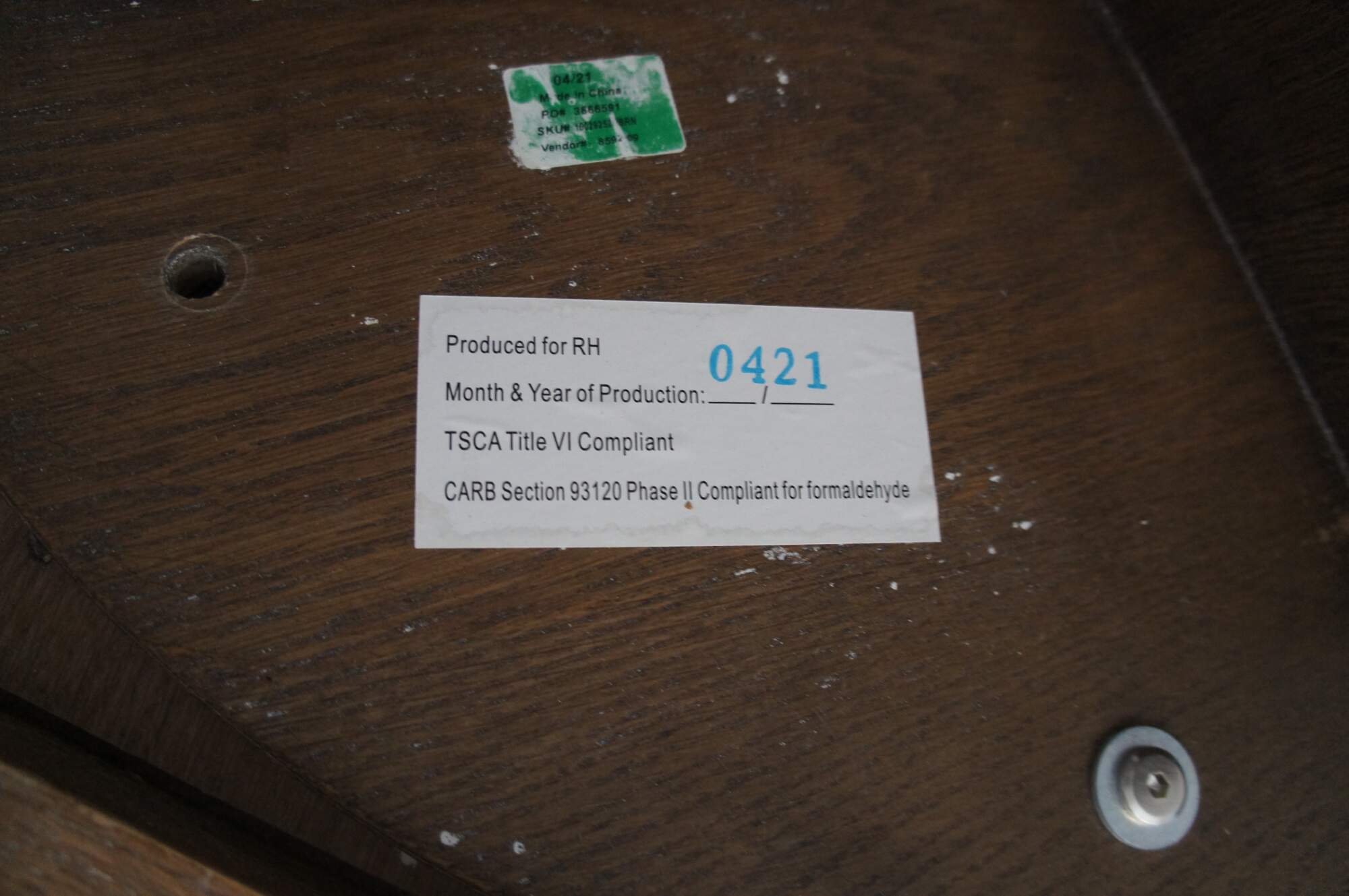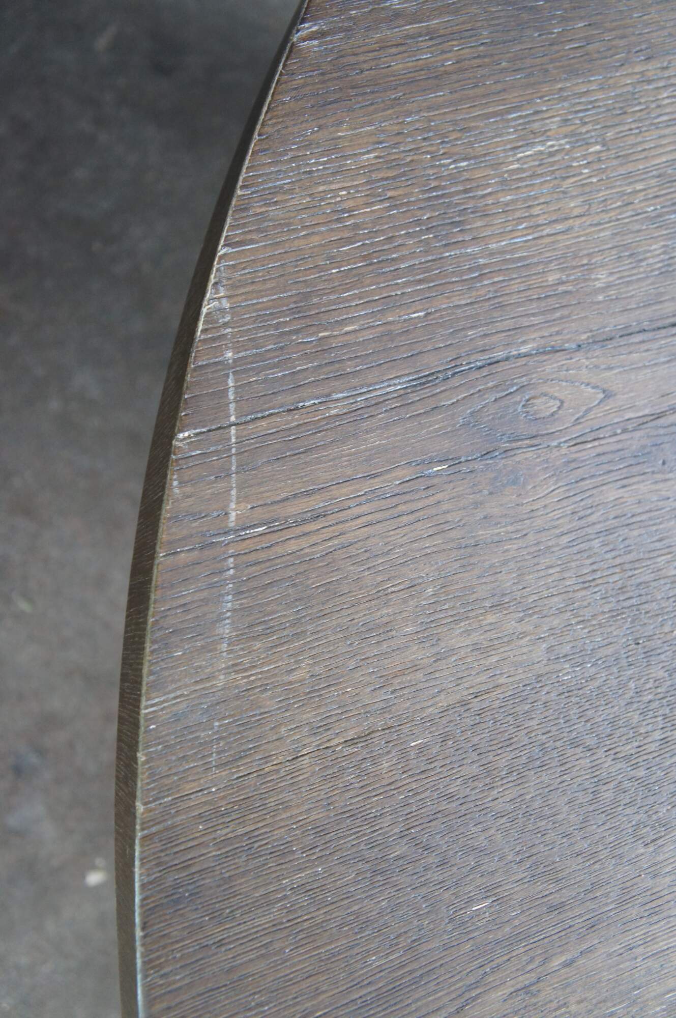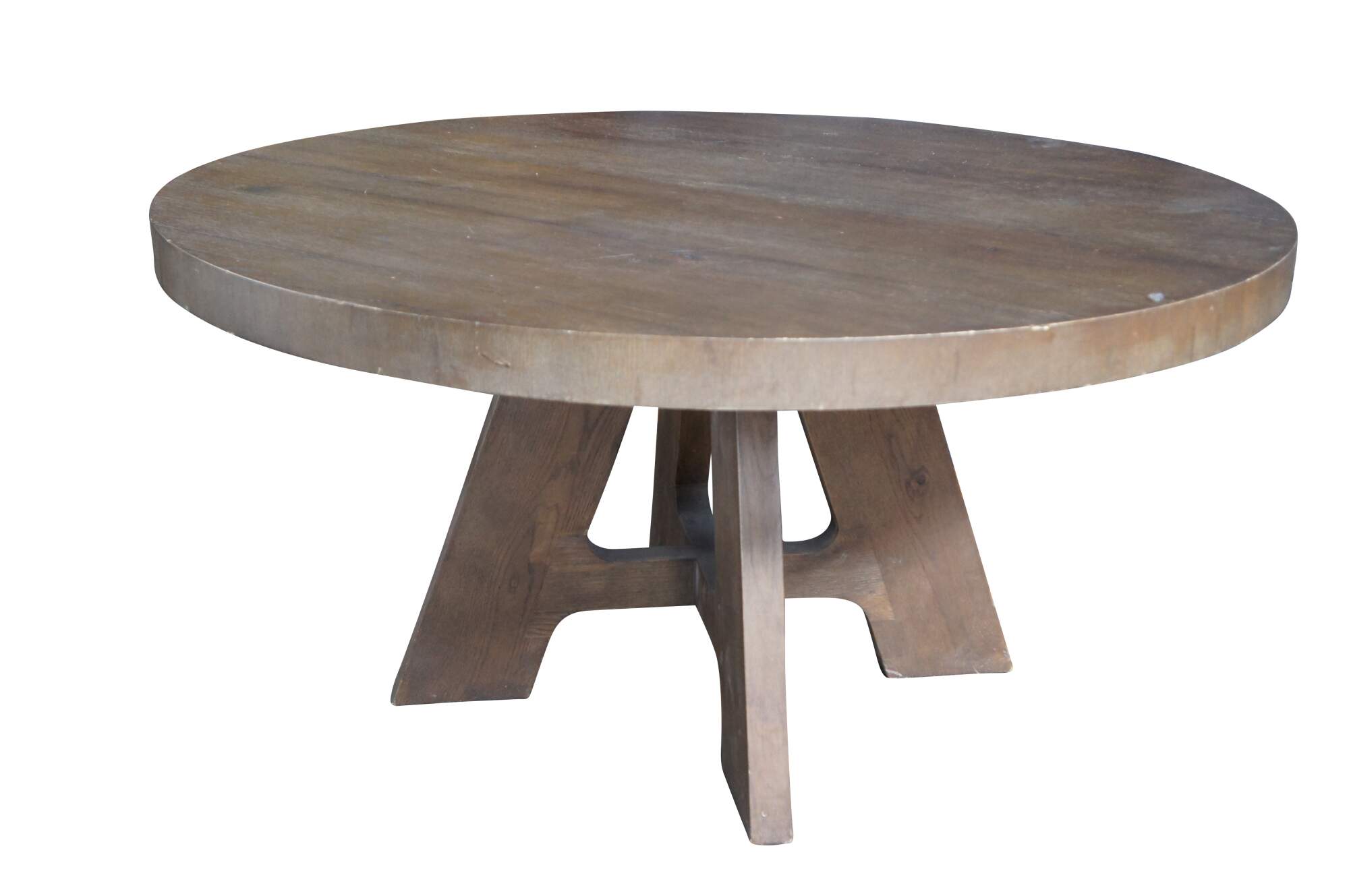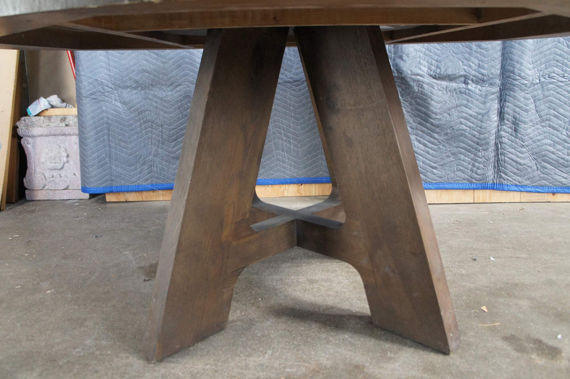 RH Davos Oak Round Dining Table, Finish: Aged Dark Brown Oak.