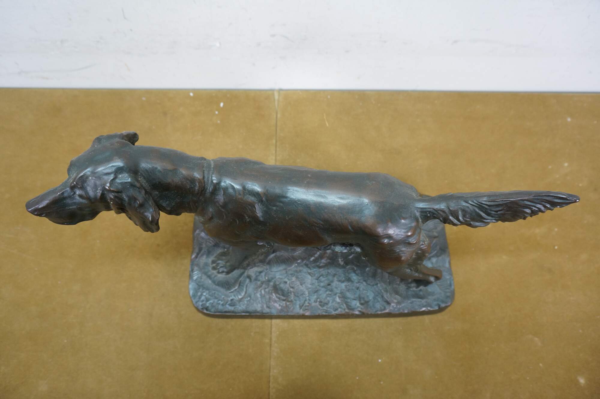 Vintage English Setter / Pointer / hunting dog sculpture. Made of composite / resin featuring a faux bronze finish. Made by Eurolux in the USA.