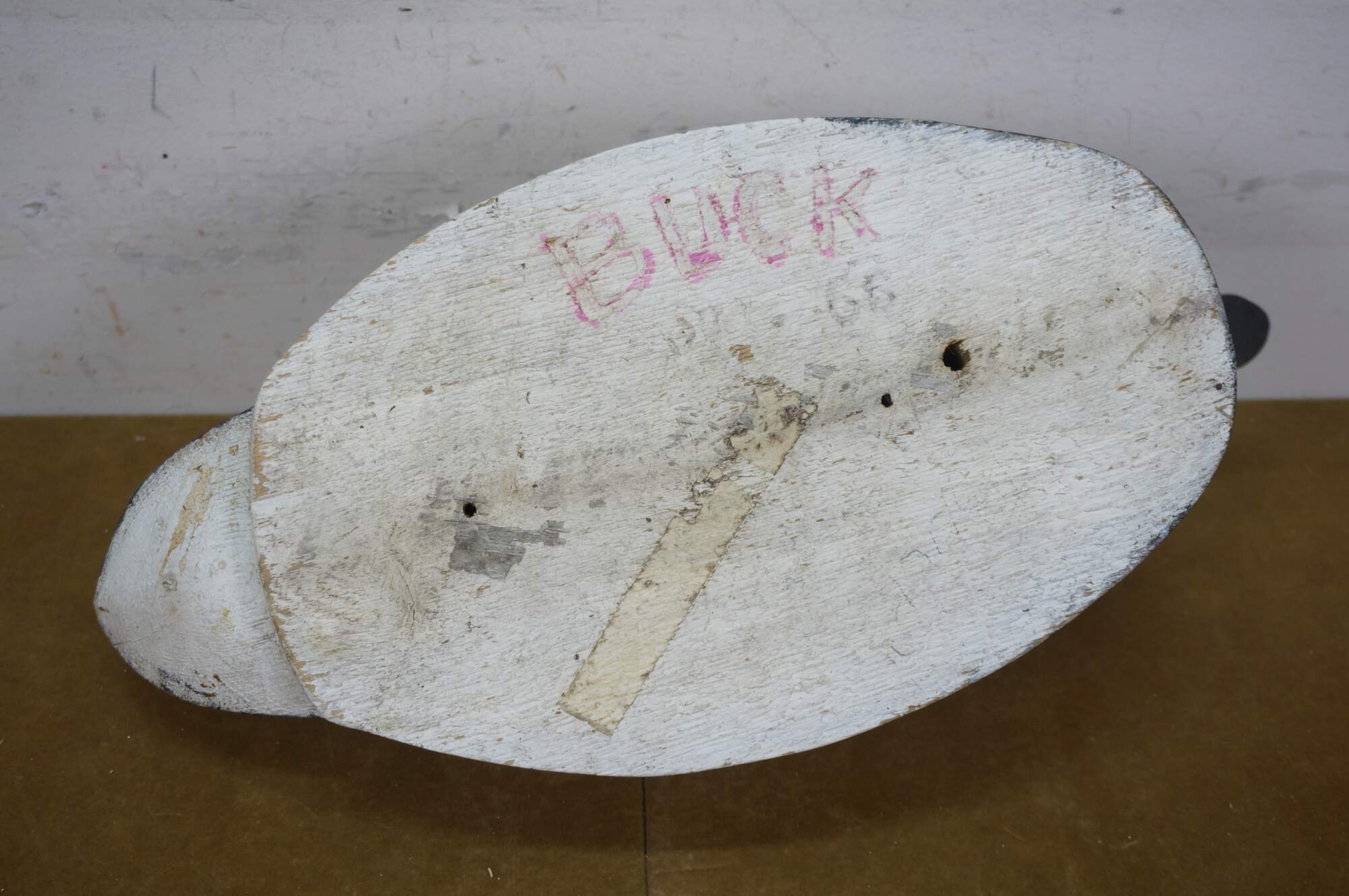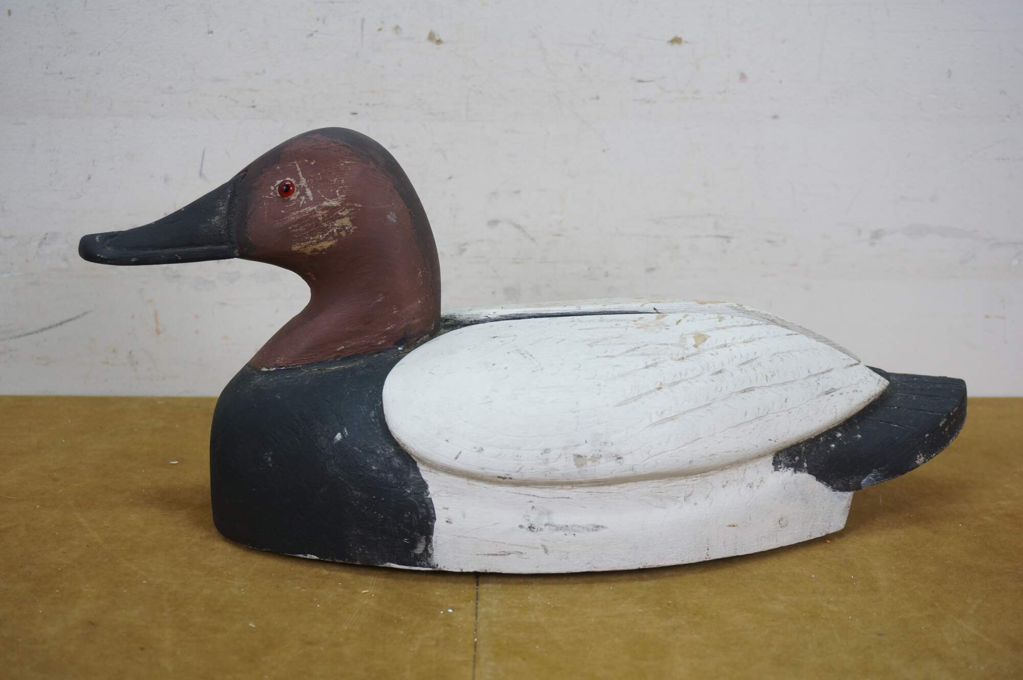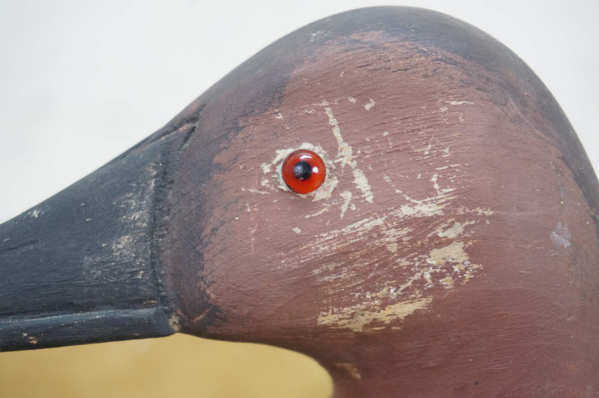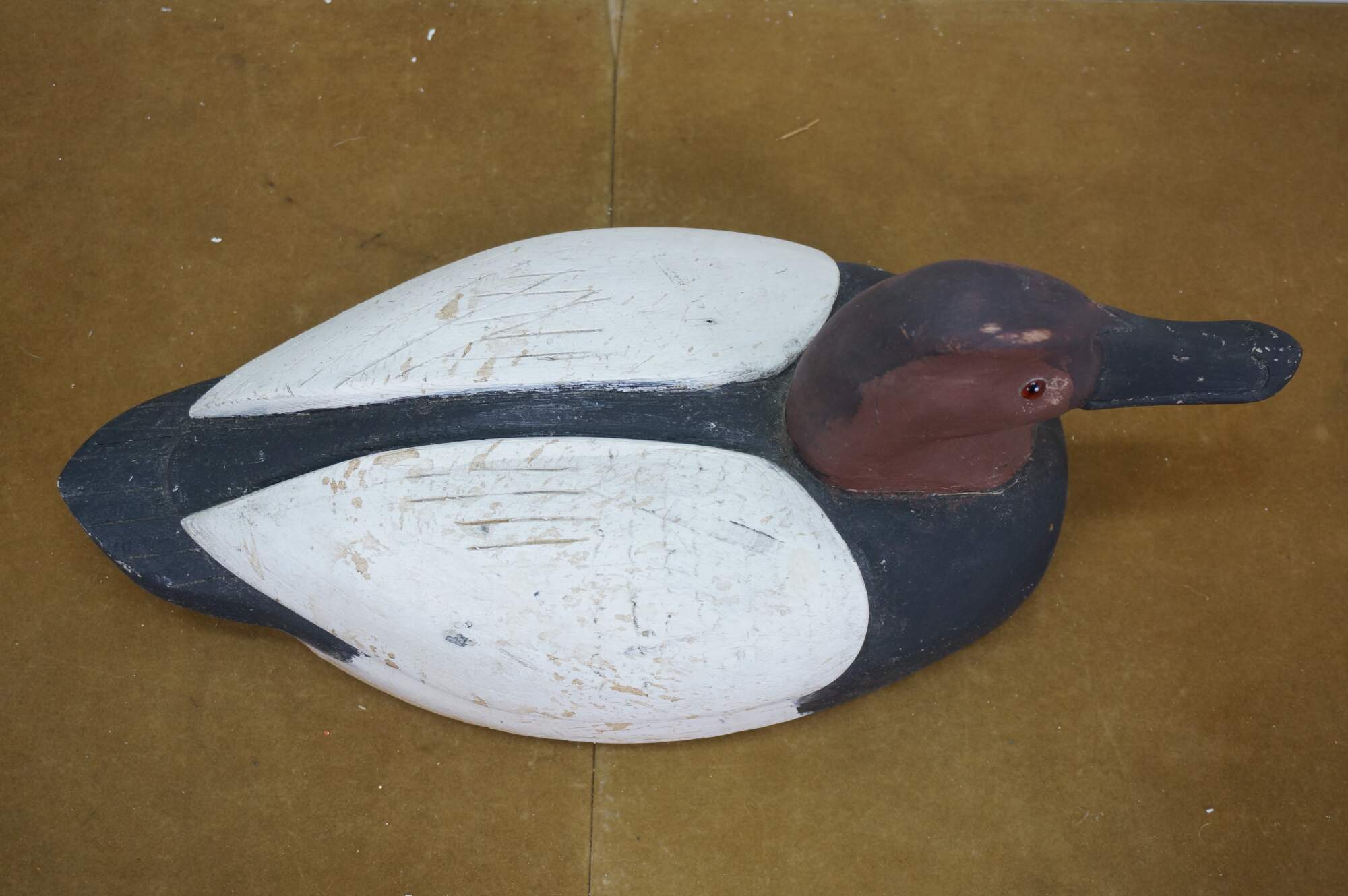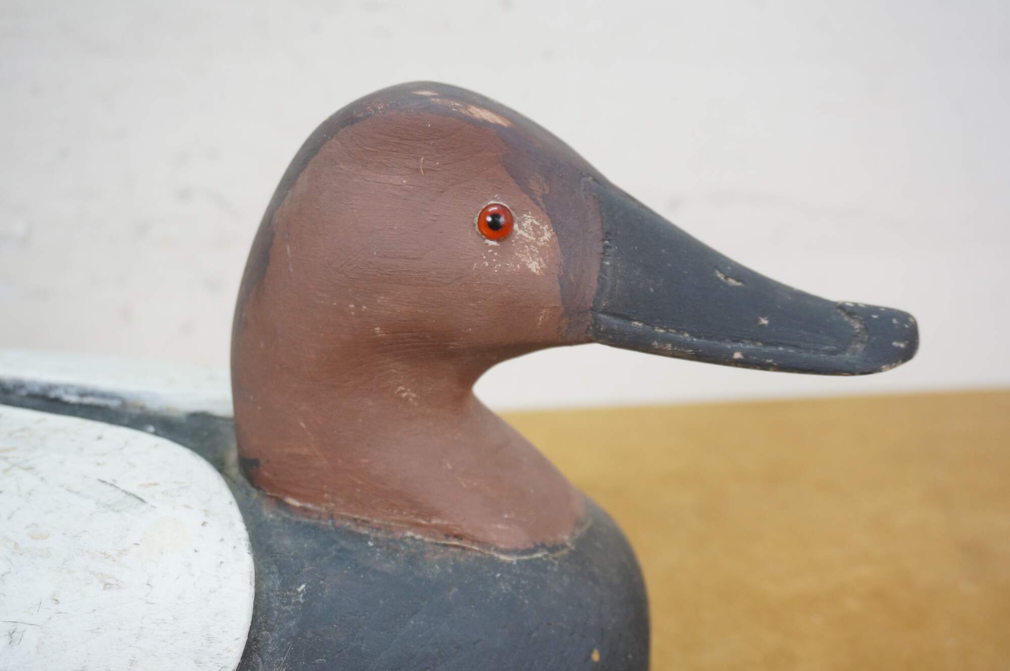 Large vintage mid century folk art redhead Canvasback duck decoy by Buck, circa 1966.