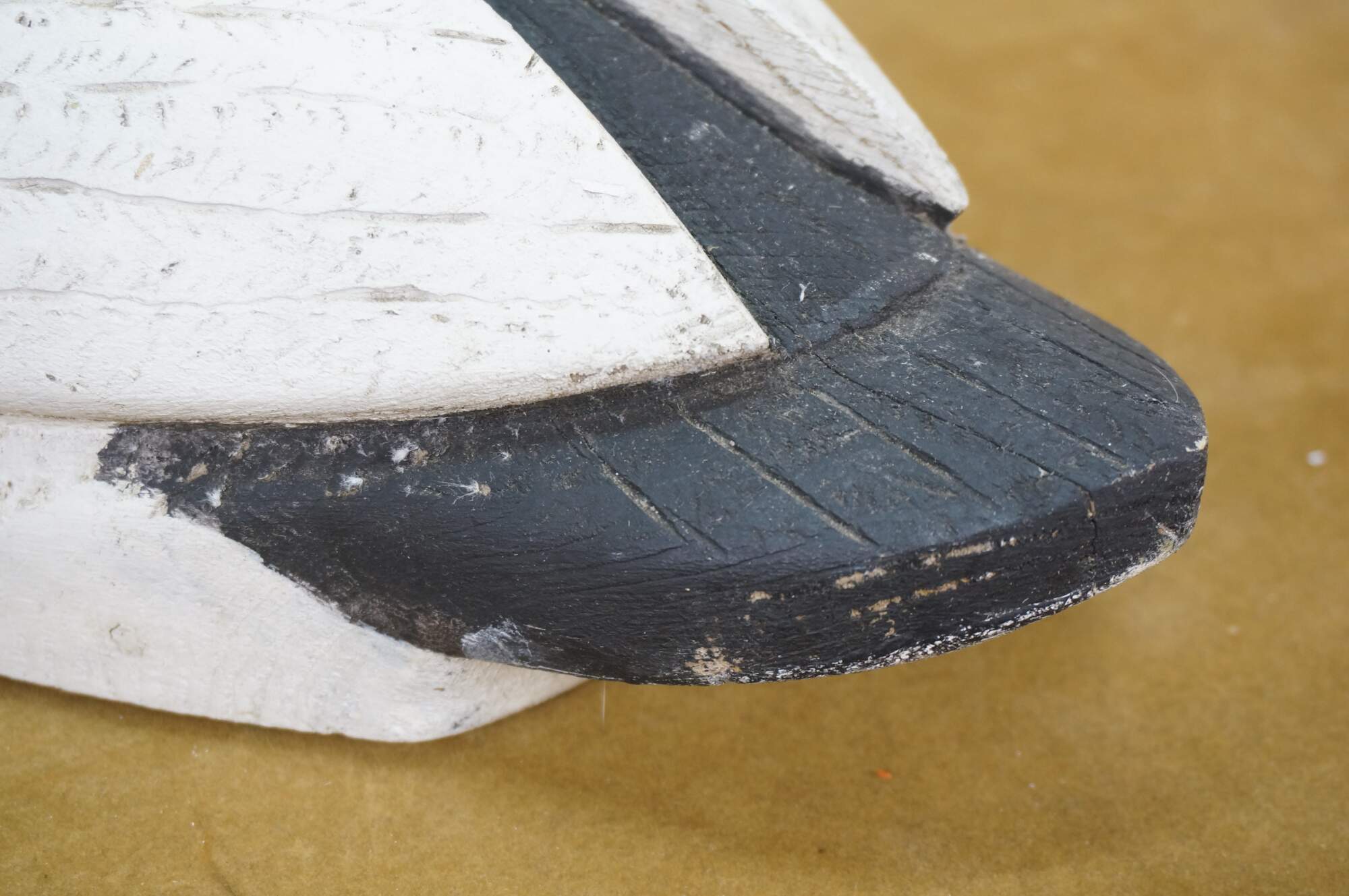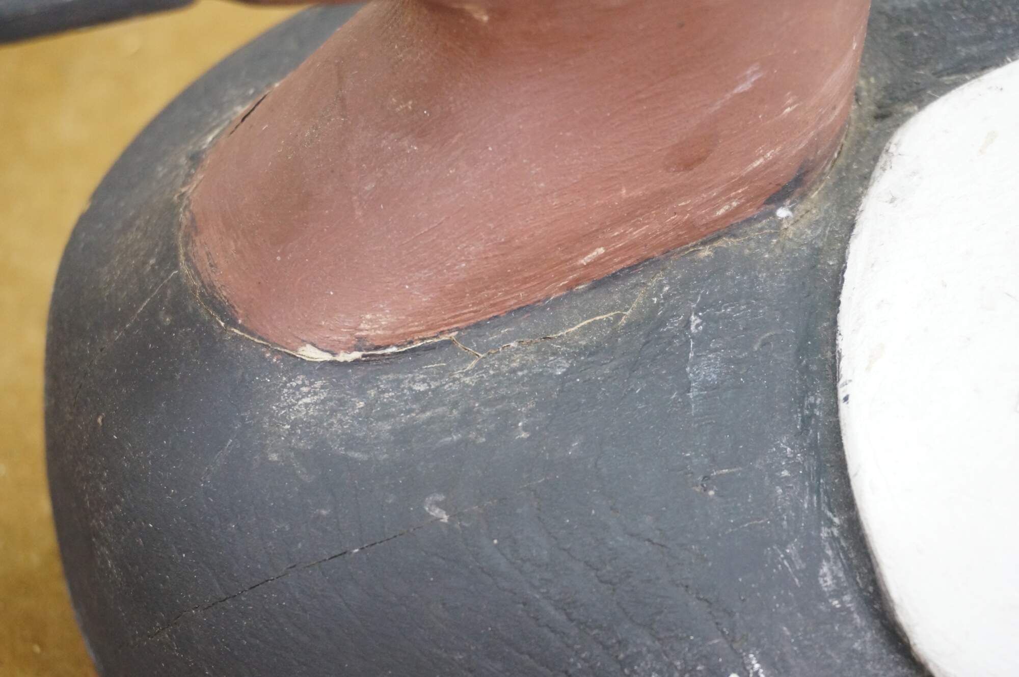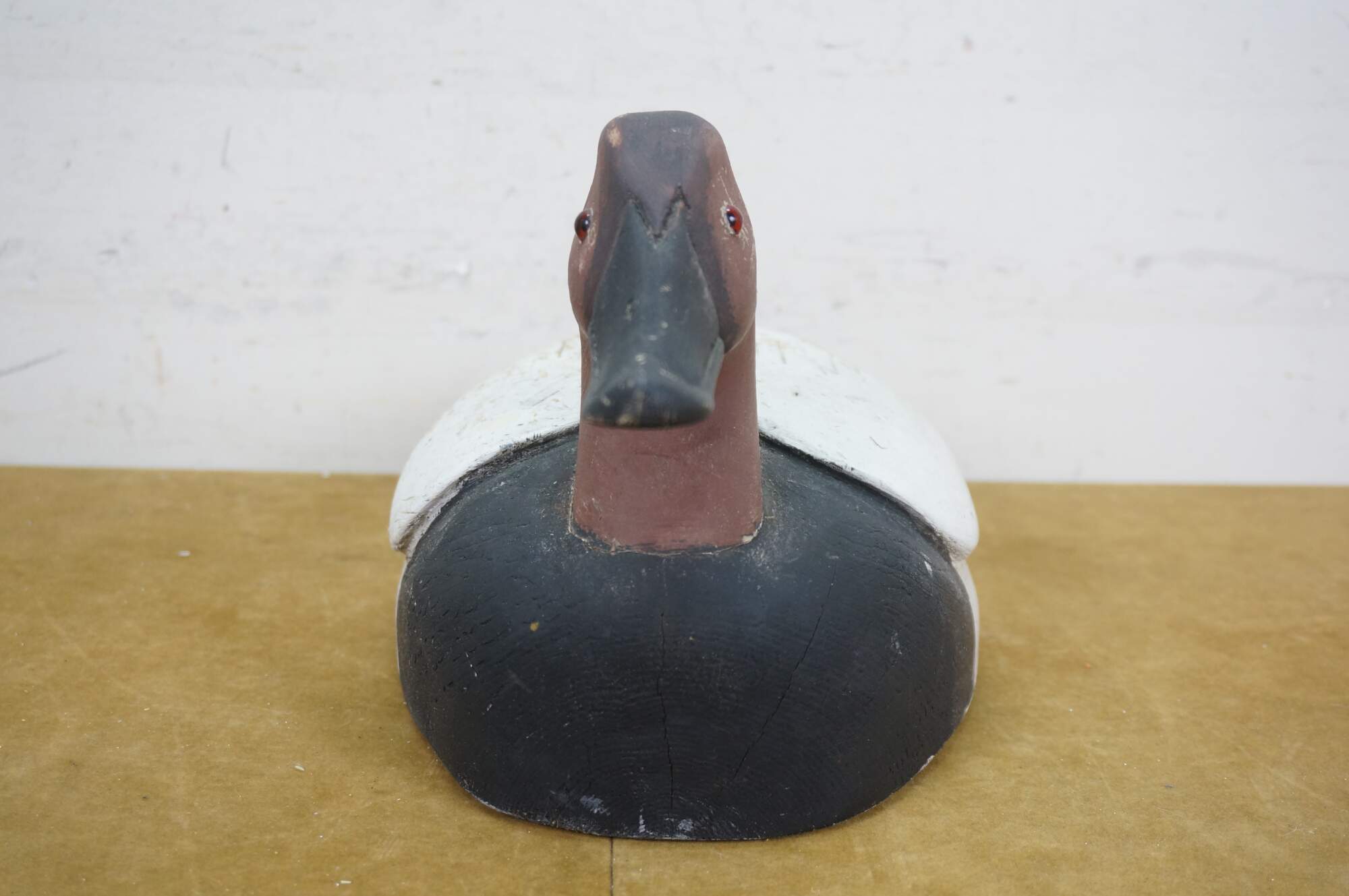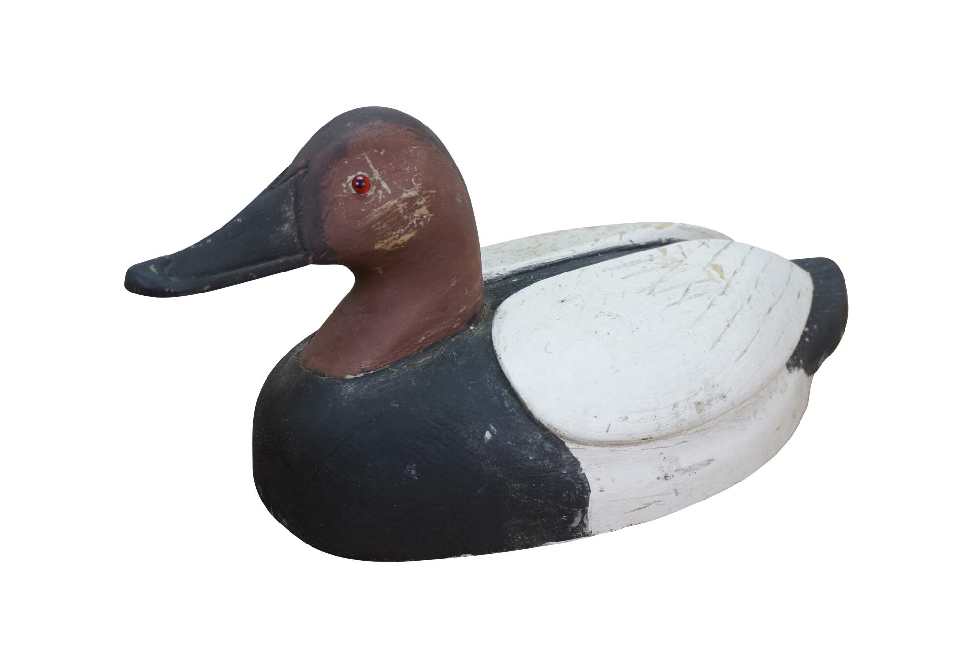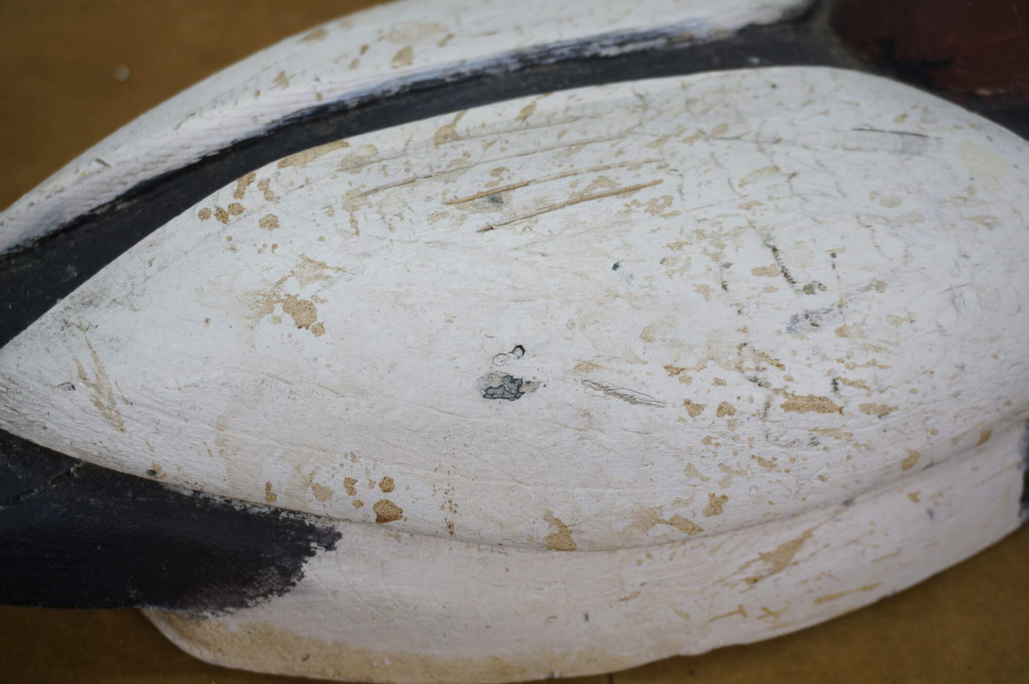 Large vintage mid century folk art redhead Canvasback duck decoy by Buck, circa 1966.