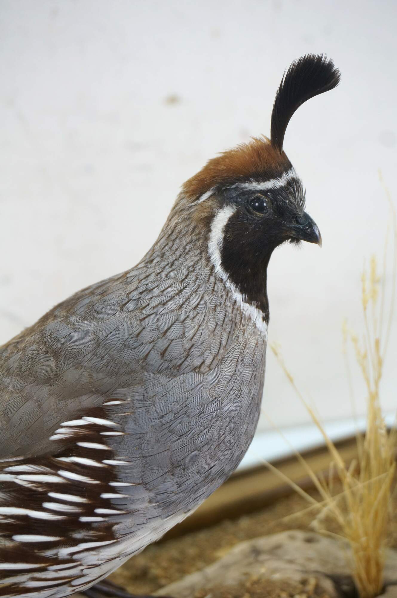 Gambel's quail is a small ground-dwelling bird in the New World quail family. Gambel’s Quail are gregarious birds of the desert Southwest, where coveys gather along brushy washes and cactus-studded arroyos to feed. Males and females both sport a bobbing black topknot of feathers. The male’s prominent black belly patch distinguishes it from the similar California Quail. This ground-hugging desert dweller would rather run than fly look for these tubby birds running between cover or posting a lookout on low shrubs.