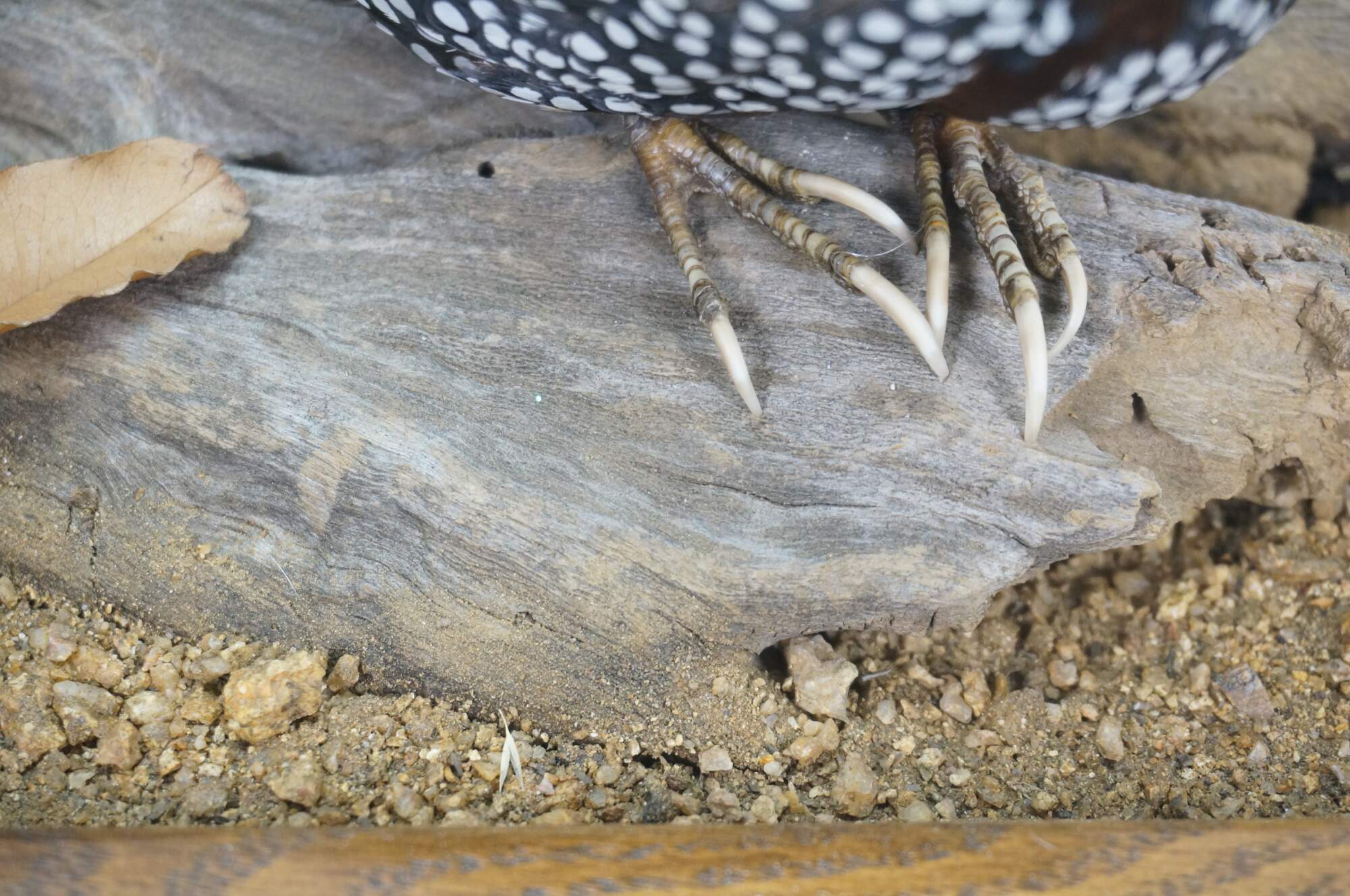 Montezuma Quail have long, sickle-shaped claws on each toe that are about half again the length of the foot. It uses these claws for digging up bulbs, tubers, and invertebrates. Montezuma Quail’s genus, Cyrtonyx, comes from the Greek words for “bent” (kurtus) and “claw” (onux).