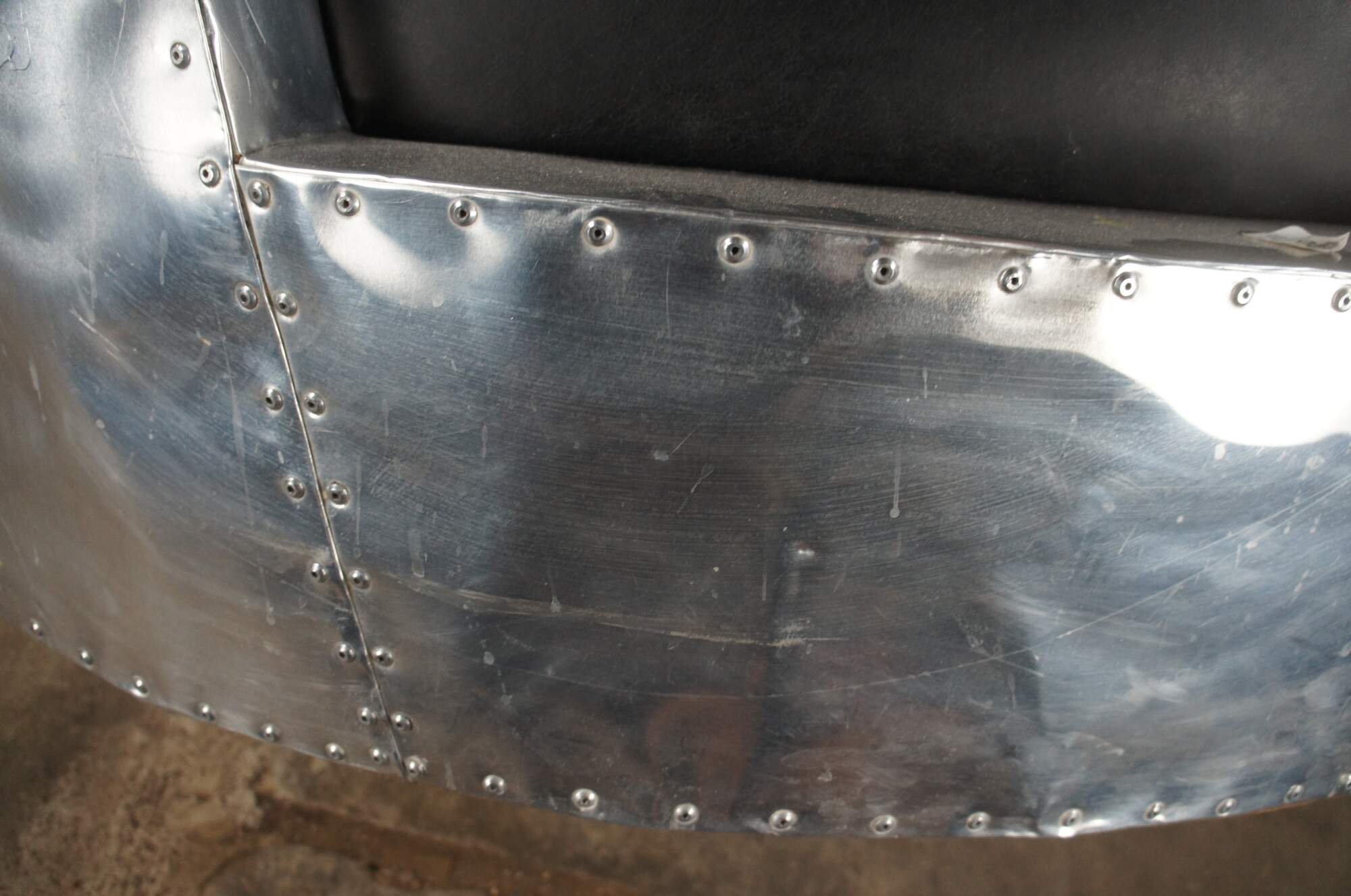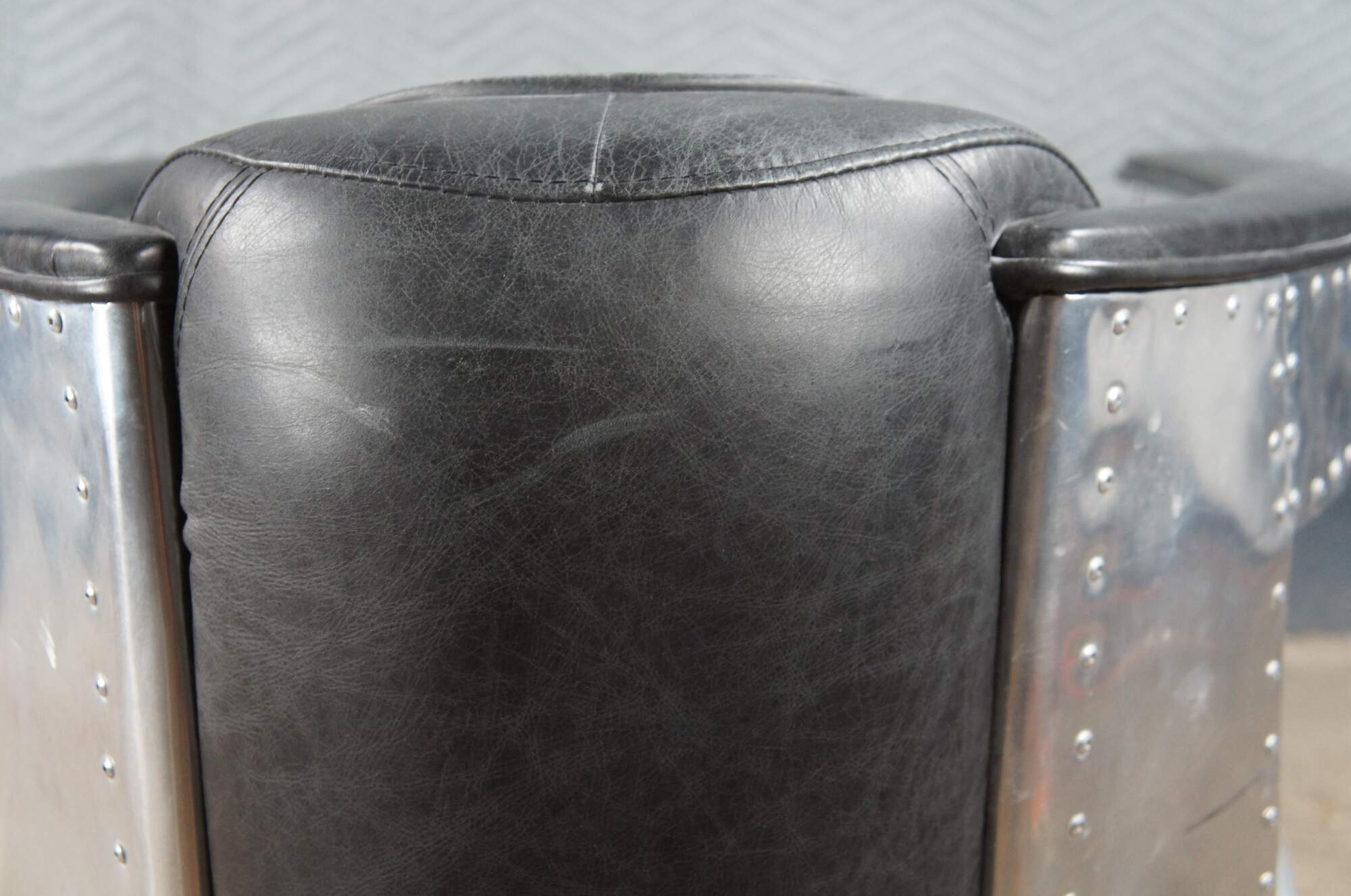 Good condition, distressing from age and use, wear and marking to leather and chrome.