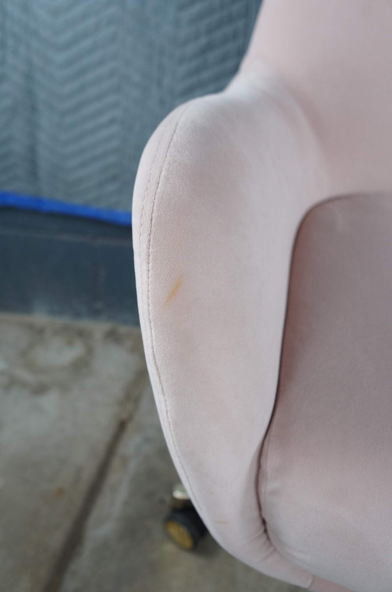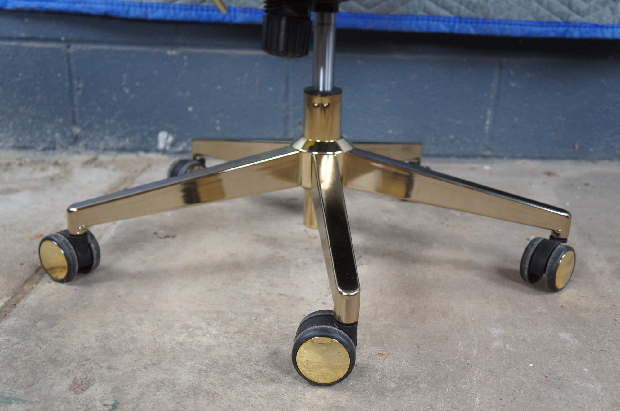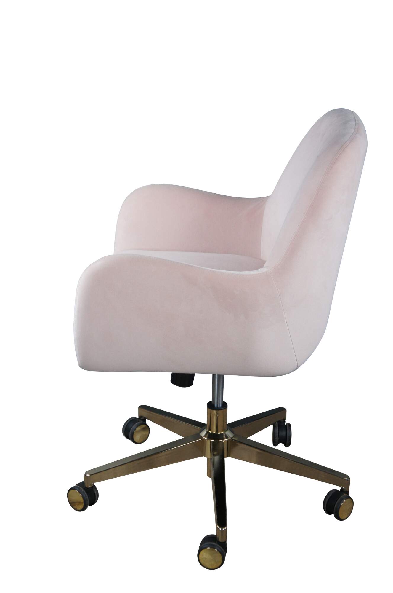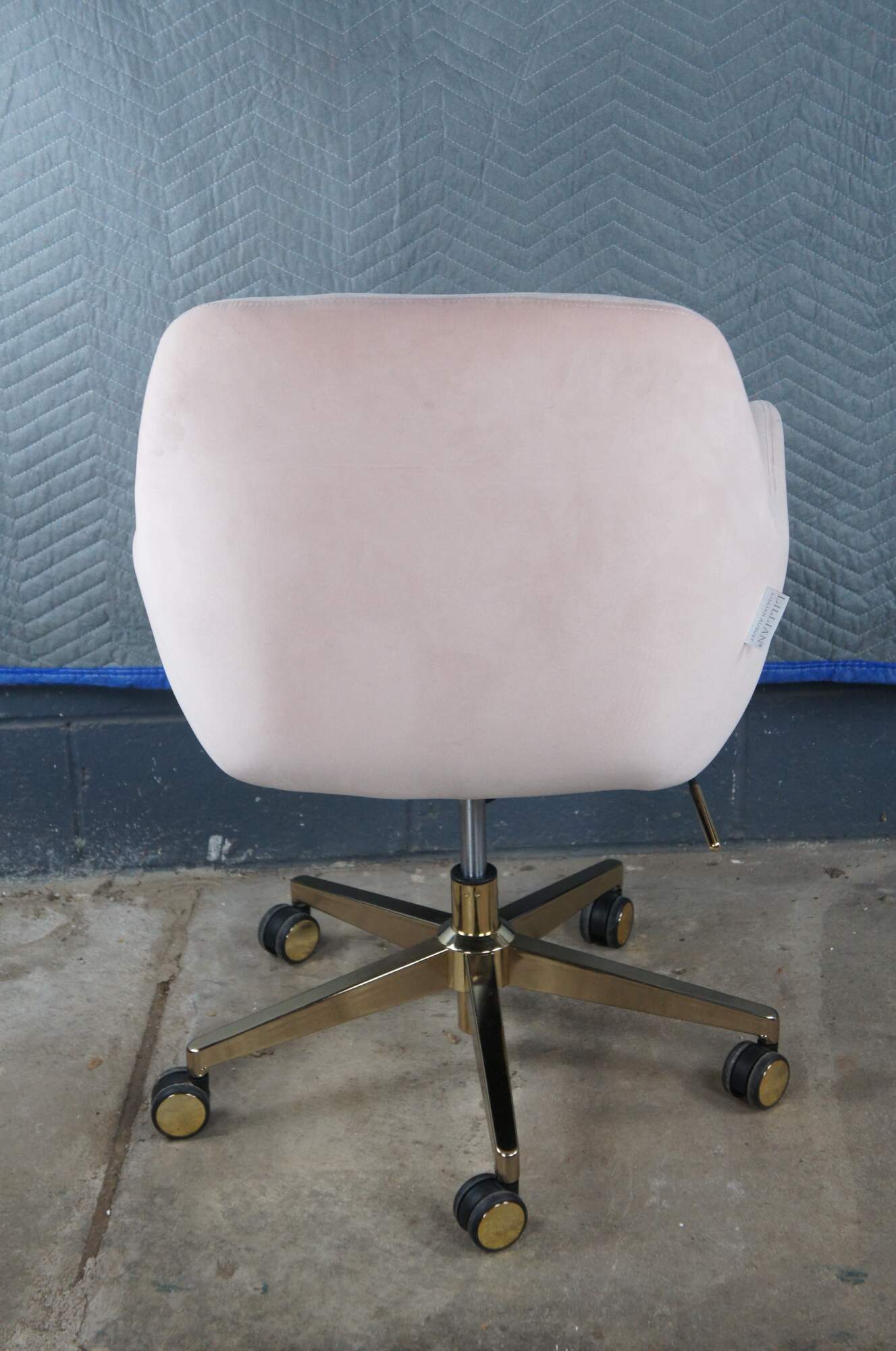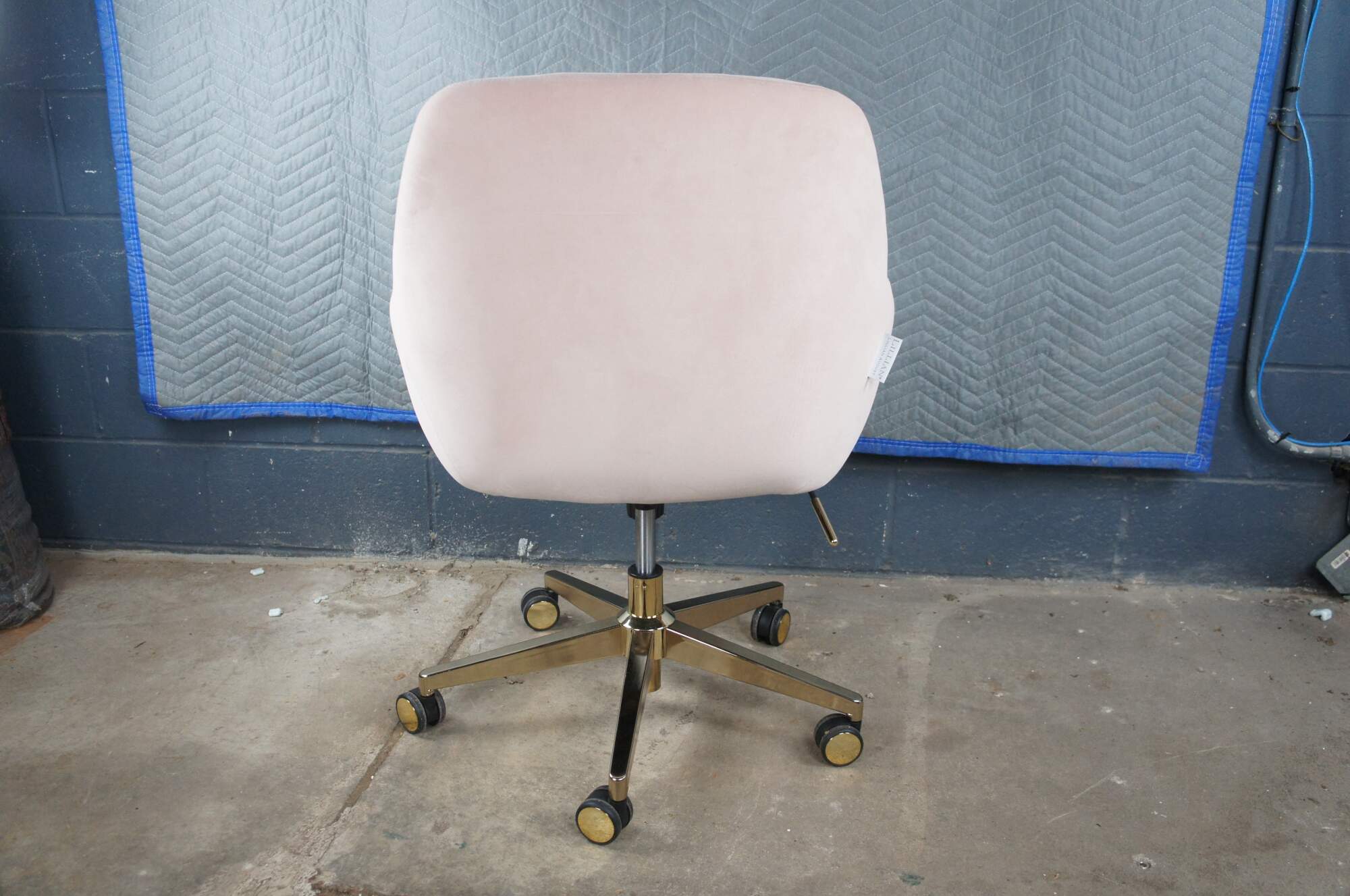 Vintage pair of Elyse Home Office Chairs. These luxurious office chairs are upholstered in rich velvet fabric, making them a chic and elegant addition to any home or office. The one-touch pneumatic height adjustment and tilting function make it easy to customize your seating position for maximum comfort. Exceeding rigorous BIFMA testing standards, the rolling base with a shiny gold metal finish and dual-wheel mobility casters make it easy to move around the workspace.