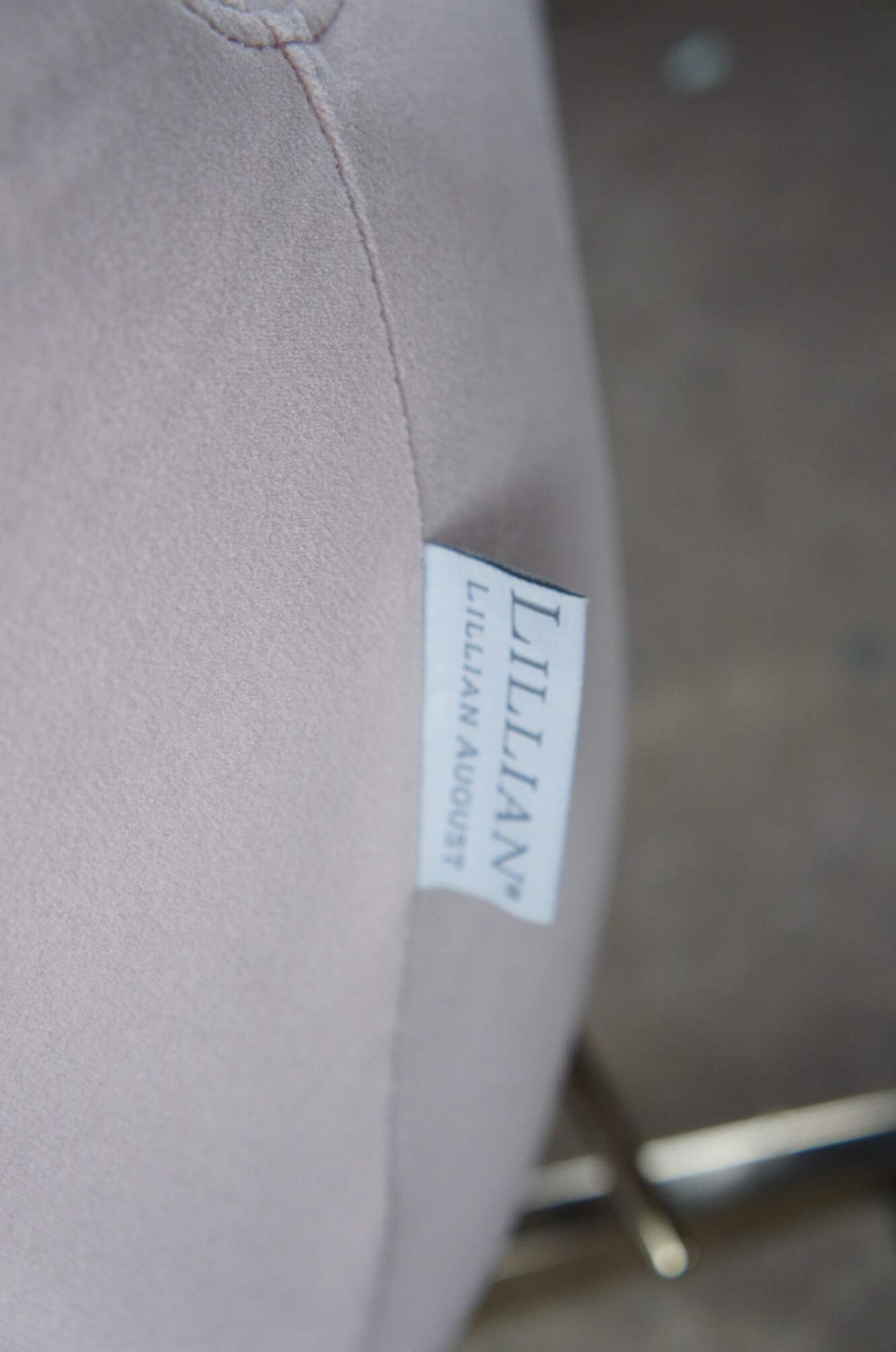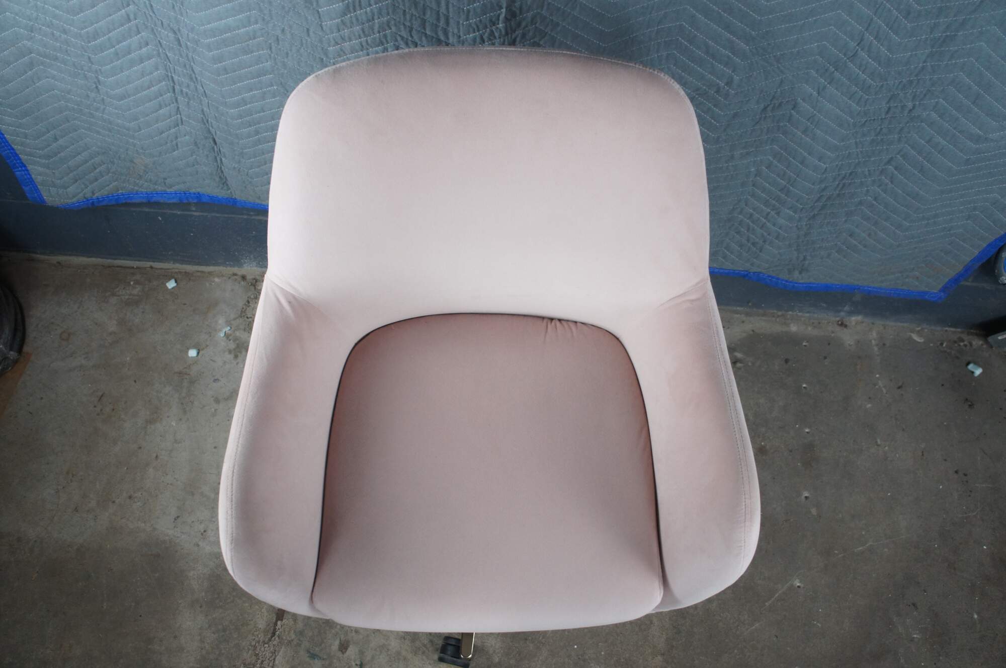 Pair of two Lillian August Elyse pink velvet swivel armchairs.