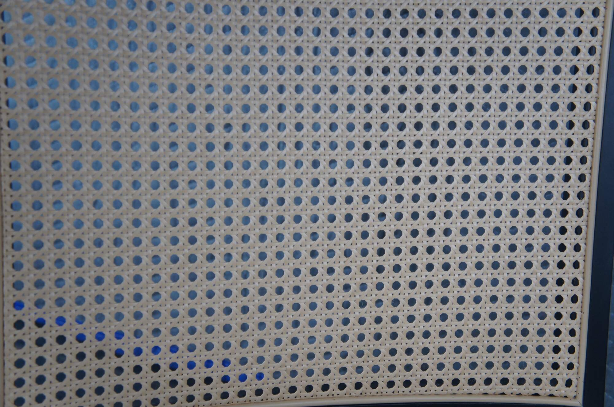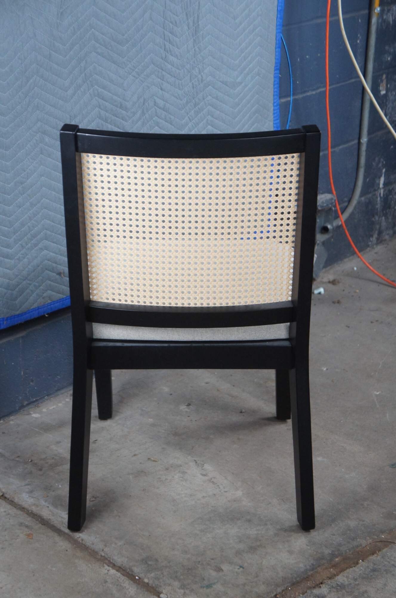 Pair of two Bayside Harrison dining side chairs featuring faux rattan caned back with black frames, by Whalen.