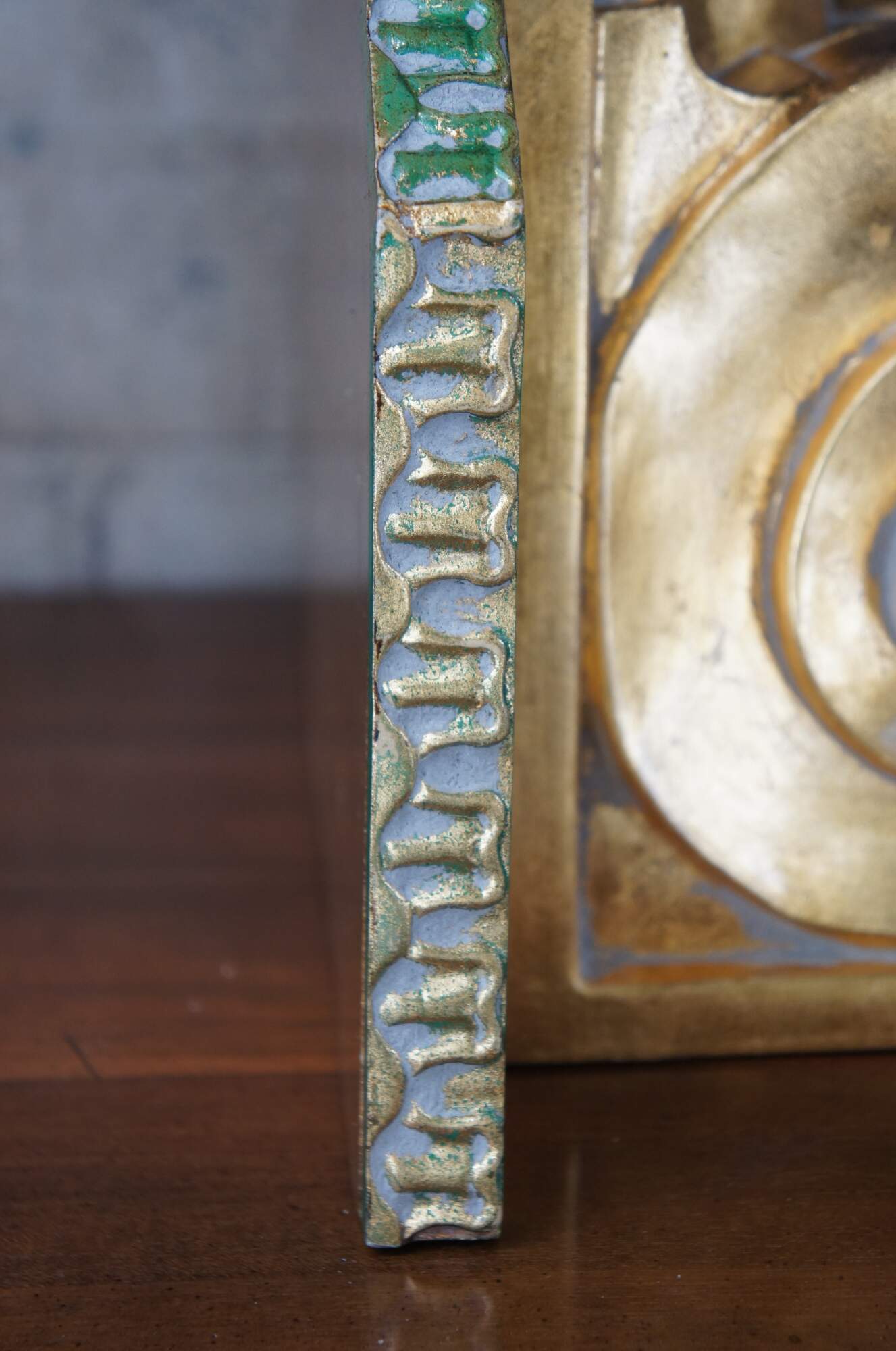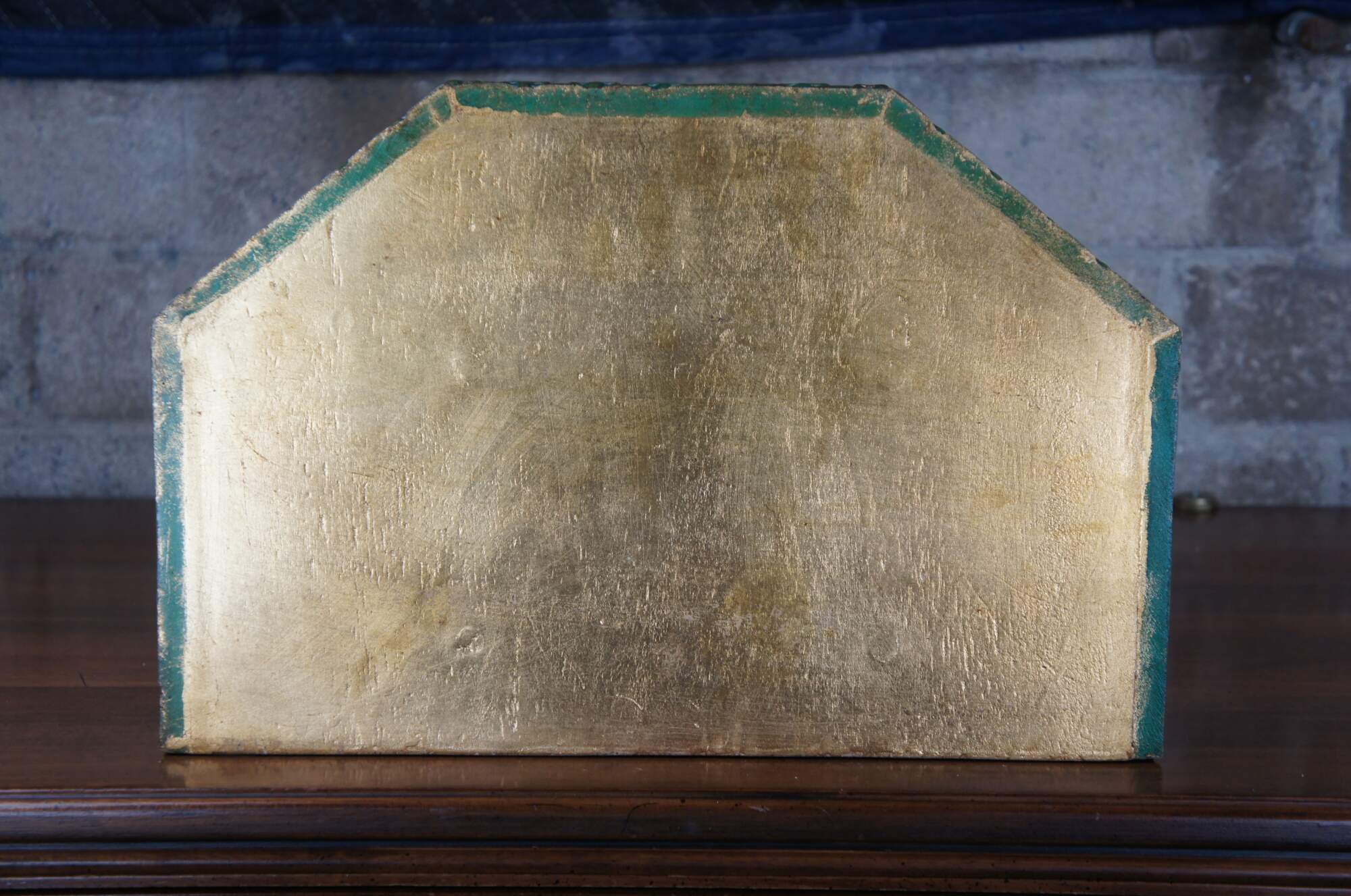 Early 21st century Baroque Style gold leaf designed gilt composite wall bracket / sconce / shelf, featuring a scrolled design accented with acanthus leaves and a pentagonal / clipped corner top edged in green.