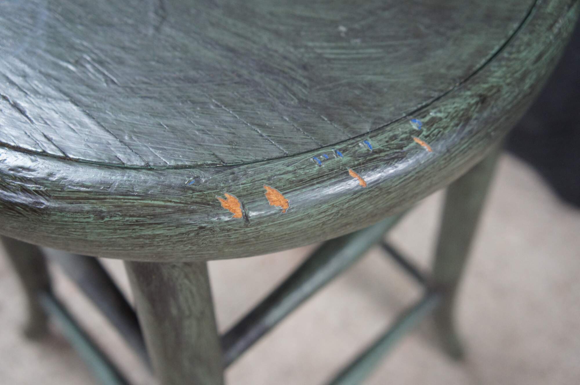 Thonet Bentwood Stool #216, circa 1920. Features a green painted finish, round seat and bentwood legs connected by spindled stretchers.