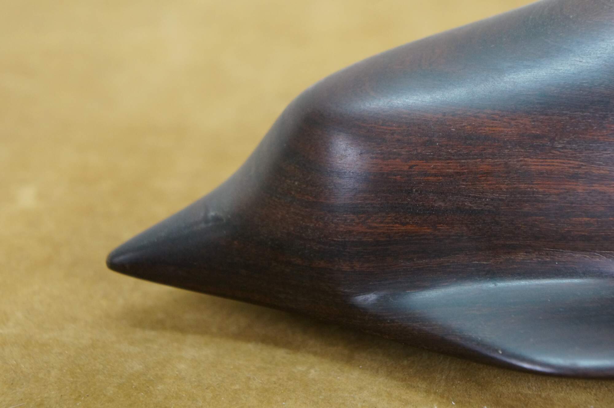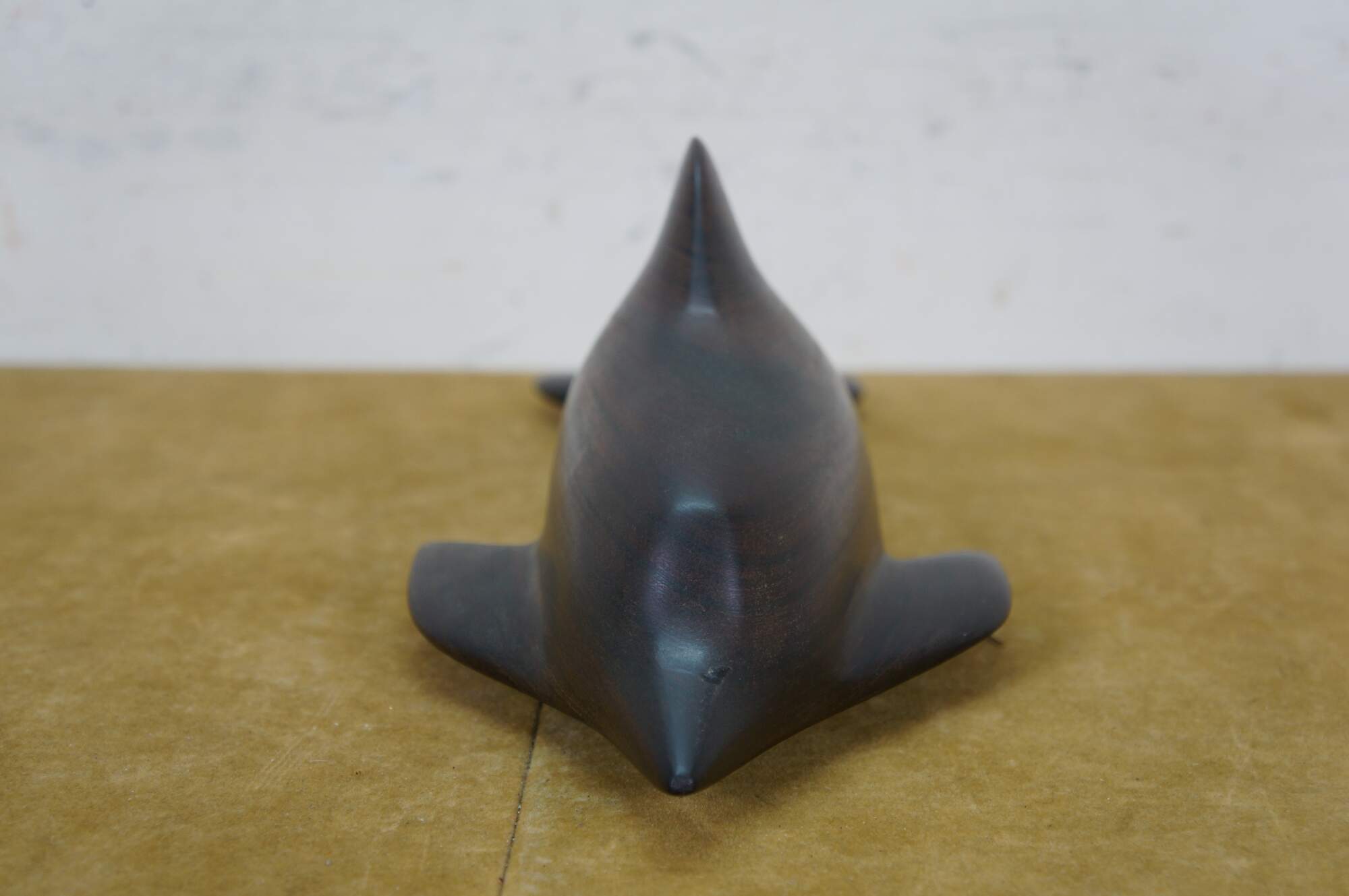 Large vintage hand carved ironwood figurine / sculpture / paperweight in the shape of a dolphin by Francisca Romero. Handmade by the Seri Indians of Sonora, Mexico.