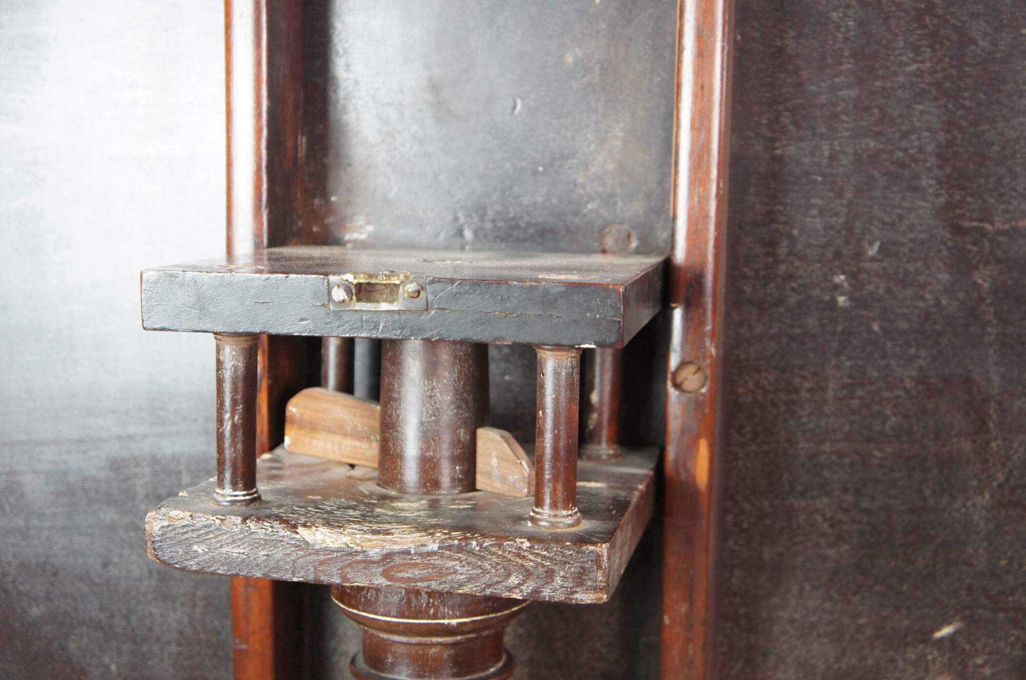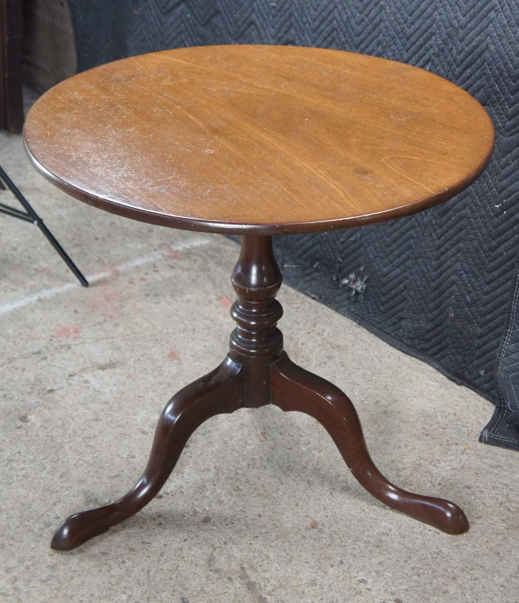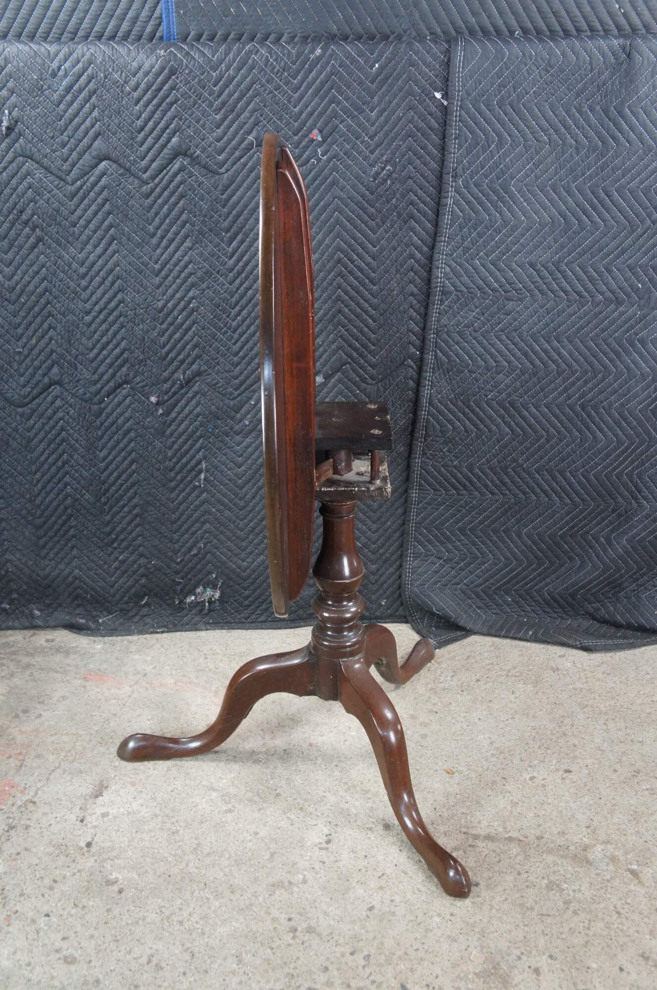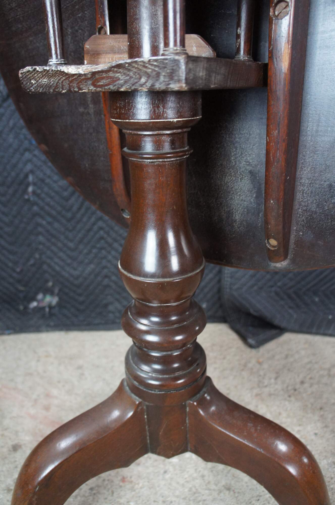 Good Antique Condition; General wear from use and age. Finish wear and marking to the table top. Past split between tripod legs. Structurally Solid
