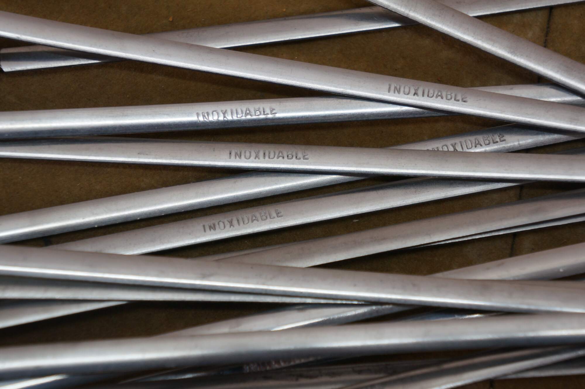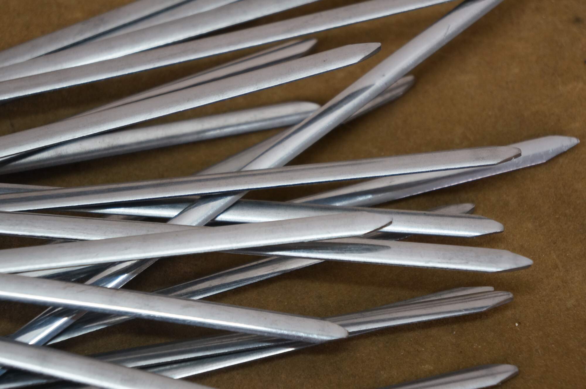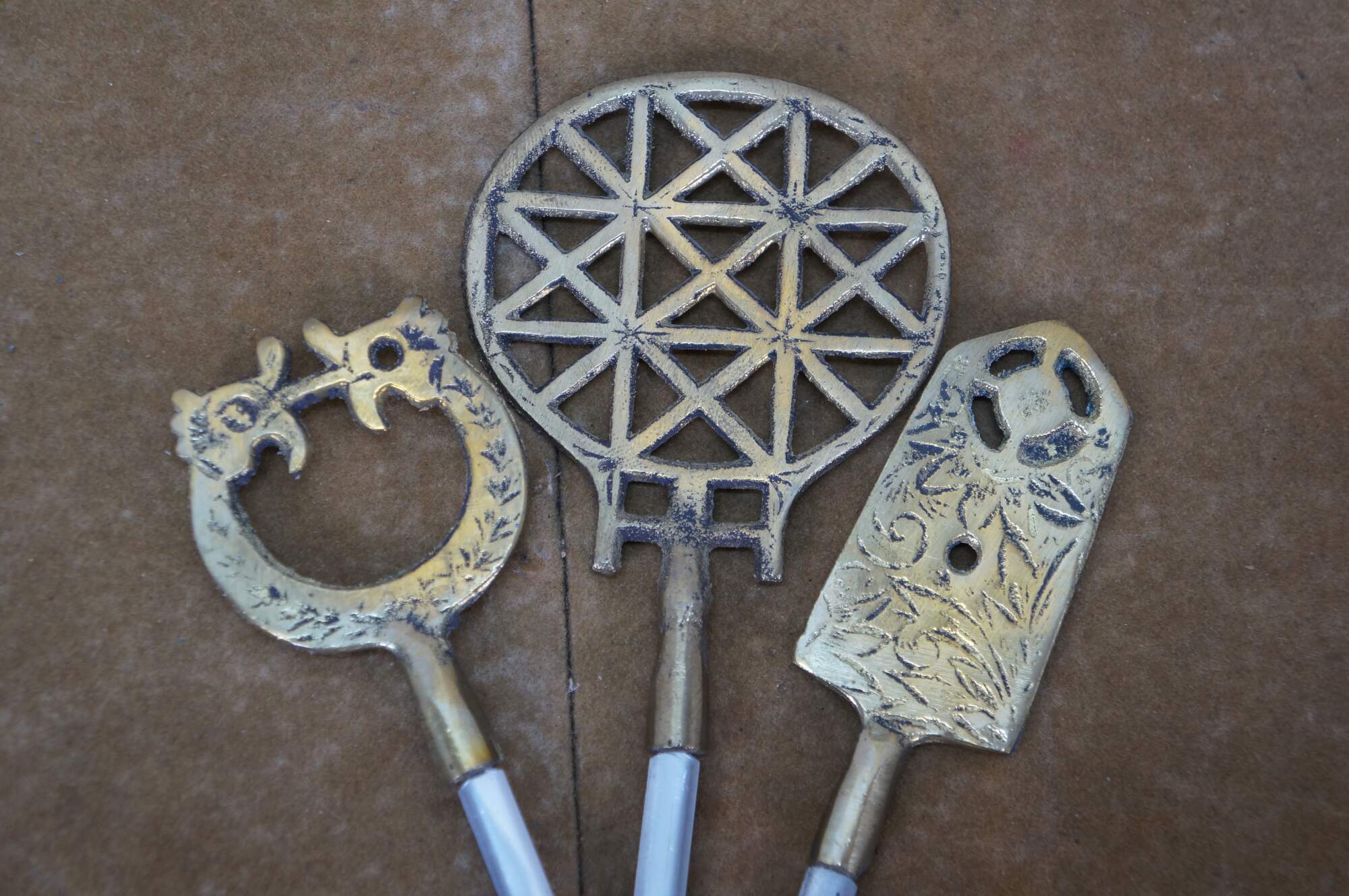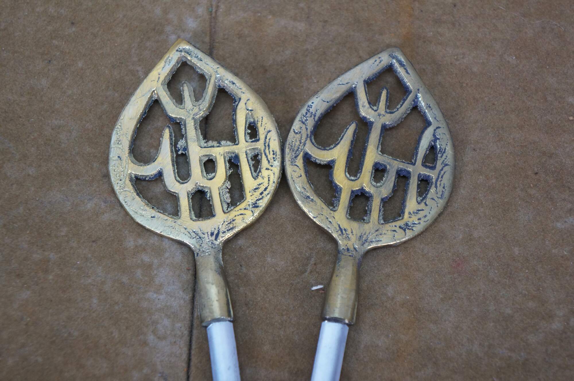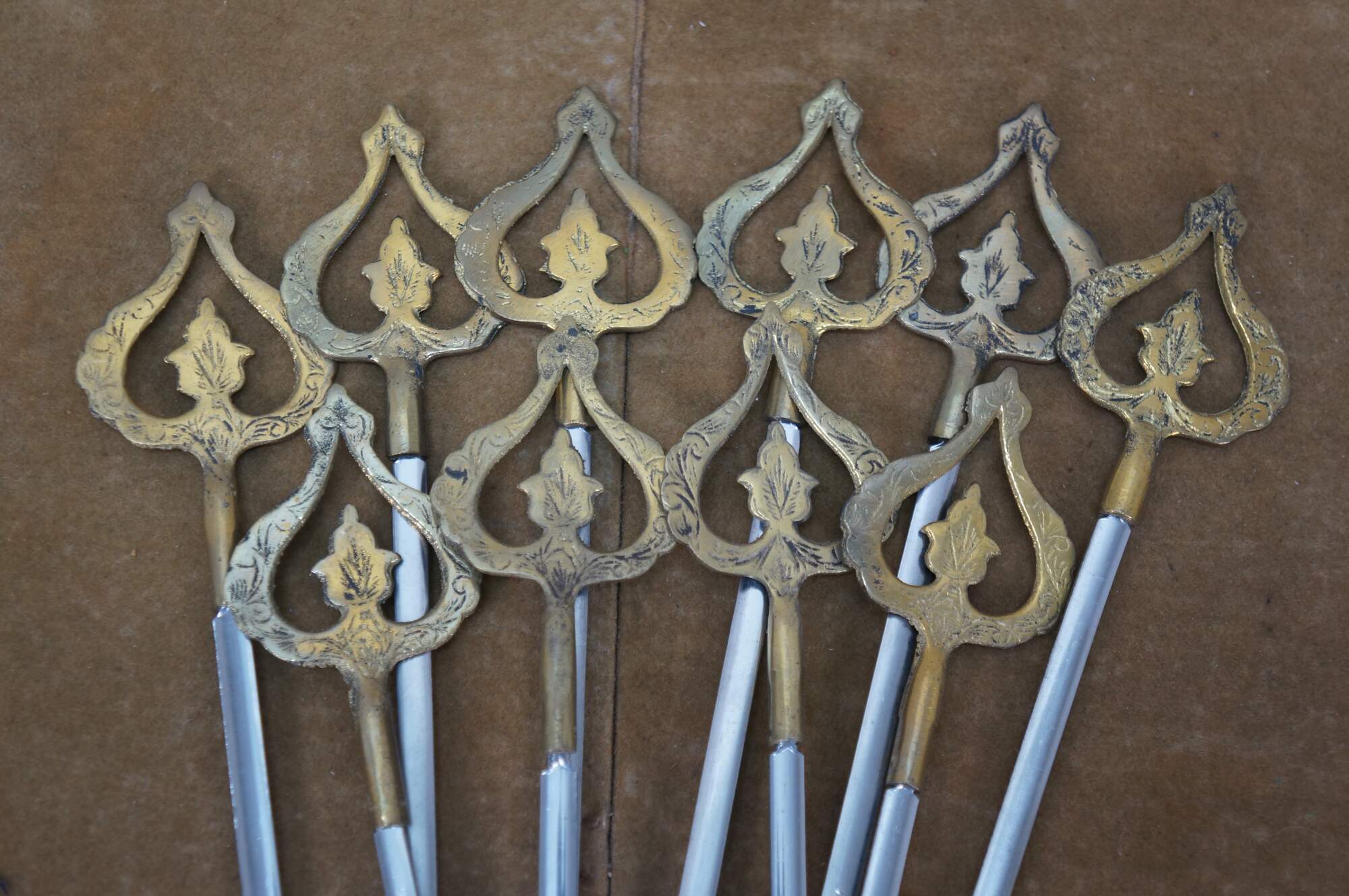 Set of 24 late 20th century Turkish / Greek brass and stainless steel shish kabab skewers topped with a mixture of designs.