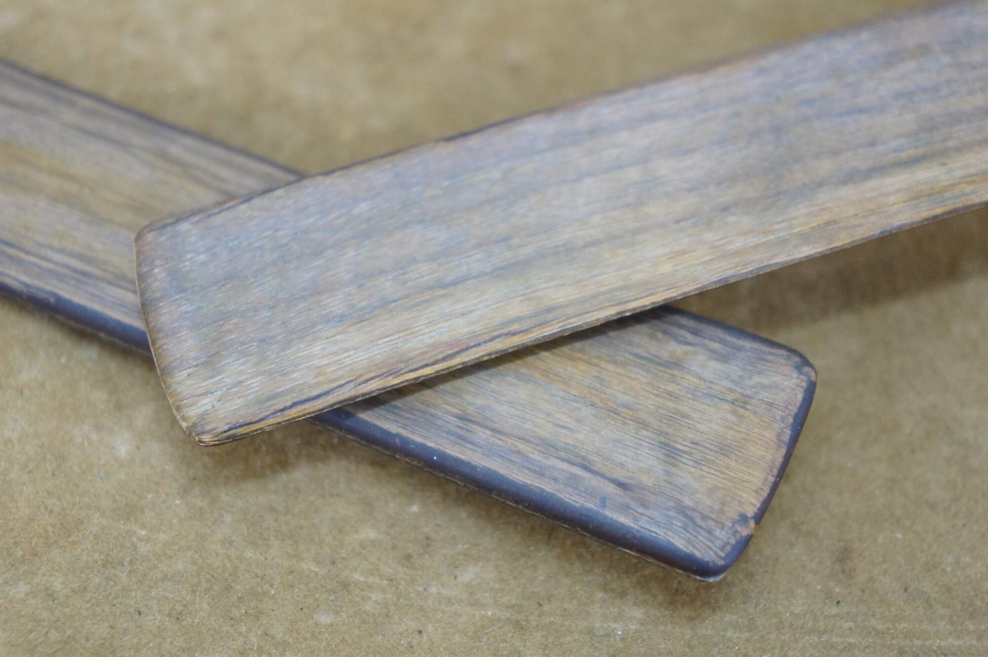 Vintage 20th century Genuine American Walnut salad tossers - one spoon and one three prong spork.