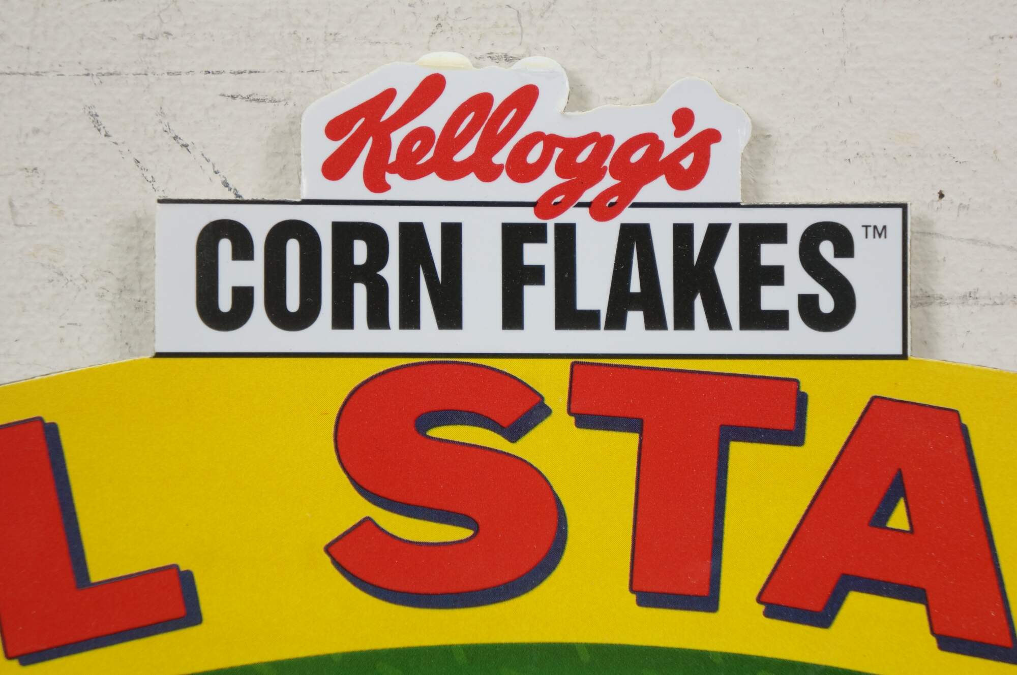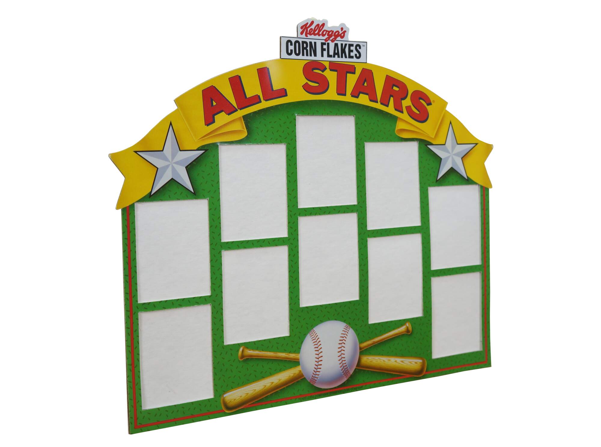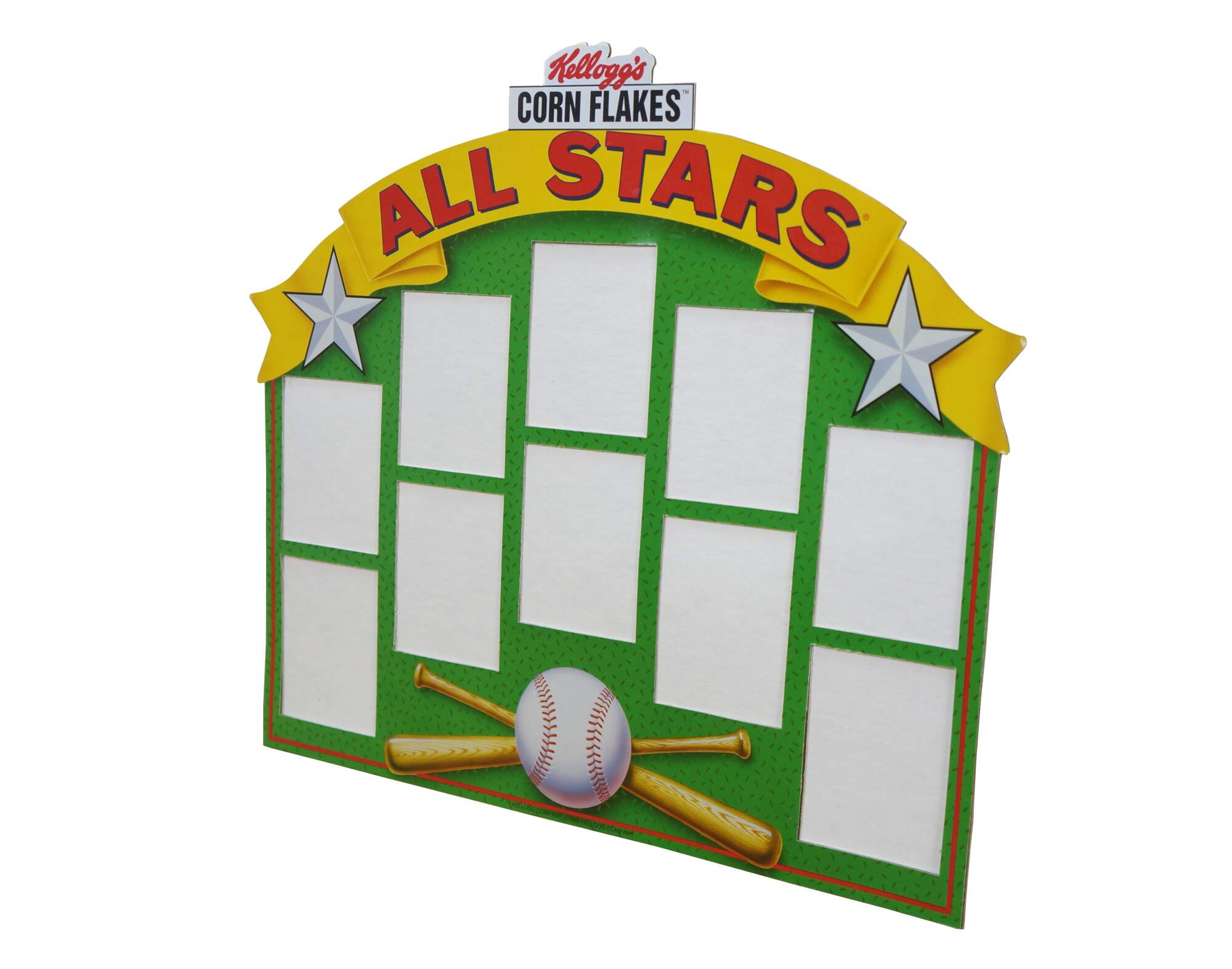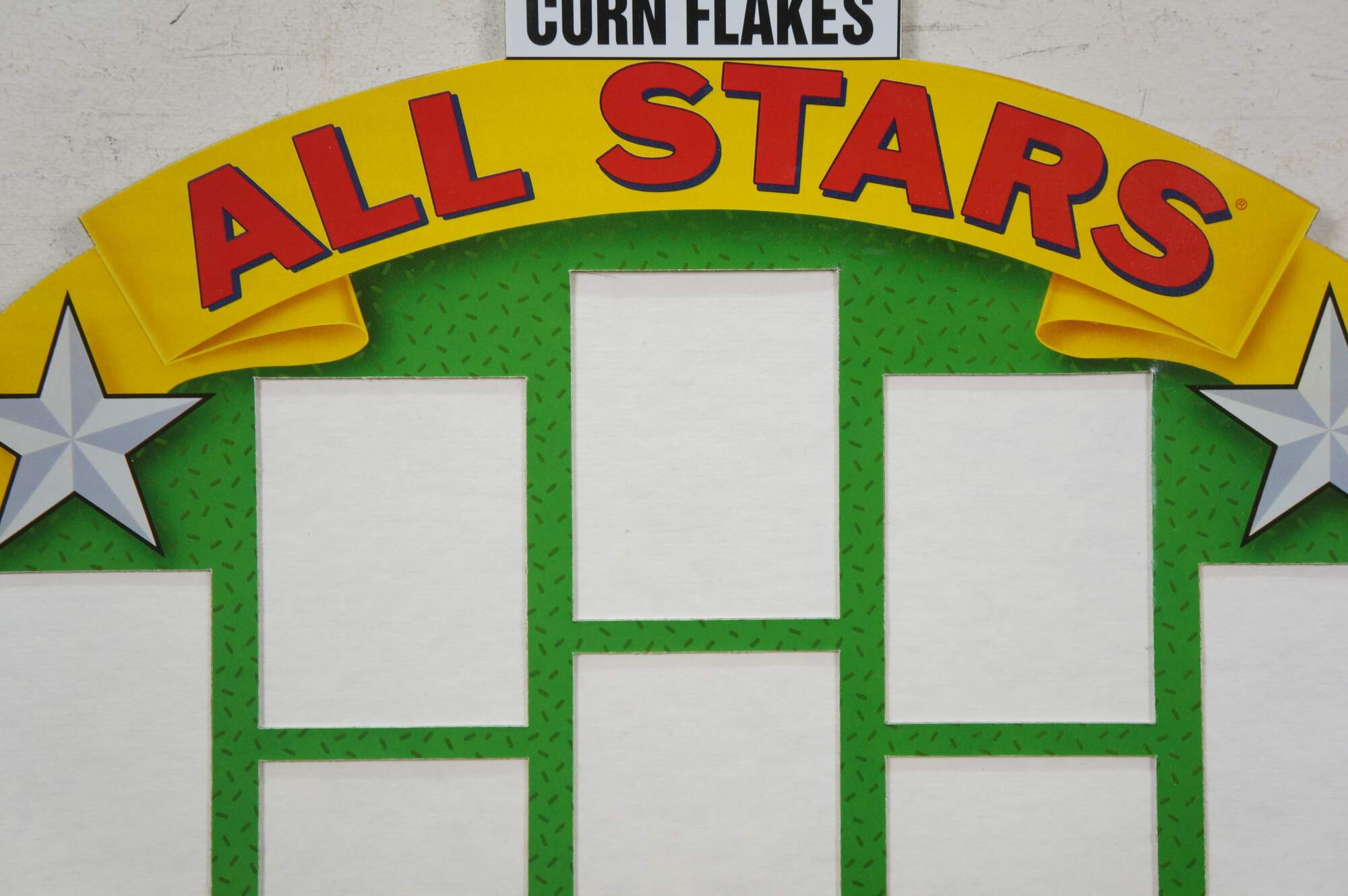 Vintage 1992 Kellogg's Corn Flakes All Stars un-used cardboard baseball card display.