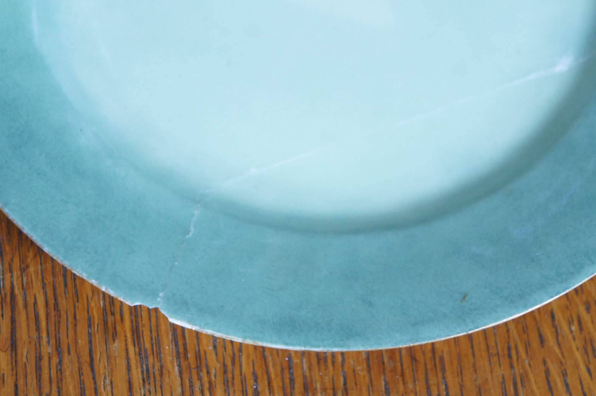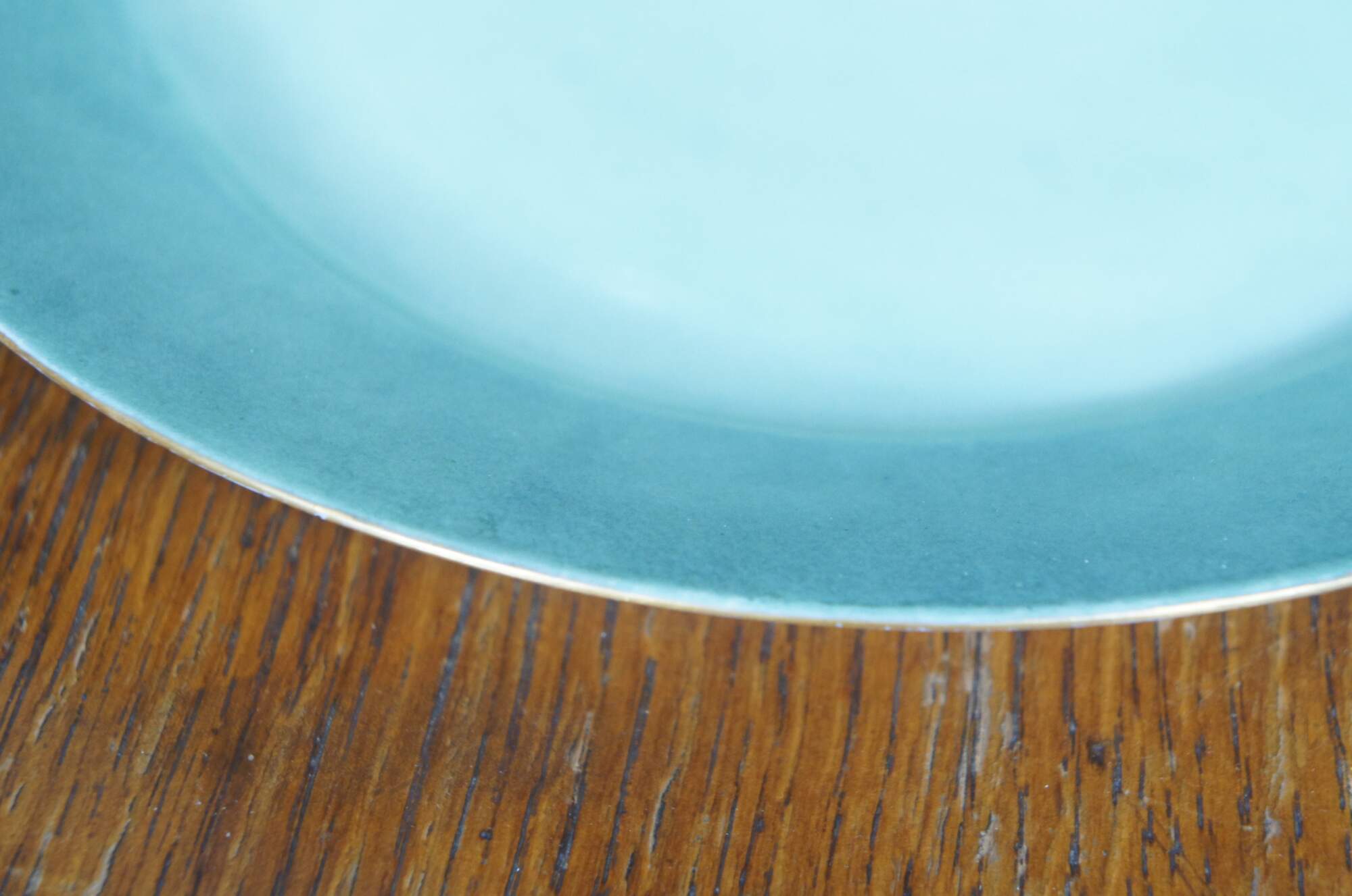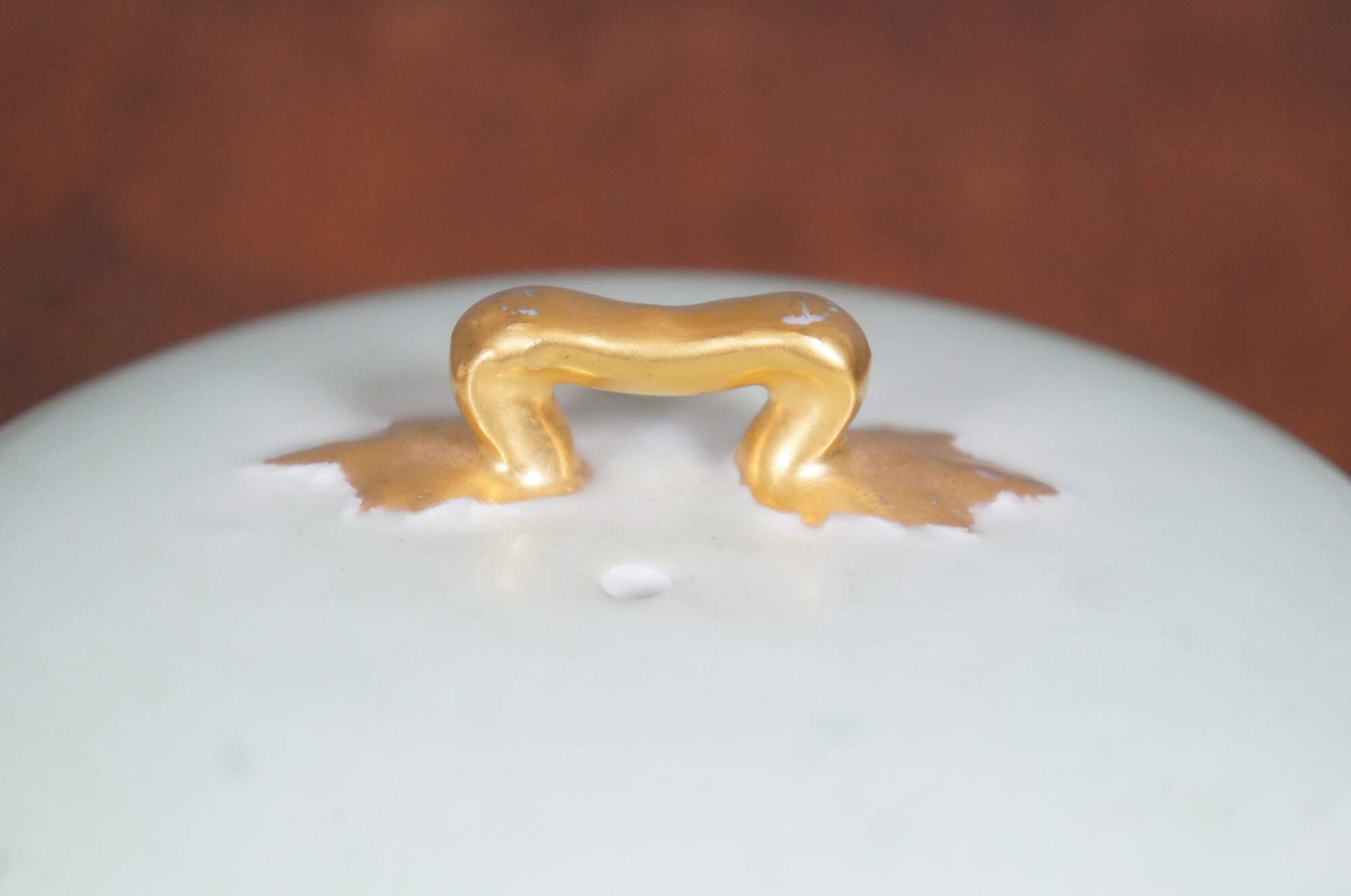 Austrian Victorian Era porcelain butter / cheese dish including underplate and dome hand painted in pale green with clusters of red poppies and small gilt handle.