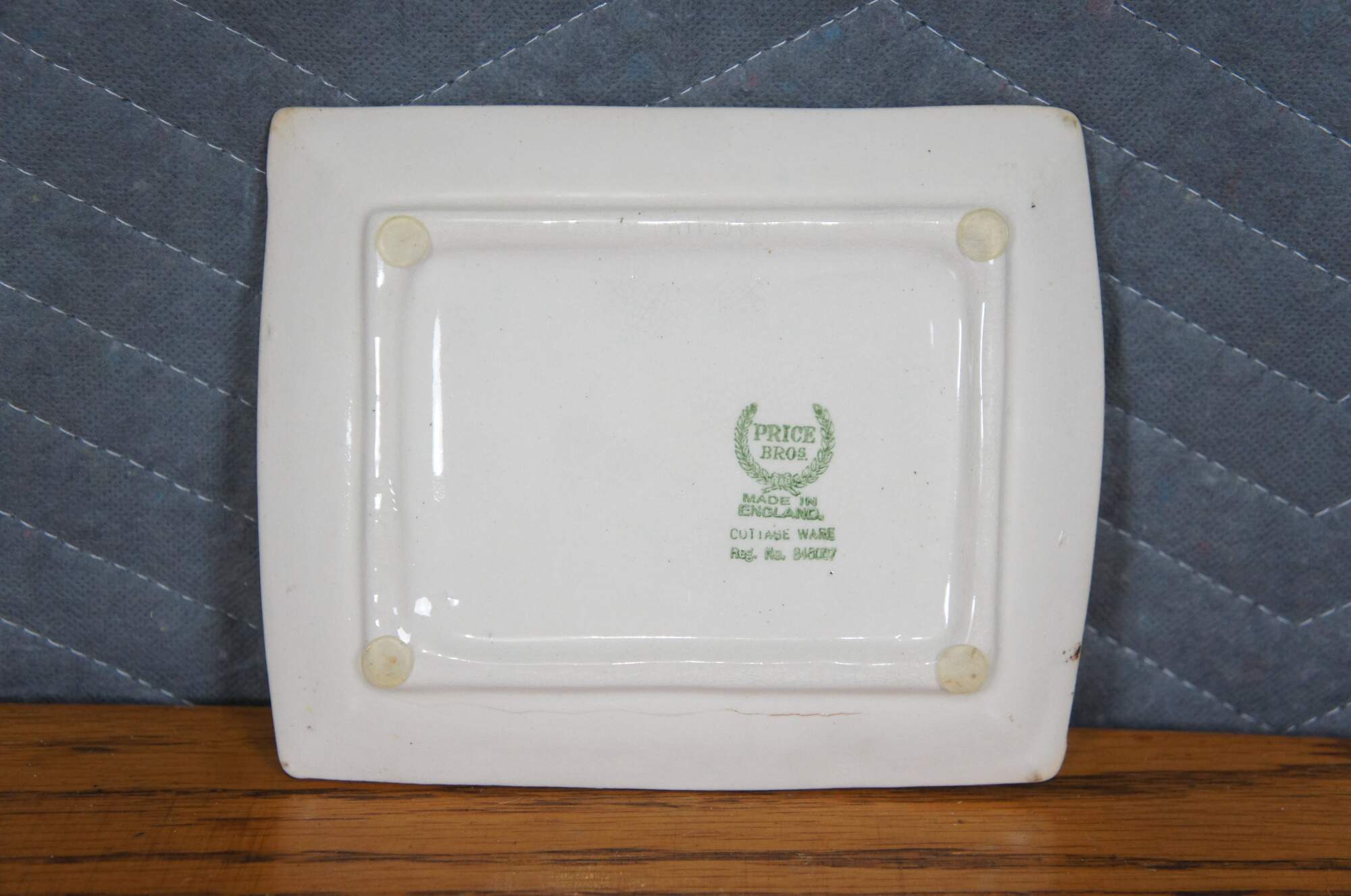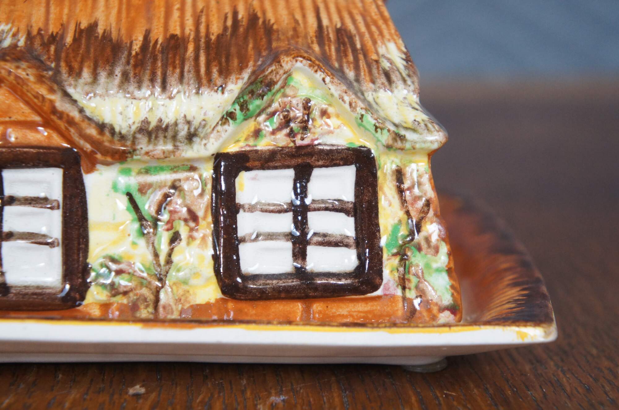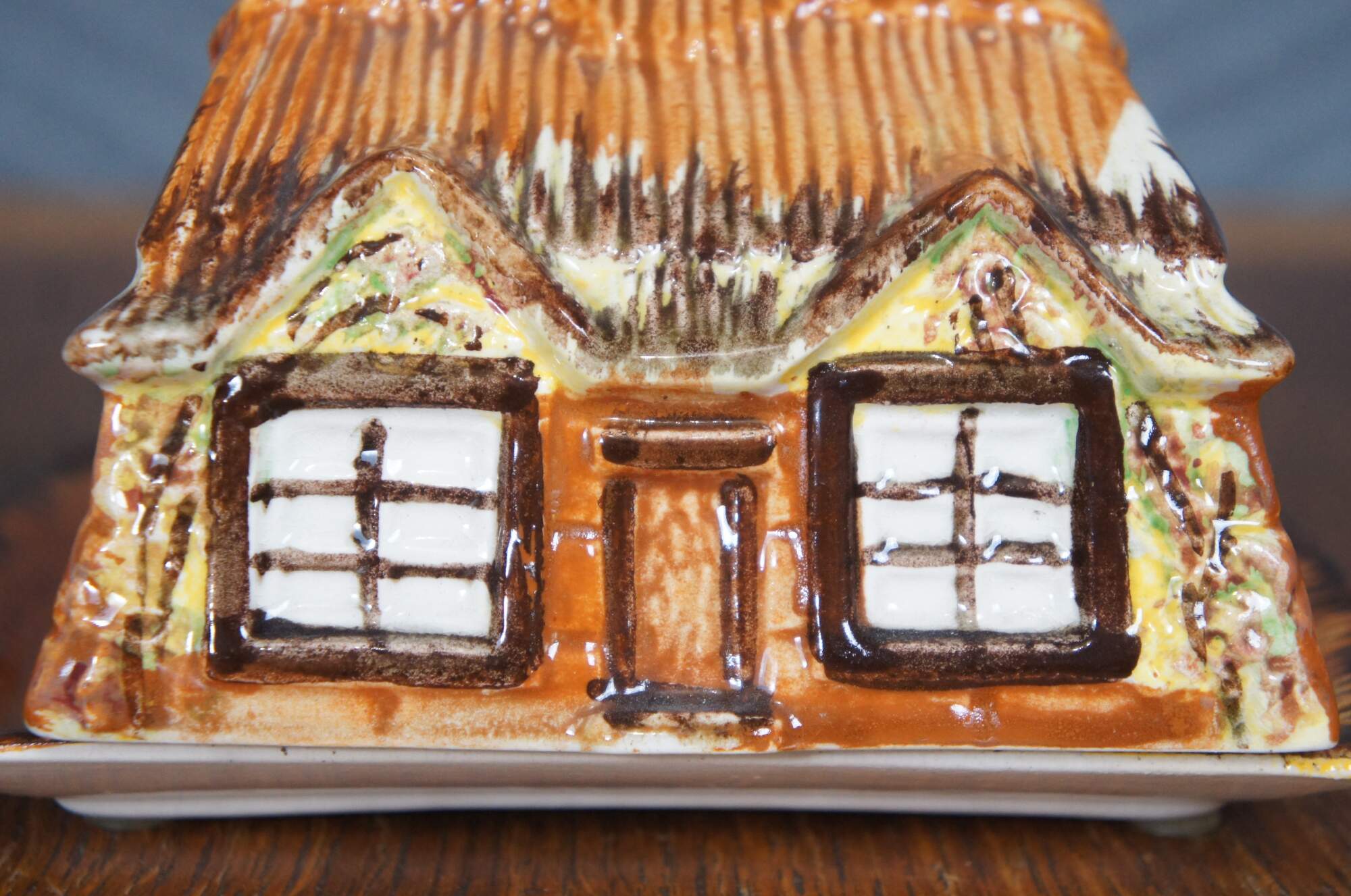 Mid 20th century Price Bros Cottage Ware porcelain butter / cheese dish. Rectangular underplate painted as if made of thatch with a thatched cottage shaped dome / lid. Made in England.