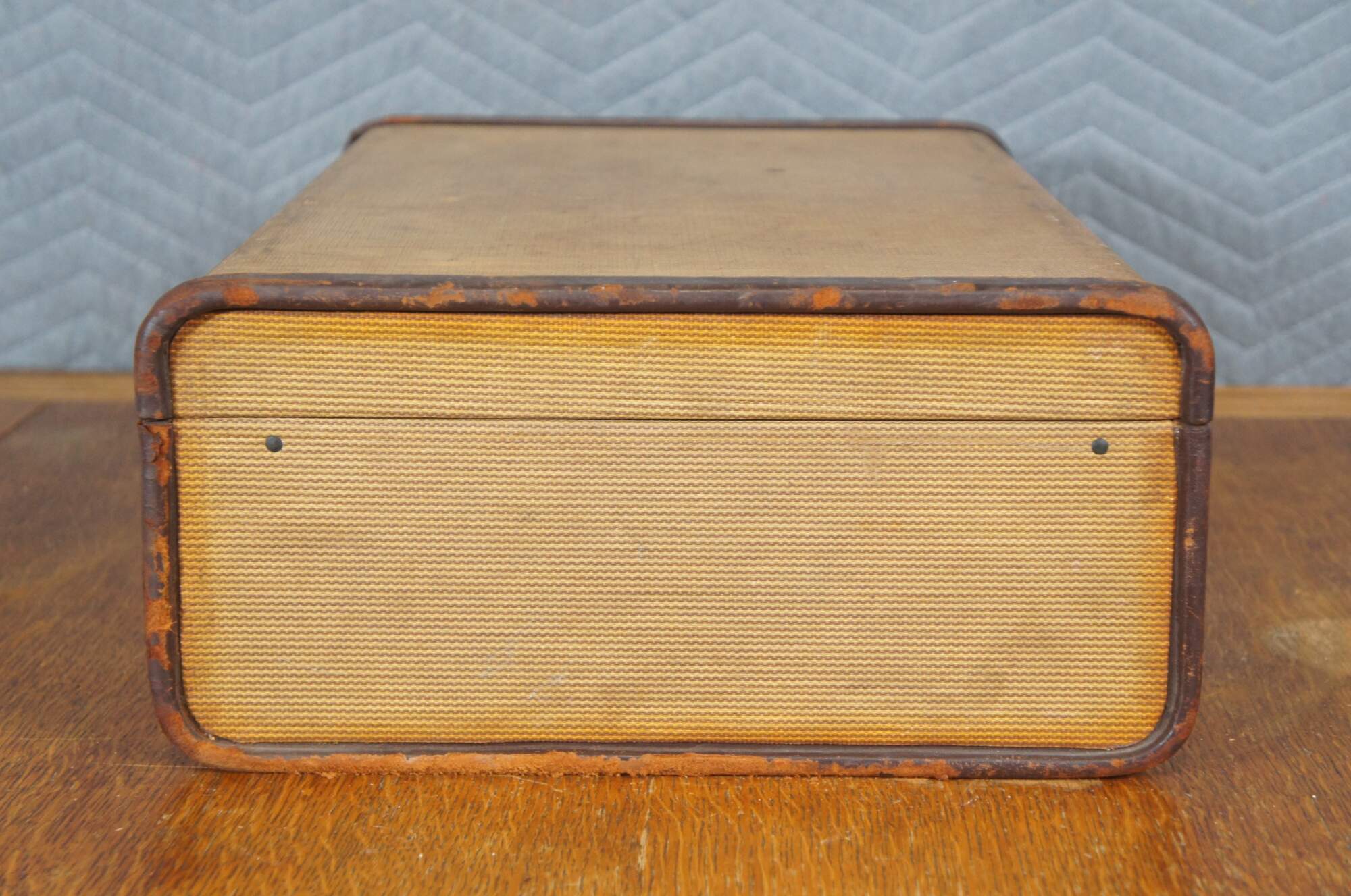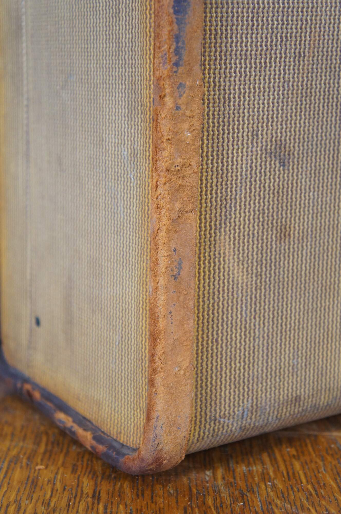 Fair, staining/discoloration throughout; slight musty odor inside; leather loss.