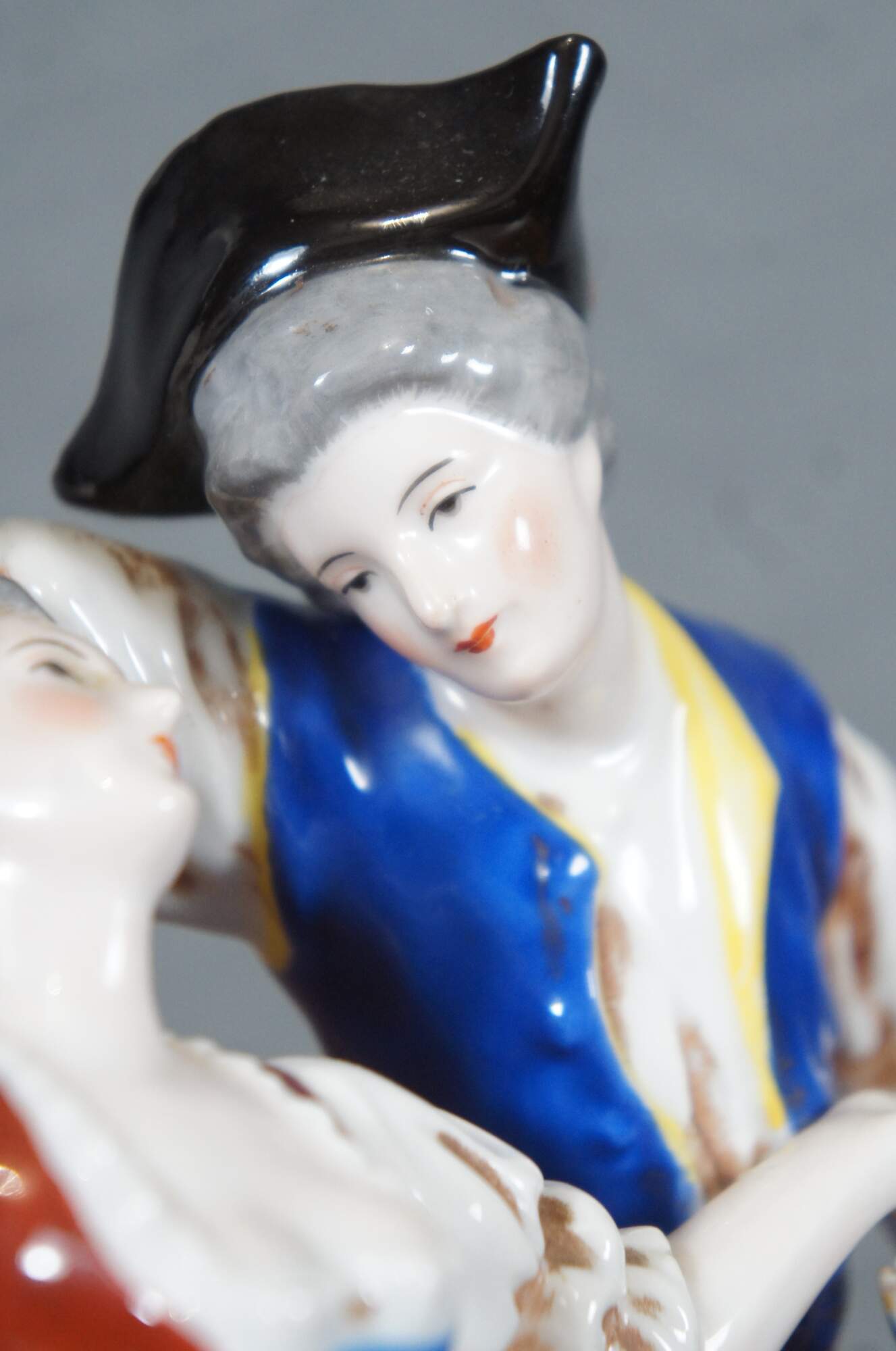 Circa mid 20th century LC Japan porcelain figurine in the shape of a colonial era couple dancing.