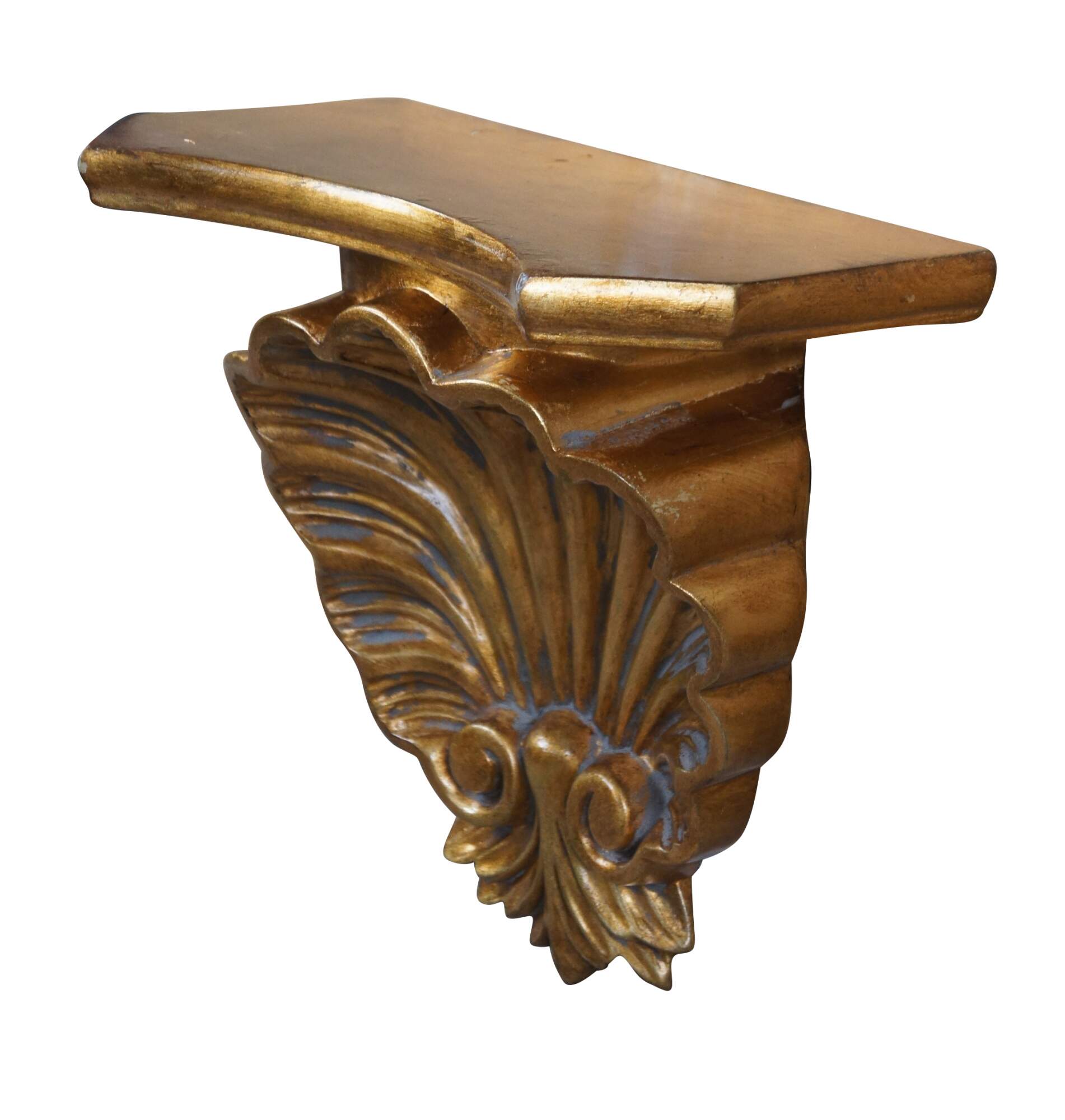 Early 21st century gilt composite wall brackets / sconces / shelves, featuring a scalloped front over a shaped shelf. Perfect for display of sculptures or vases.