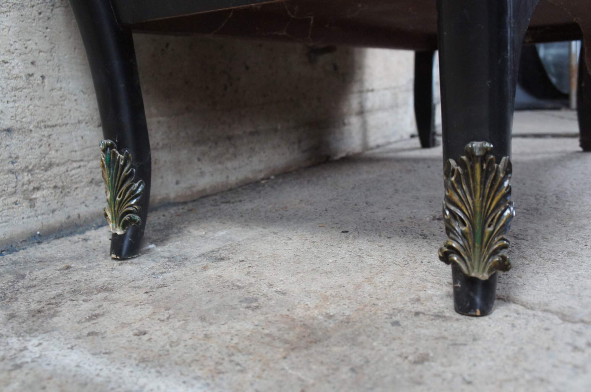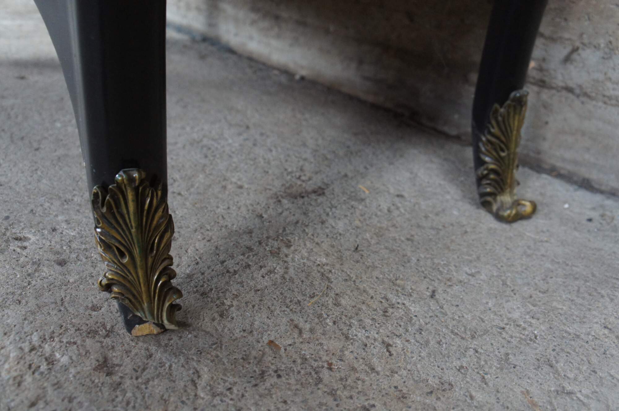 Fair; structurally solid. Some edge wear and marking to the top. Missing broken foliate along the feet