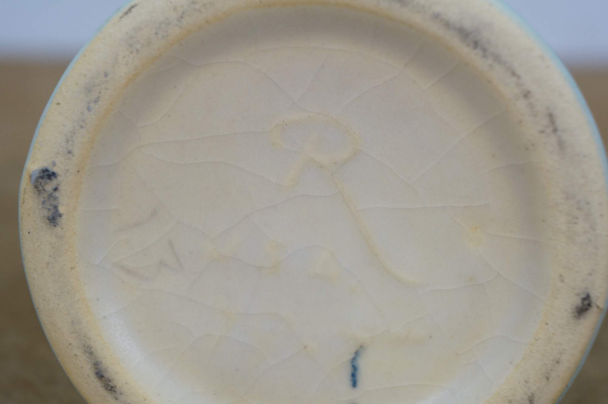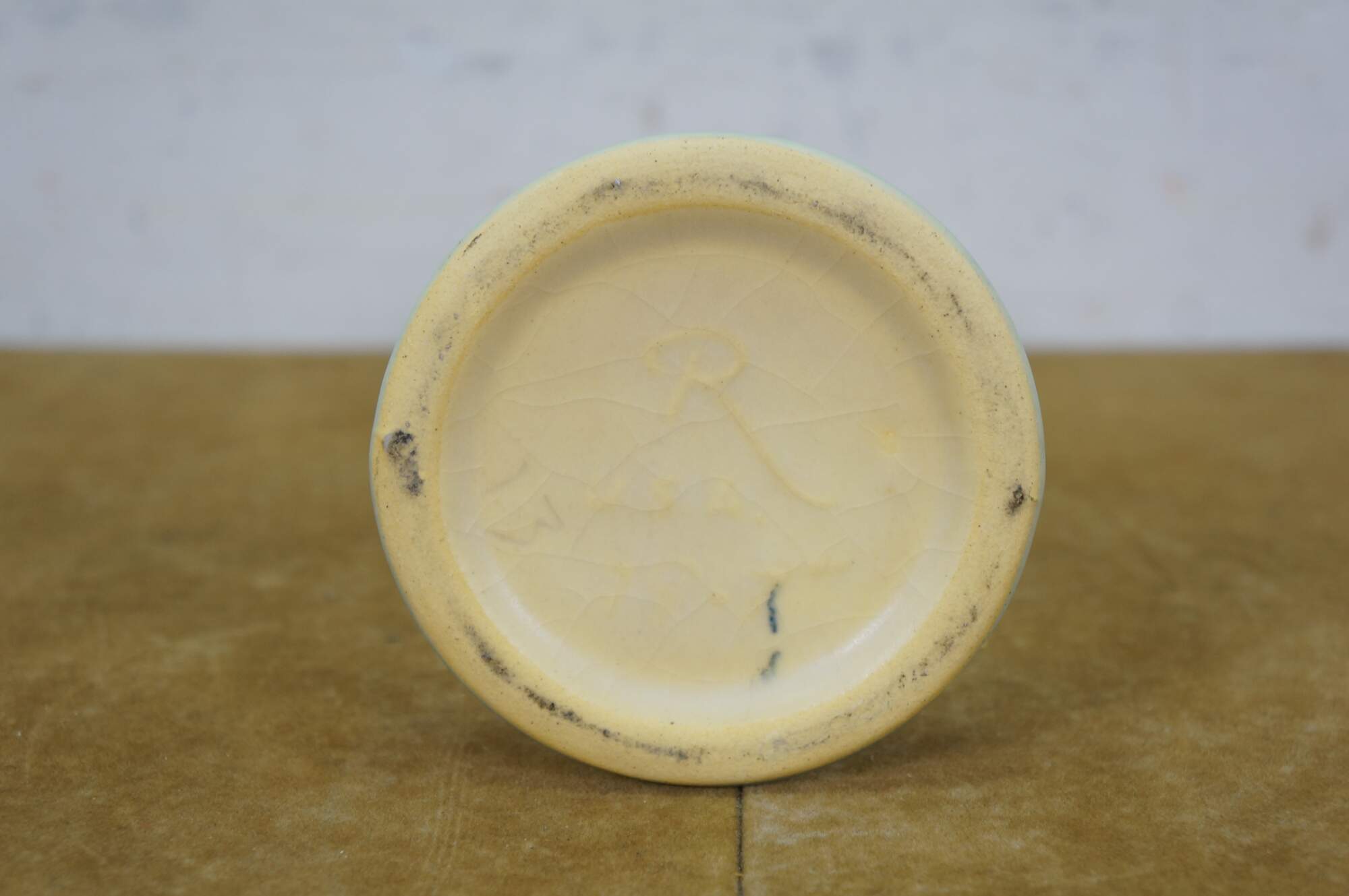 "Roseville Pottery was founded by J.F. Weaver in Roseville, Ohio, in 1890. It was incorporated in 1892 with George Young, a former Roseville salesman, as secretary and general manager. Under the direction of Young, the Roseville company had great success producing stoneware flower pots and other practical household items. In 1895, the company expanded by purchasing Midland Pottery, and by 1896 George Young had amassed a controlling interest in Roseville Pottery. In 1898, they purchased the Clark Stoneware Company in Zanesville, and moved the headquarters there. In 1900 Young hired Ross C. Purdy to create the company's first art pottery line, named Rozane (a contraction of "Roseville" and "Zanesville"). The Rozane line was designed to compete against Rookwood Pottery's Standard Glaze, Owens Pottery's Utopian, and Weller Pottery's Louwelsa art lines. By 1901, the company owned and operated four plants and employed 325 people. Frederick Hurten Rhead was the art director of Roseville between 1904 and 1909. He is associated with the Della Robbia line, and he designed or oversaw the Juvenile, Donatello, Mostique and Pauleo lines. Frederick's brother Harry Rhead stayed on at Weller after Frederick left. Frank Ferrell became the art director for Roseville in 1917 and was responsible for creating many popular Roseville designs. Among Roseville's most popular designs are Blackberry, Sunflower, and Pinecone. The Roseville Pottery Company produced its final designs in 1953, and the following year their facilities were bought by the Mosaic Tile Company. In 2017, a company named The Kings Fortune of Fishers, Indiana, was granted trademarks by the U.S. Patent Office for both Roseville and Roseville Pottery. Marina Bosetti, a ceramic artist in Raleigh, North Carolina, has been contracted to produce limited-edition tiles in the Art Nouveau style for the company." (Source: Wikipedia)