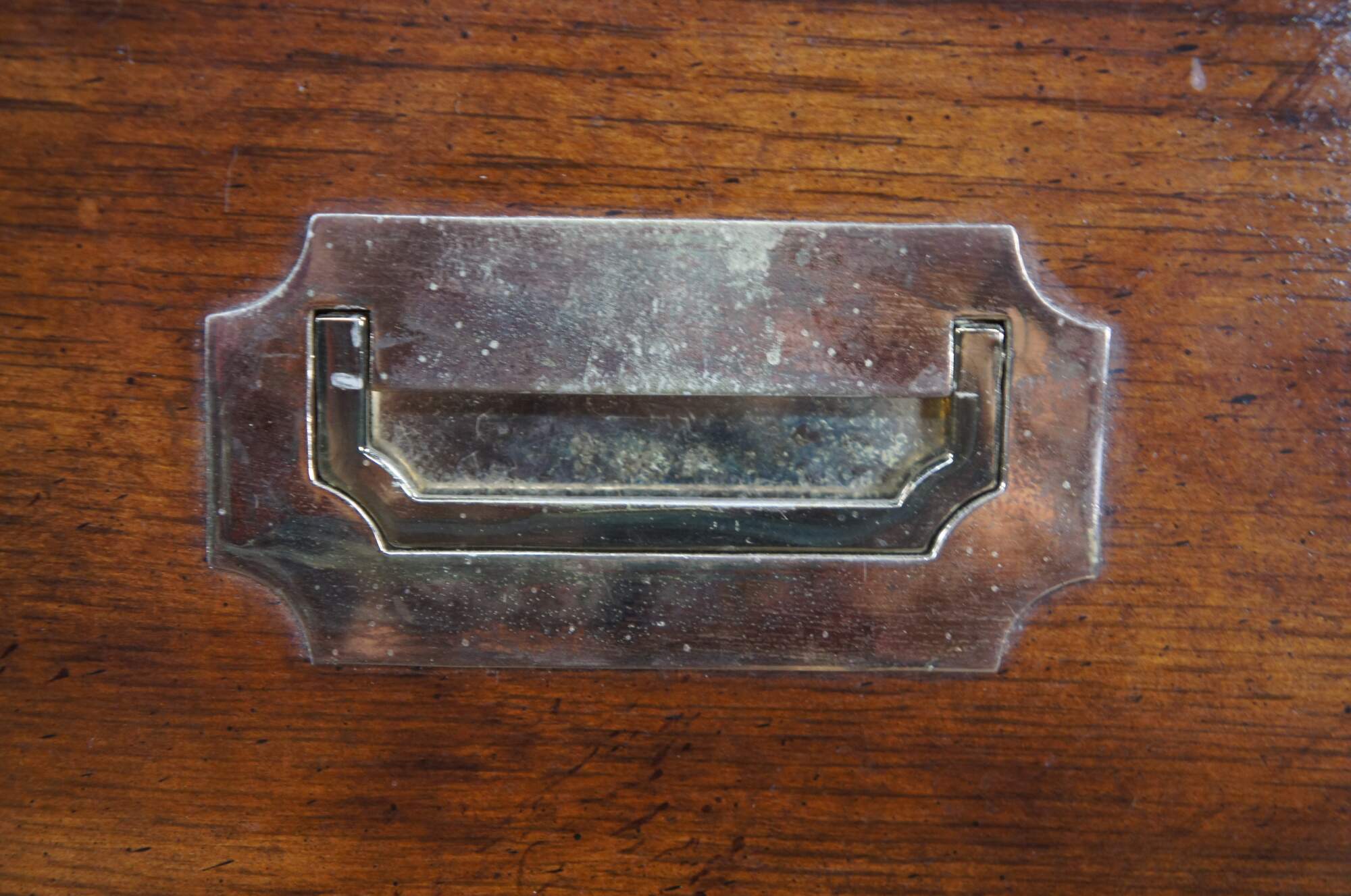 Fair; Structurally solid. Some veneer loss, edgewear and finish loss. Marking and distressing from use. Slight pitting to brass