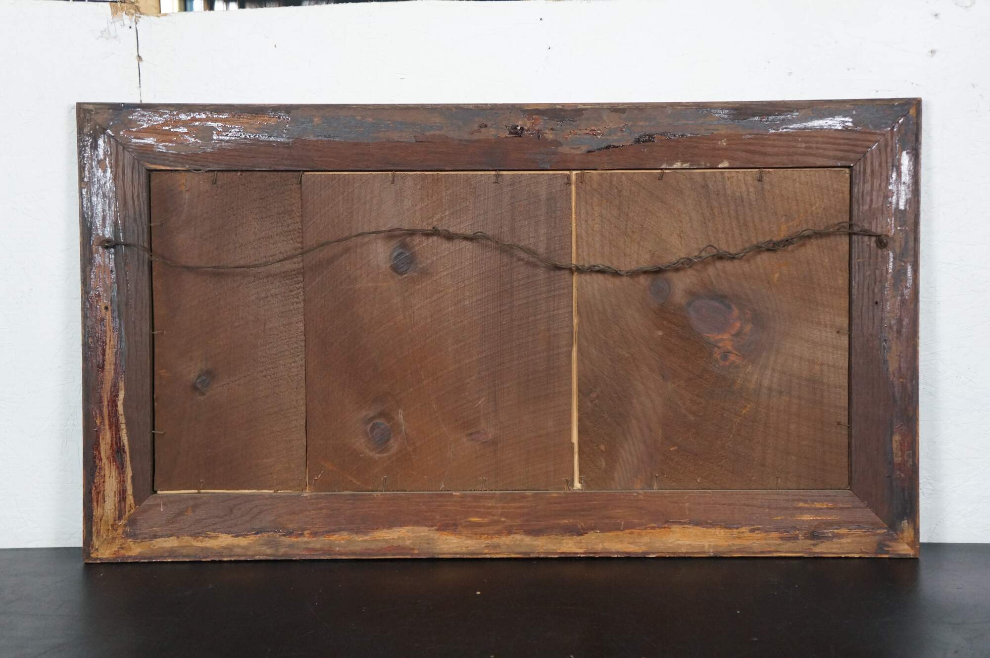 Wear and distressing, staining, discoloration, foxing, creasing, some marking to frame.