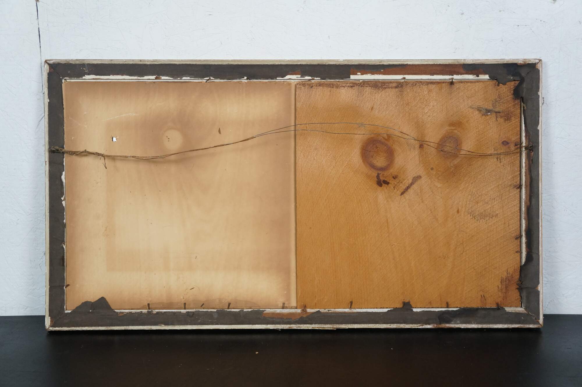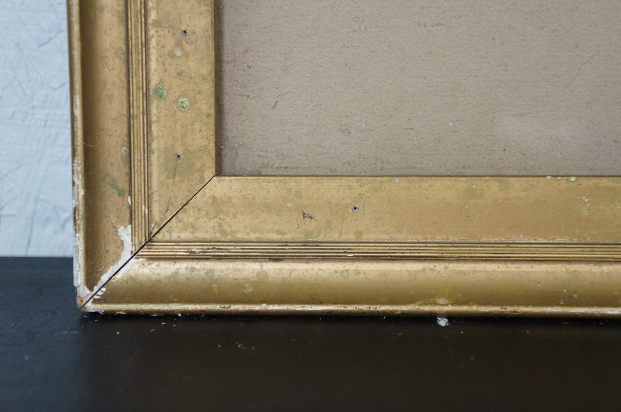 Wear and distressing; discoloration / water stains/ foxing; puncture in print at upper right and at edge lower left; loose in frame, paint loss to frame / marking.