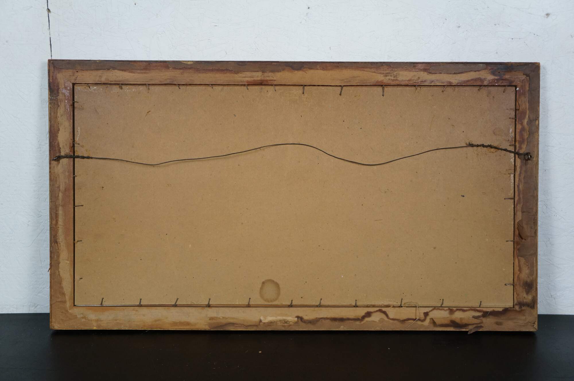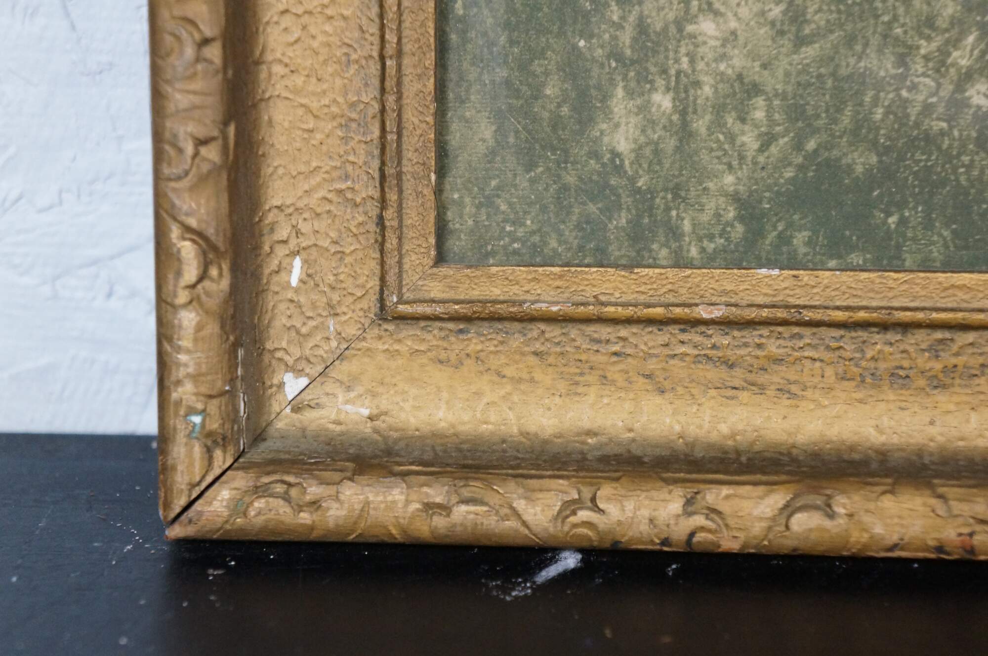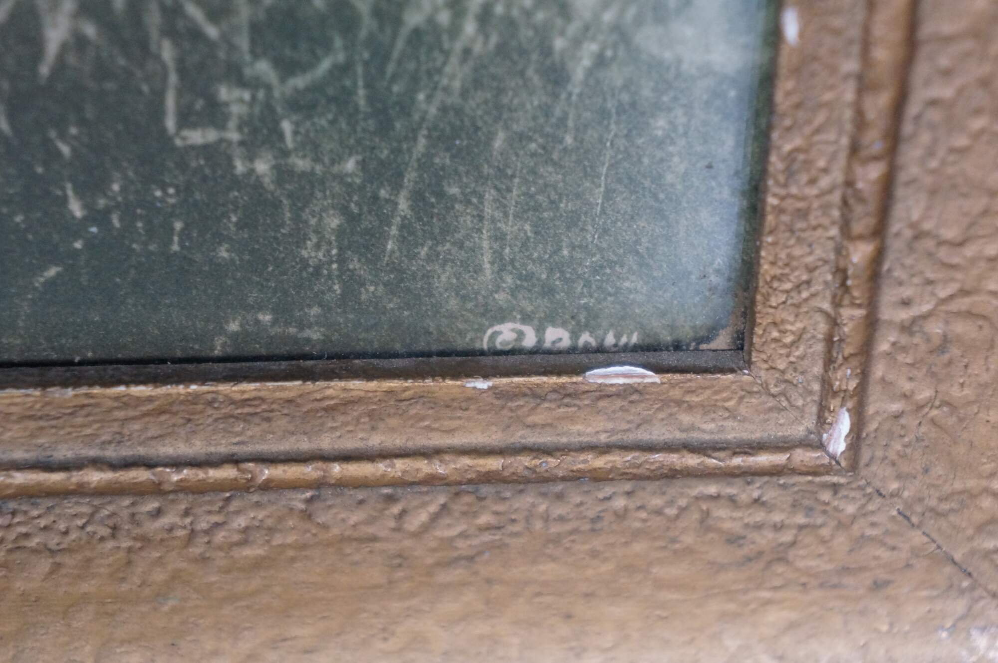 Wear and distressing, paint loss to frame, foxing, discoloration, water damage