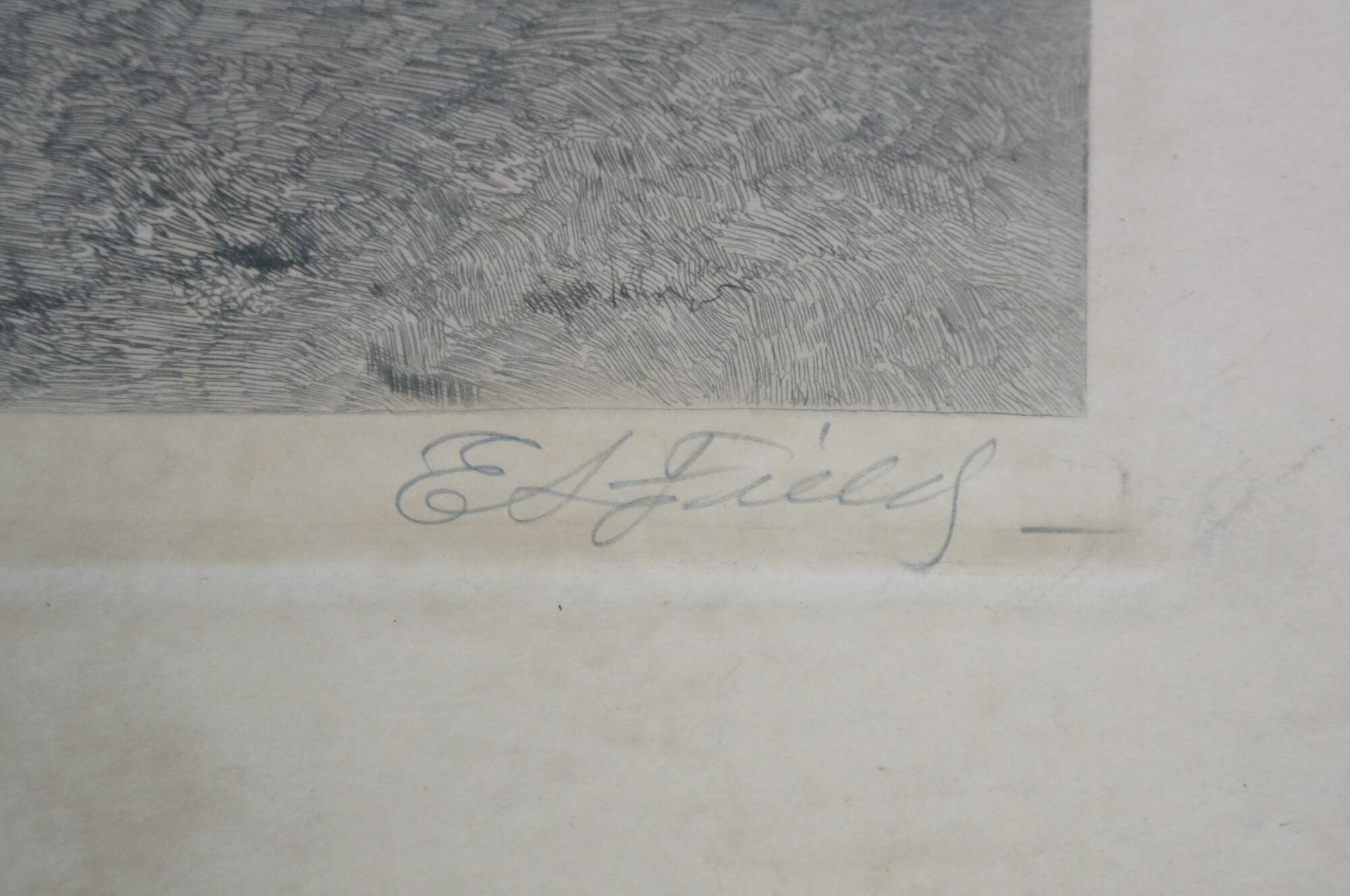 "Edward Loyal Fields (January 4, 1856 – March 22, 1914) (aka E. L. Field ; Edward L. Field ; E. Loyal Field ; Edward Field) was an American artist renowned for his rural landscape drawings and etchings. He utilized various mediums, including pen and ink, oil, watercolor, and graphite, and his primary techniques encompassed drawing, painting, and etching. Fields is especially noted for his idyllic depictions of towns, farmhouses, and landscapes. Edward Loyal Fields was born on January 4, 1856, in Galesburg, Knox, Illinois, to Loyal Case Field, a machinist, inventor, and manufacturer of machinery, and Clara Armeda (Davison) Field, a housewife. He grew up with three siblings—Frank Smith Field, Kate Elnora Field, and Carrie Luella Field—though the latter two sadly died in infancy. Fields spent the first part of his life in the Midwest, residing in Galesburg from 1856 to 1874, and briefly in 1880. In 1874, he relocated to Ithaca, New York, where he began studying at Cornell University. His formal art education started here and continued until 1878. Following this, Fields moved to Paris, France, to study at the esteemed Academie Julian under Charles Auguste Carolus Emile Duran, from 1878 to 1879. Duran’s influence was significant in shaping Fields’s artistic style and approach. Fields began to identify as a professional artist by 1880. His work, characterized by detailed rural landscape drawings and etchings, was recognized across the Midwest, East Coast, and Europe. Fields moved between various locations throughout his career. He resided in Paris from 1879 to 1882, in New York from 1885 to 1900, and again from 1905 to 1914, as well as in Delaware, New York from 1900 to 1905. Brief periods were also spent in Boston, Halifax, London, Nutley, and Delaware. Throughout his career, Fields exhibited his work with prestigious art establishments, including the Salmagundi in New York, National Academy of Design in New York, Pennsylvania Academy of the Fine Arts in Philadelphia, Carnegie in Pittsburgh, and Chicago Art Institute. Fields was a resident artist member at Salmagundi from 1899 until his death in 1914, where his work was highly praised, winning the Inness prize in 1904 and the Shaw prize in 1905. Fields married Flora (Stark) Field on November 9, 1891, in Bloomsbury, England. They had one daughter, Catherine Field, who was born in Nutley, New Jersey, in 1892. Fields died on March 22, 1914, in New York, New York, from pneumonia. He was 58 years old. His legacy continues to influence and inspire artists and art enthusiasts worldwide, serving as a testament to his exceptional talent and passion for rural landscape artistry." (Source: Salmagundi)