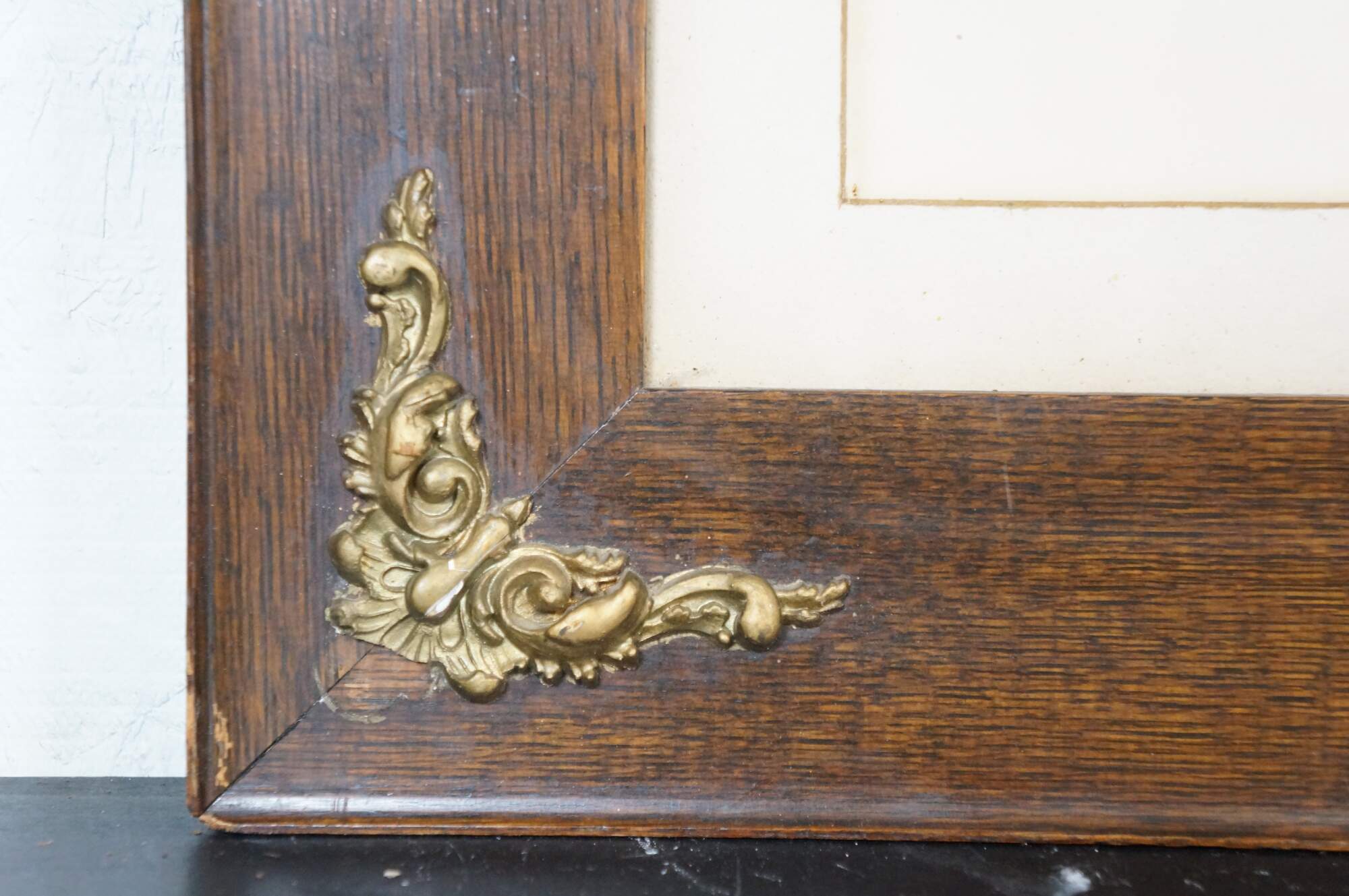 Wear and distressing, marking to frame, some loss to applique gilding, discoloration, foxing