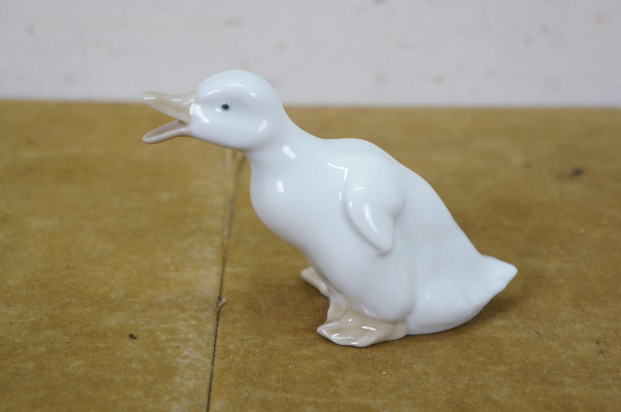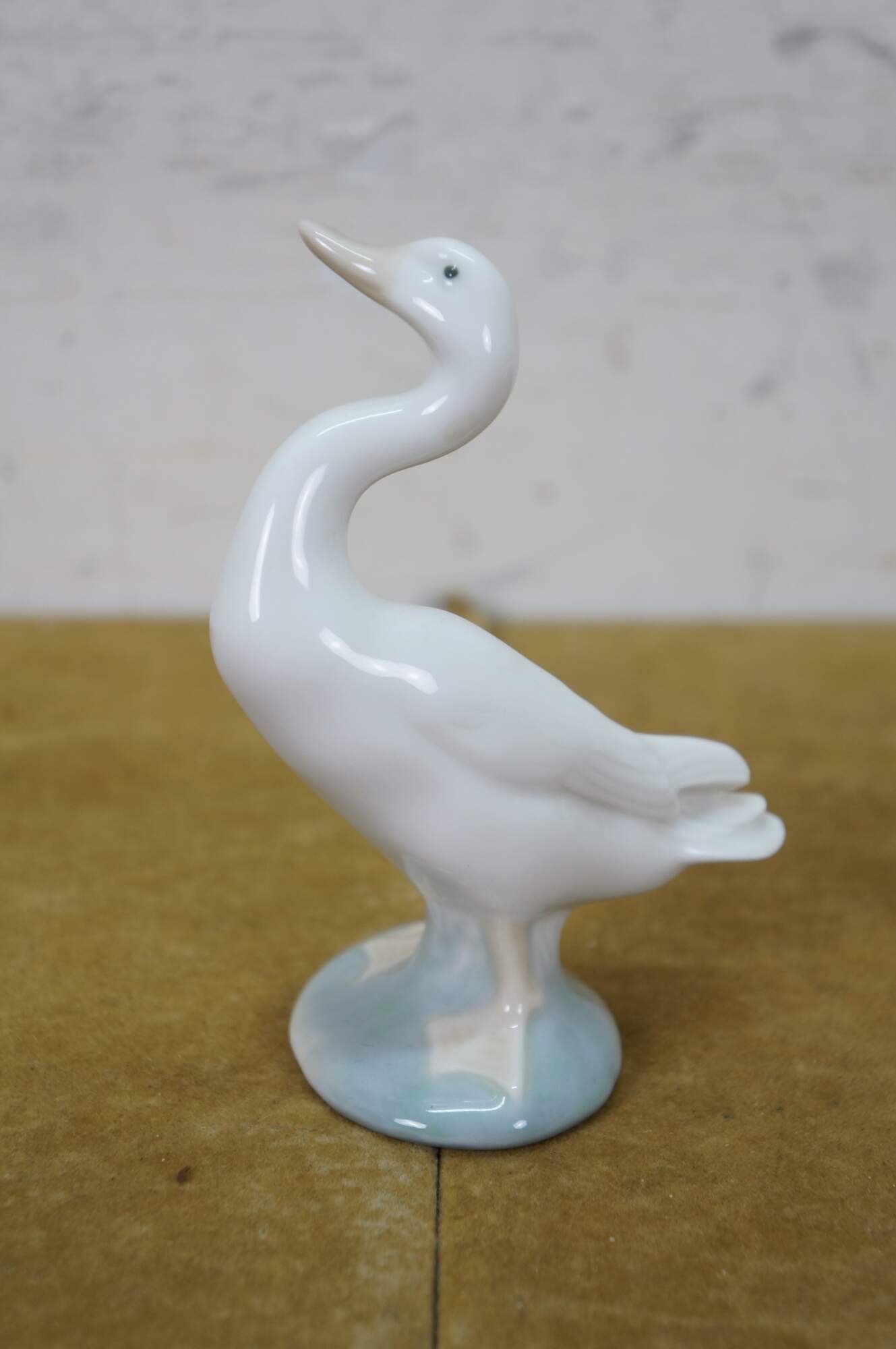 Set of four 1970s-1980s Lladro Spain porcelain figurines featuring two white geese on green bases and two Nao collection white ducklings.