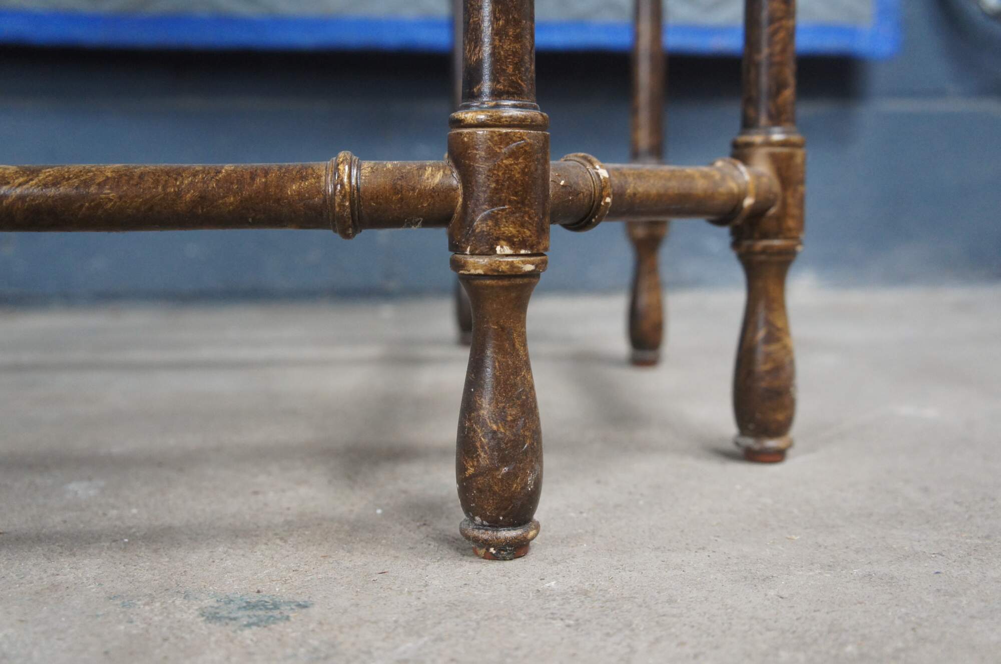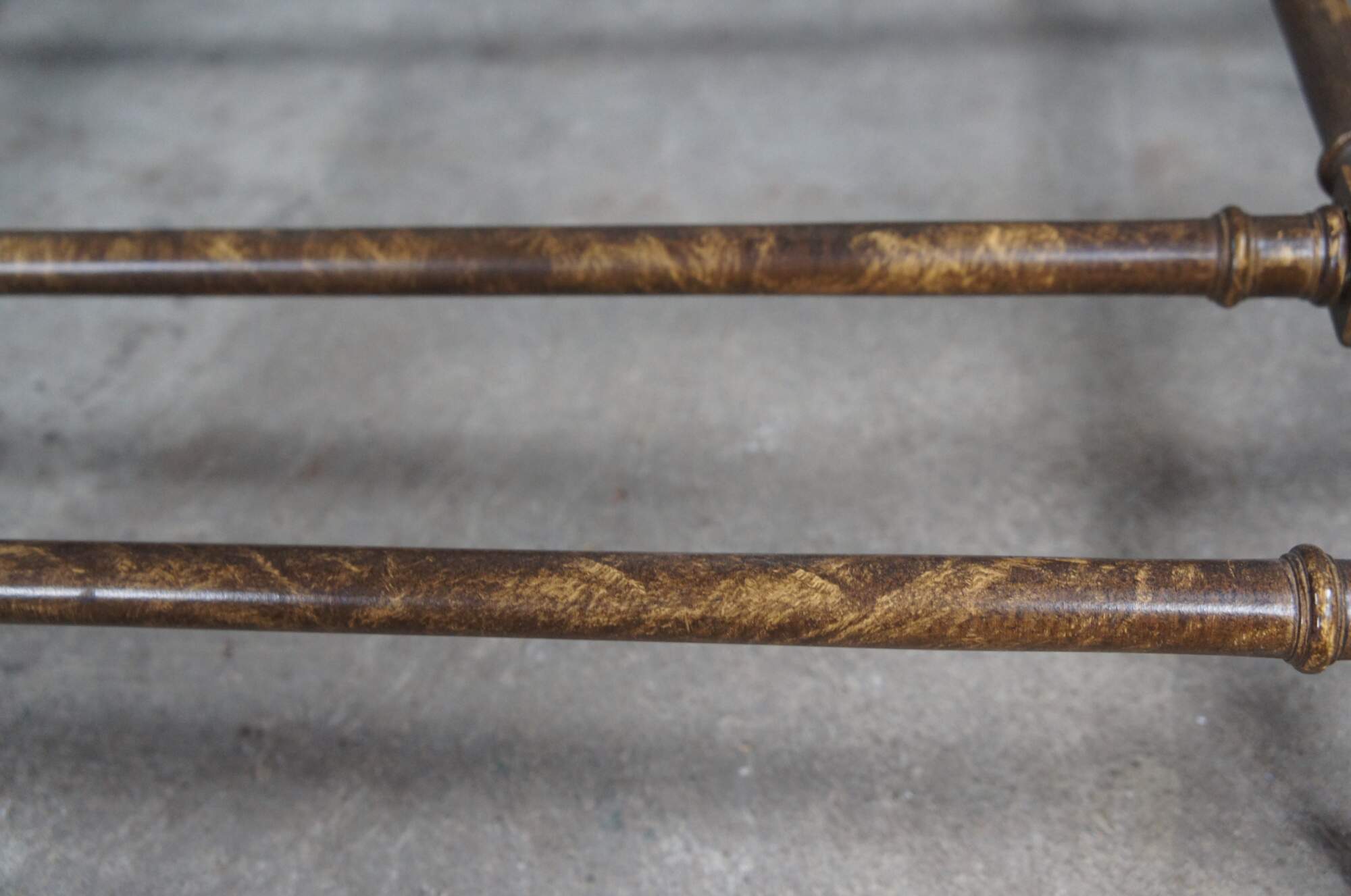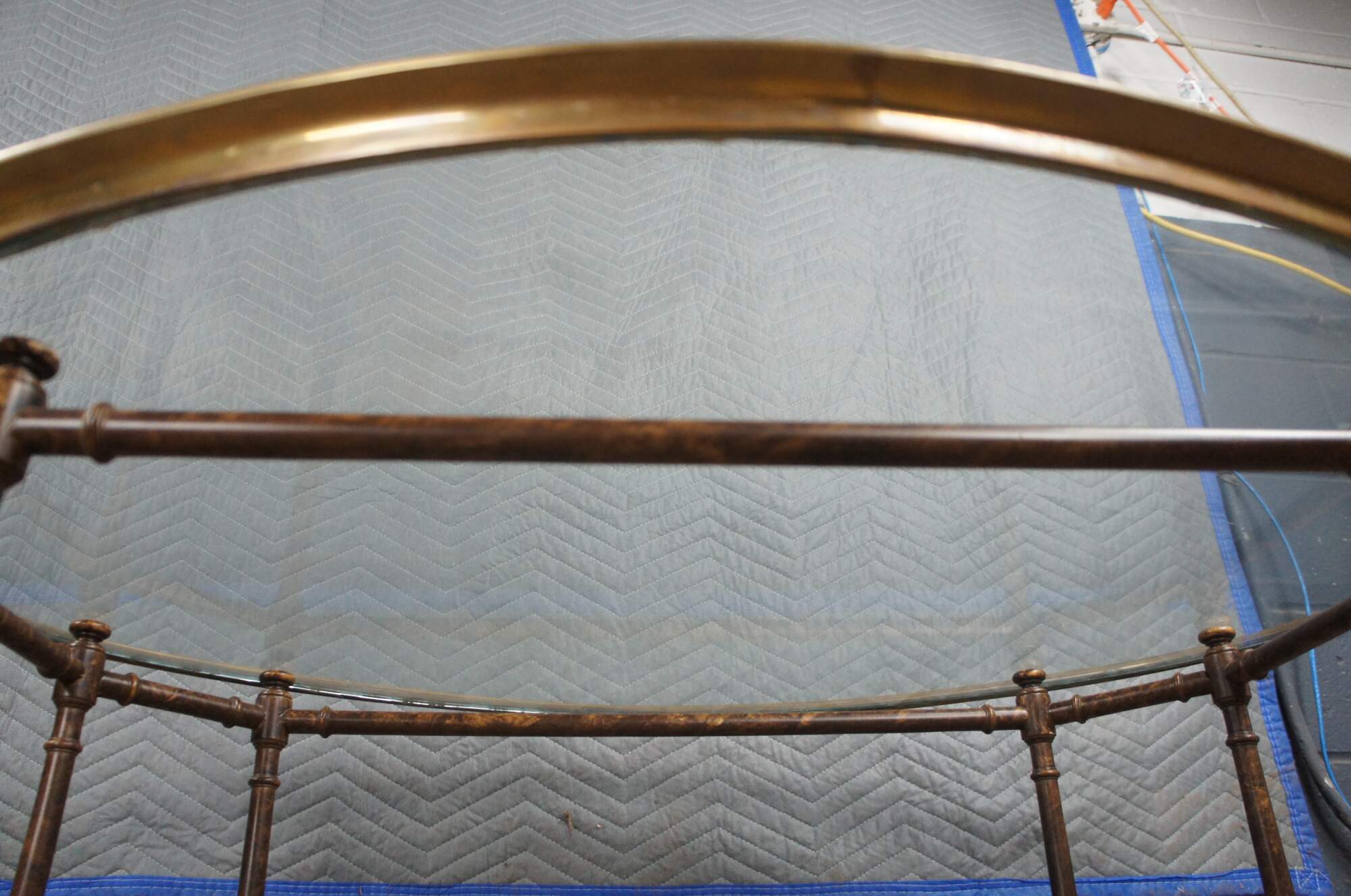 Vintage Baker Furniture faux bamboo tortoise shell finish coffee or cocktail table featuring an oval top with brass gallery edge. Unmarked.