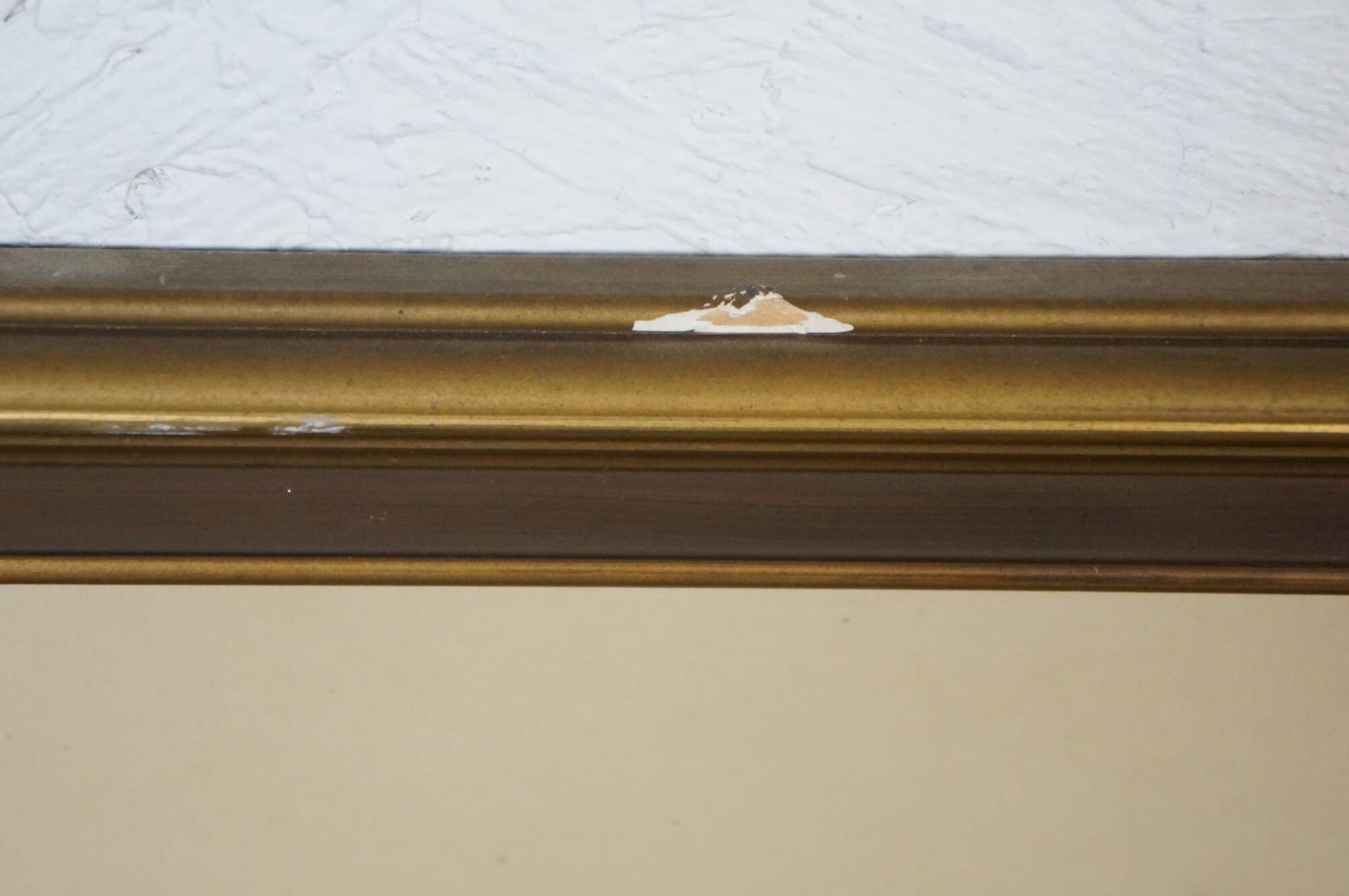 Wear and distressing, fading, discoloration, marking, a couple of chips to the frame.