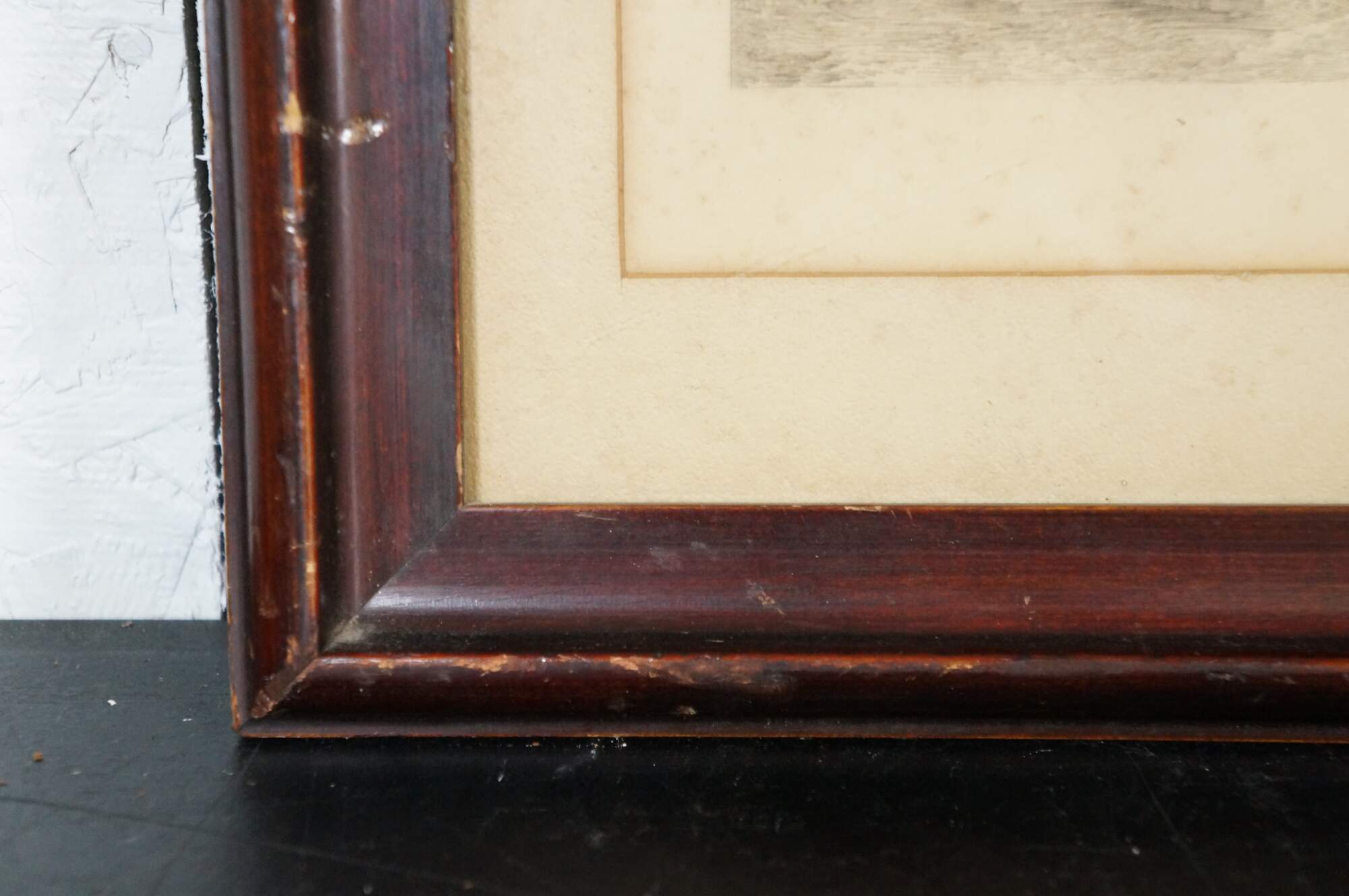 Wear and distressing, foxing, discoloration, damages to frame.