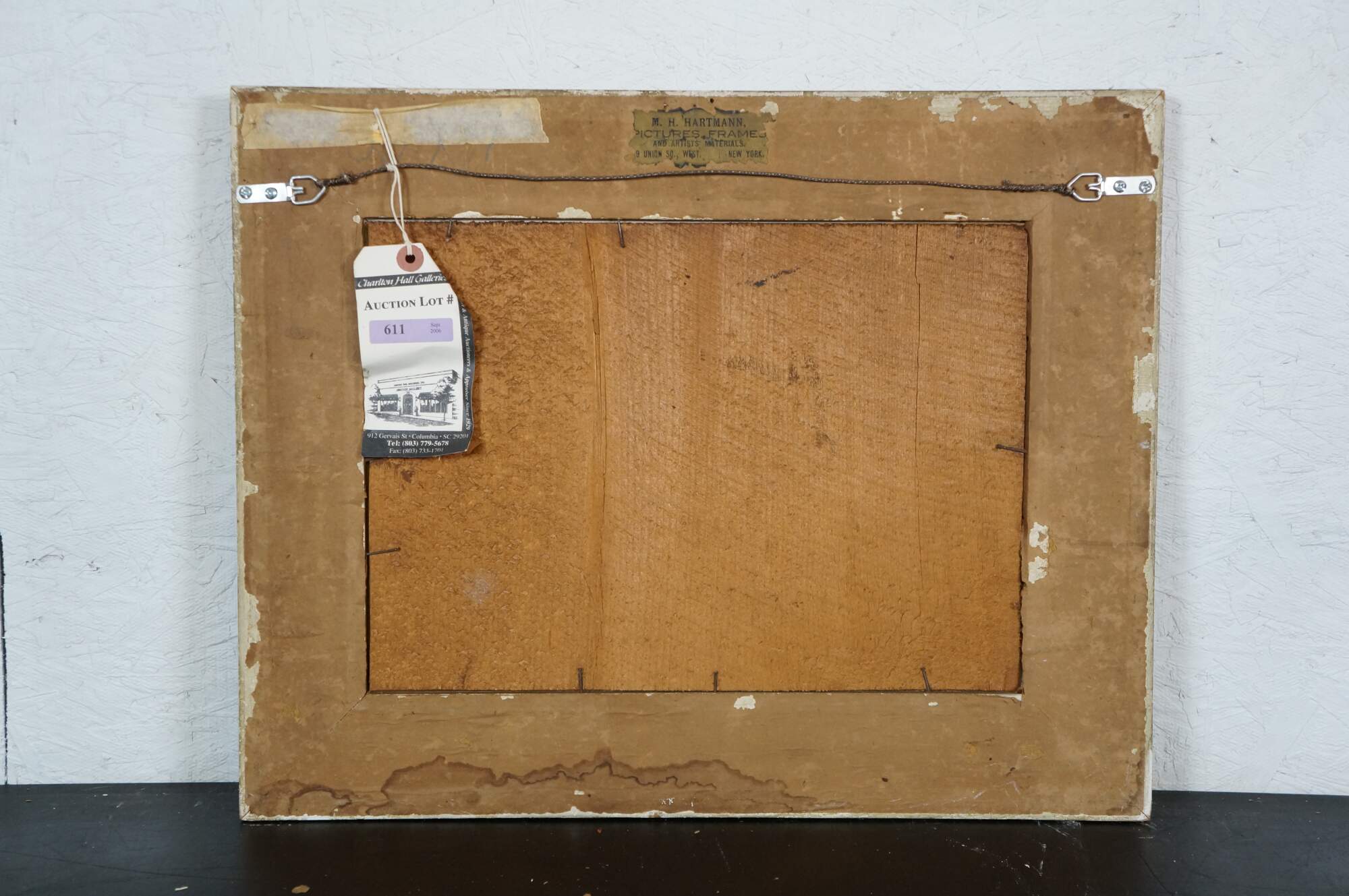 Wear and distressing, some chips to frame; no glass; tear to edge of art, scuff on right.